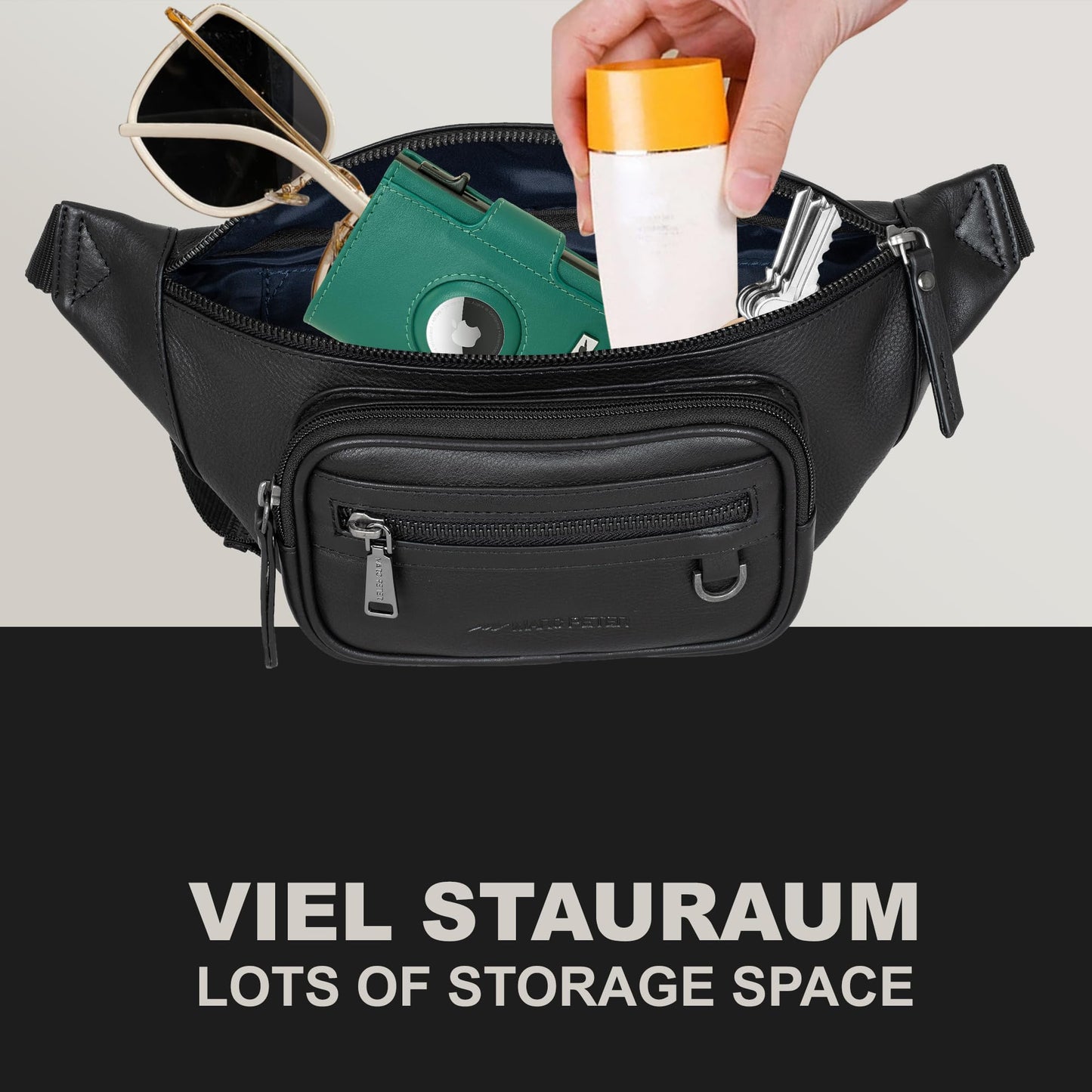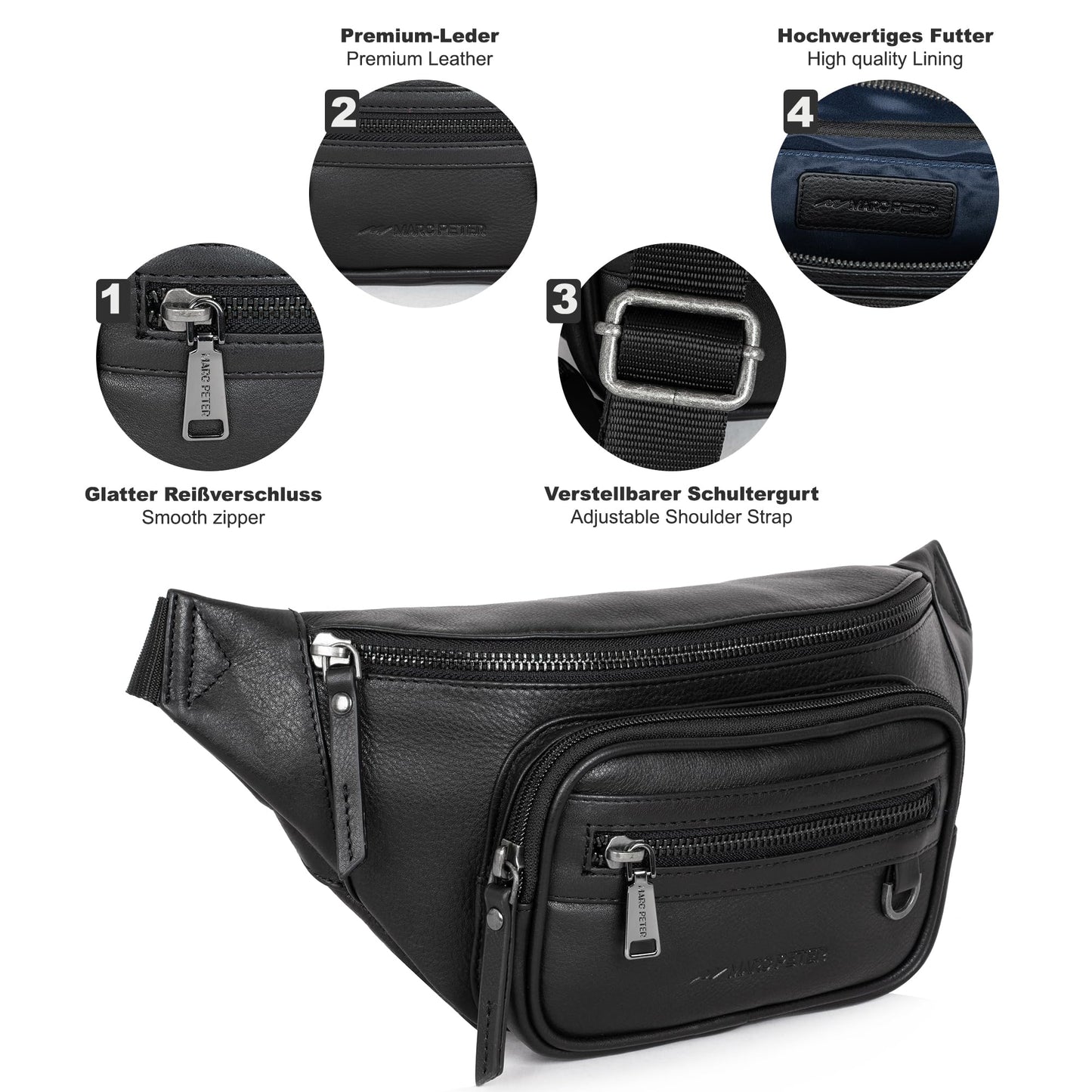 Sleek, stylish, and built to last – the Marc Peter® Varadero leather waist bag delivers a refined look with versatile wearability. Whether worn as a belt bag, crossbody, or shoulder sling, its premium Nappa leather construction and minimalist design make it the ideal choice for festivals, city strolls, or travel. With a comfortable adjustable strap and enough space for your daily must-haves, this crossbag is where fashion meets function.
