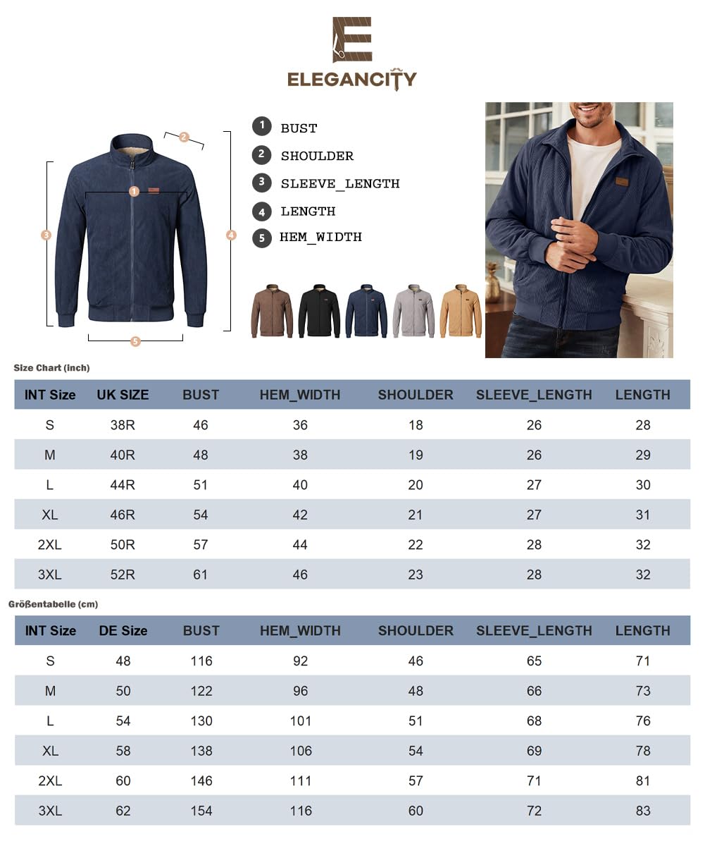 Stay warm in style with the Elegancity Men’s Corduroy Jacket – a cozy, fleece-lined outerwear piece perfect for chilly autumn and winter days. Featuring a soft corduroy exterior and plush teddy fleece lining, this jacket combines comfort and durability for everyday wear. With a sophisticated stand collar, sleek zip closure, and functional pockets (including a hidden inside pocket), it’s a smart choice for casual outings, parties, dates, or just keeping warm in the city.