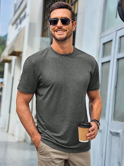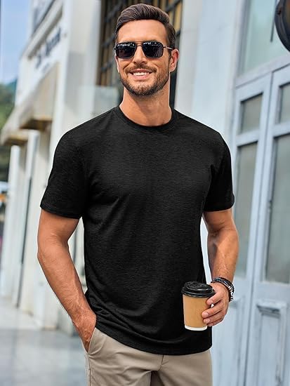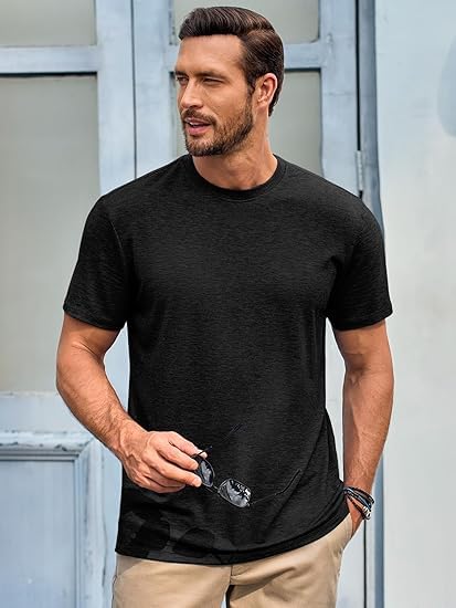 Stay cool, confident, and comfortable all day with this versatile men’s short-sleeve crew neck t-shirt. Designed in a soft, breathable stretch fabric with a modern fit, it’s perfect for everything from casual weekends to business-casual looks or workouts. A true wardrobe essential that combines performance with classic style.