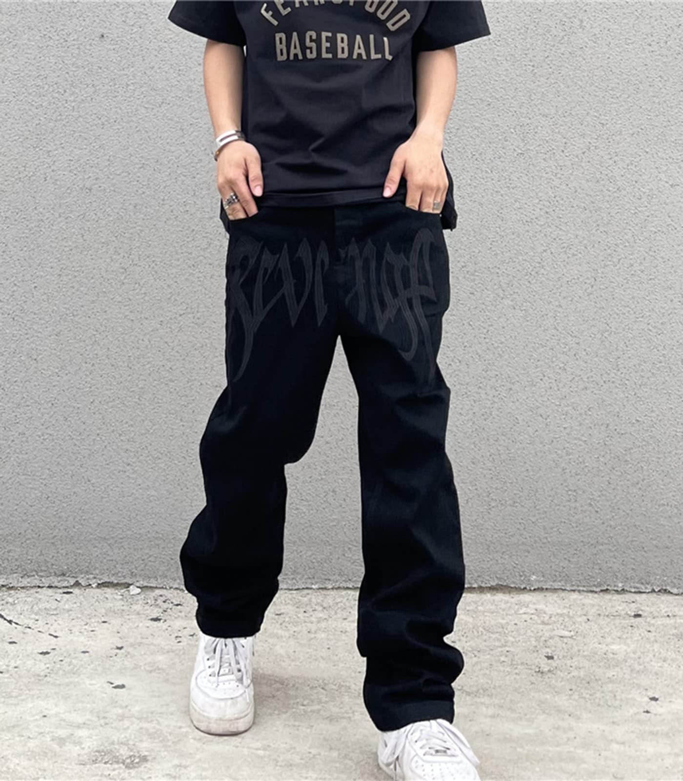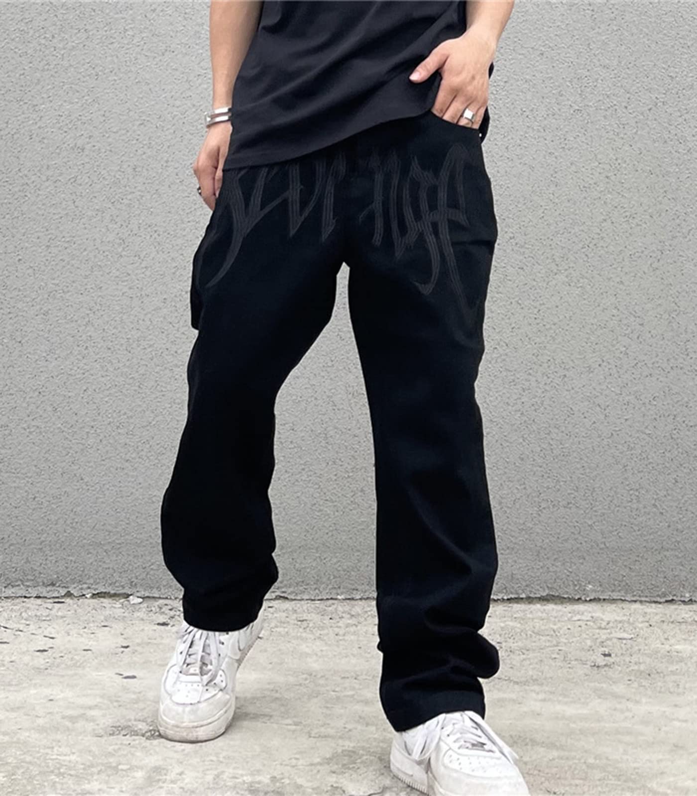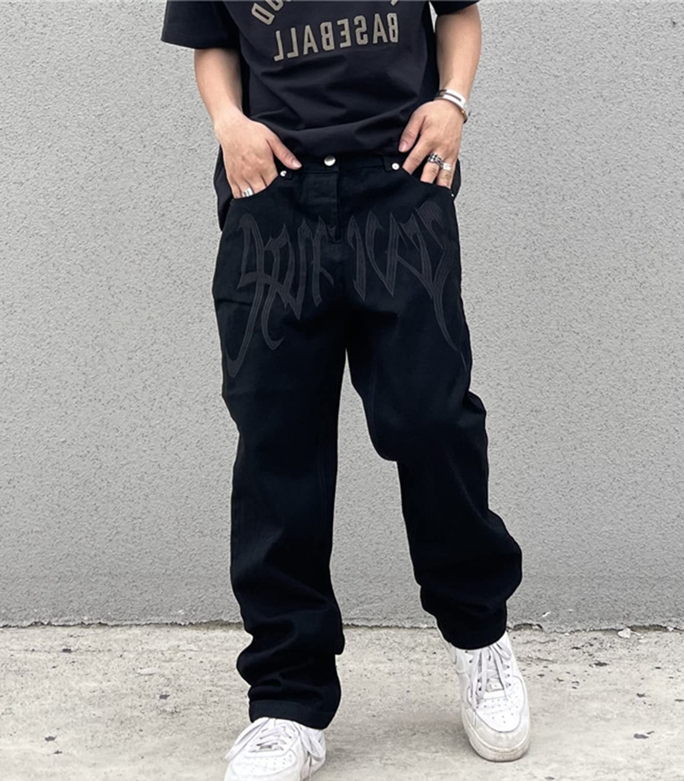 Men’s Y2K Baggy Jeans – Embroidered High-Waisted Skate Denim Pants