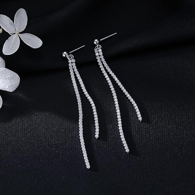 Add a touch of elegance with Meteorstarry 925 Sterling Silver Dangle Chain Earrings. Featuring dual-length shimmering chains and crafted entirely from hypoallergenic sterling silver, these earrings are perfect for any occasion.