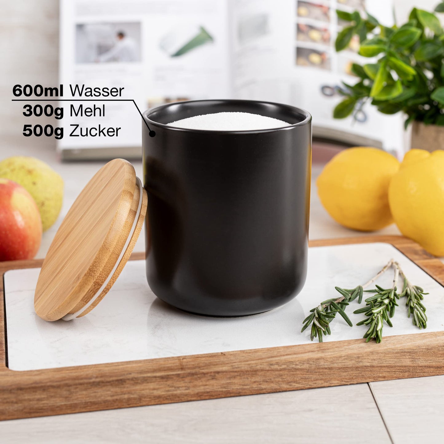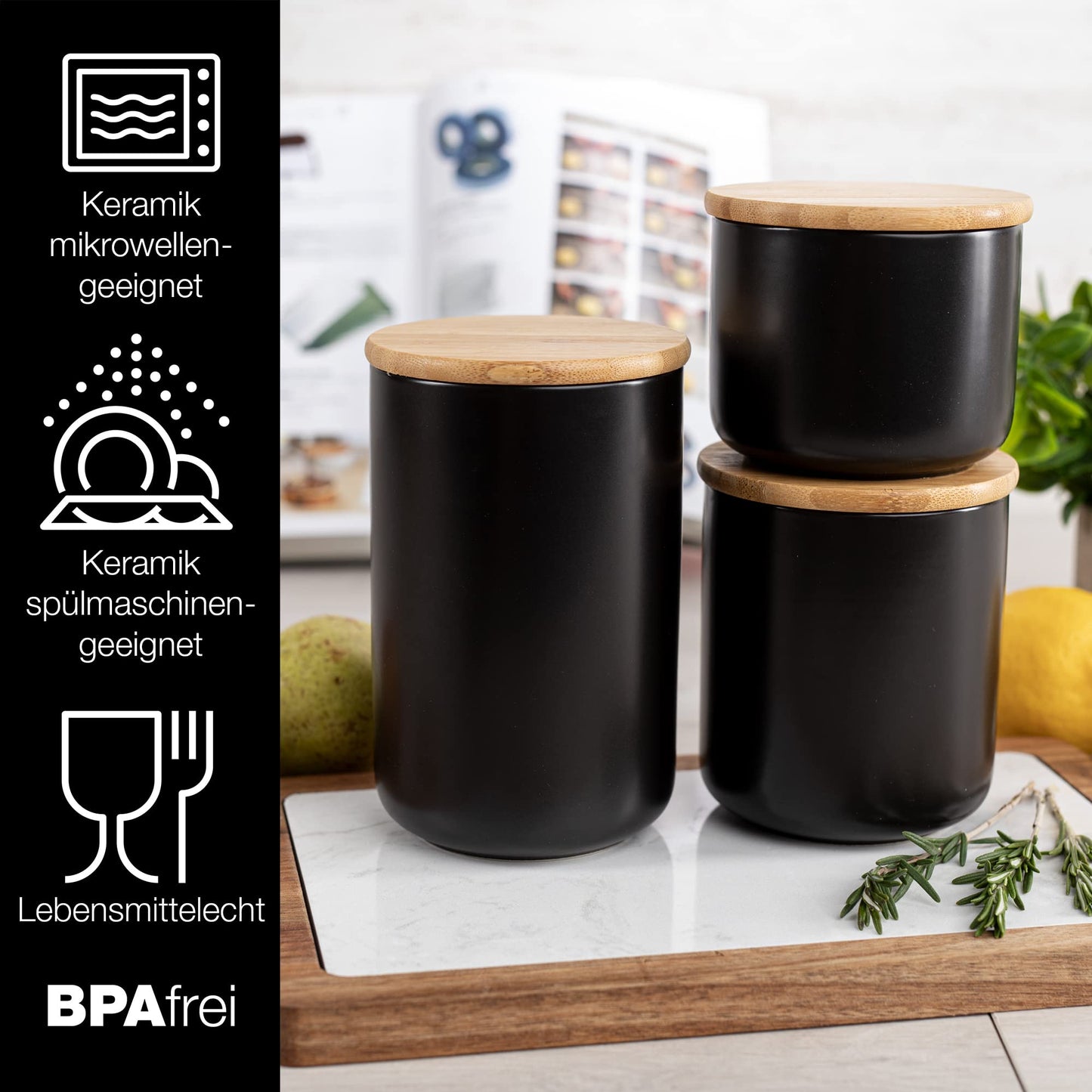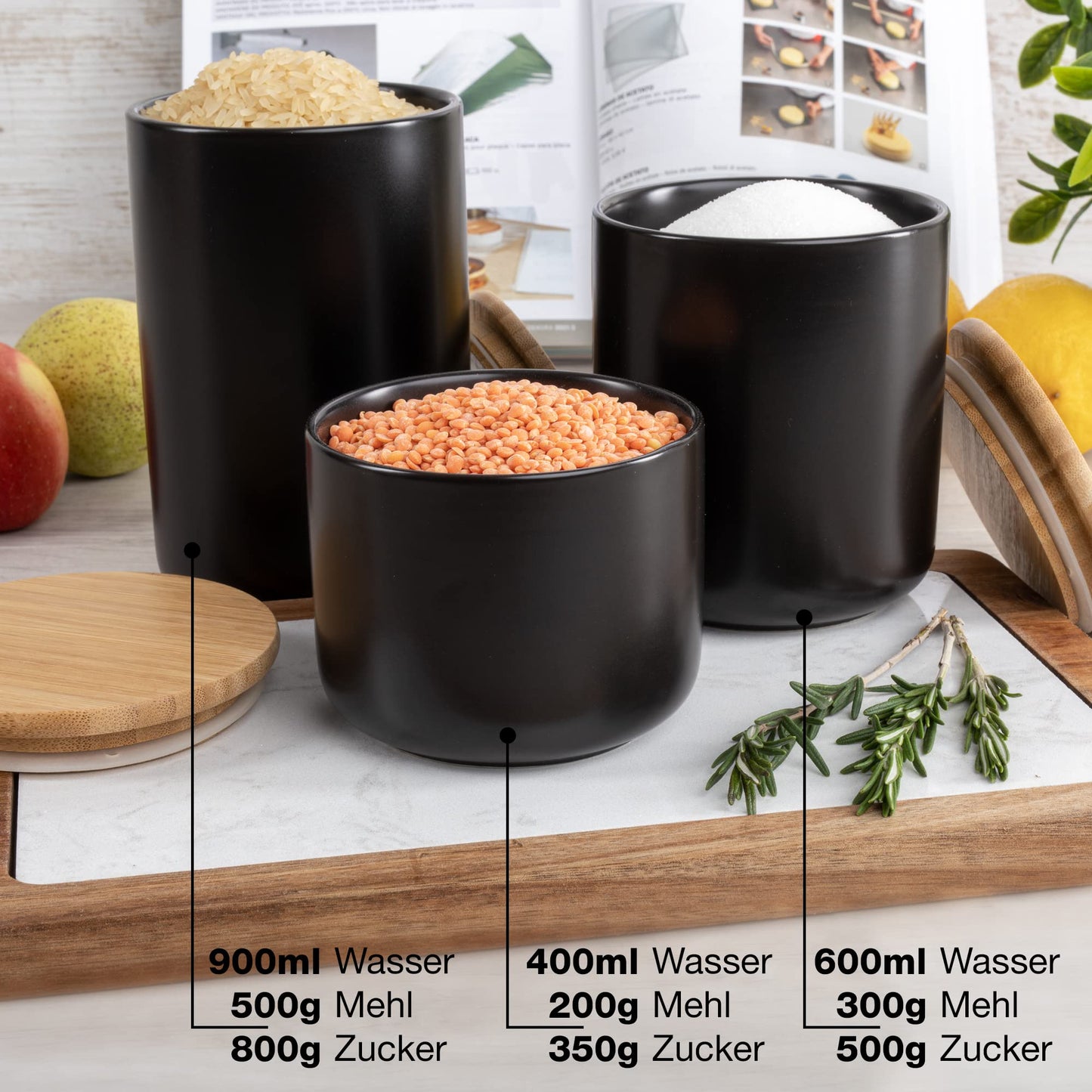 Moritz & Moritz 3x Vorratsdosen Schwarz 400ml, 600ml & 900 ml - Beschreibbar – 3x Keksdosen Keramik mit Deckel aus Bambus – Keramik Aufbewahrungsdose