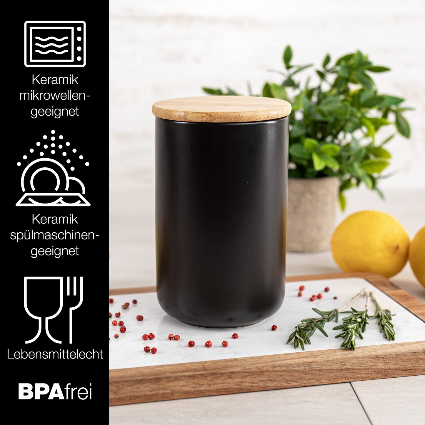- MULTITALENT – Die Aufbewahrungsdosen Keramik sind zum Aufbewahren von Gewürzen, Tee, Kaffee, Zucker und vielem mehr. Im stylishen Farbmix Schwarz und Bambus