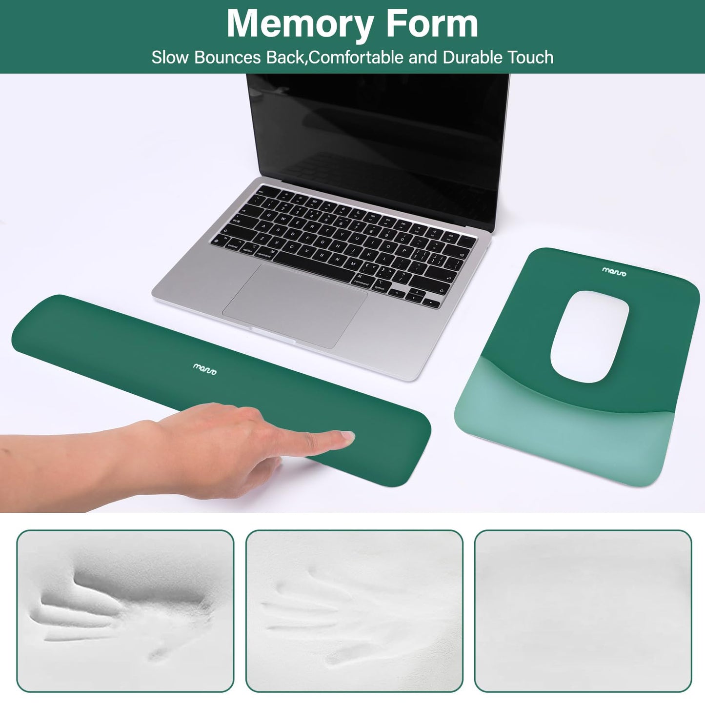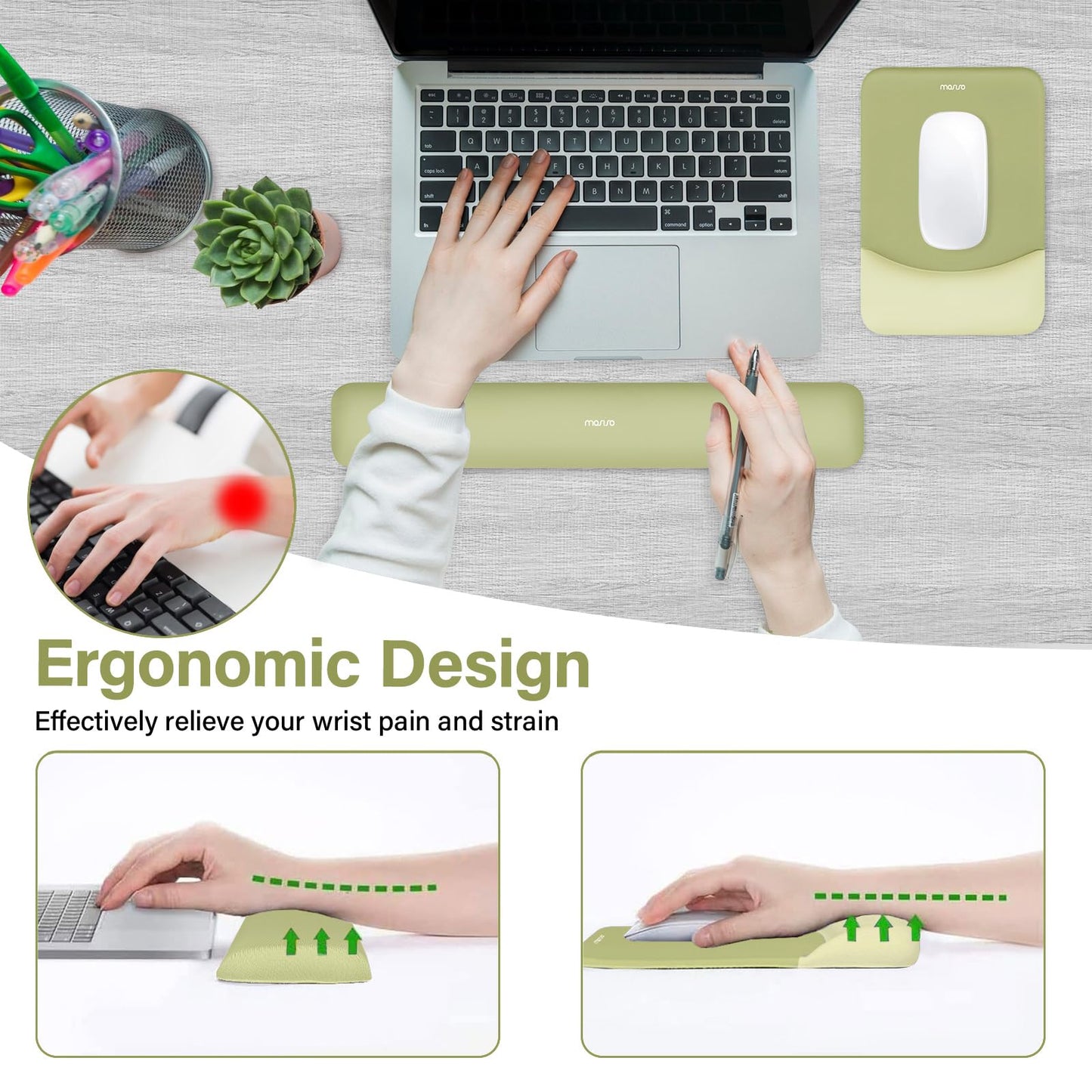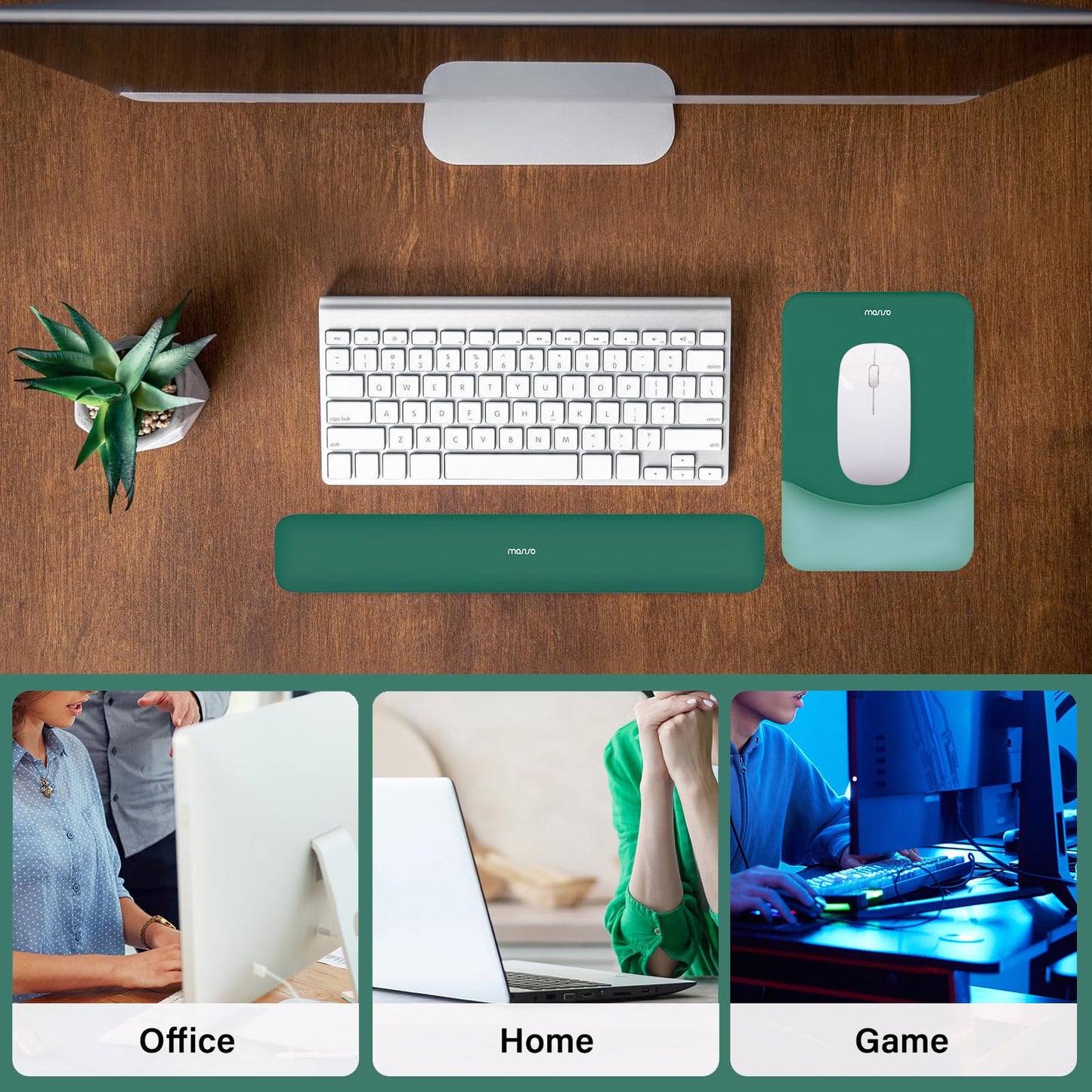 MOSISO Handgelenkstütze für Mauspad&Tastatur Set, Rechteckig Ergonomisch Mauspad Rutschfest Basis Home/Büro Schmerzlinderung&Typing Kissen mit Neopren Cloth&Erhöht Gebogen Memory Schaum,Grün