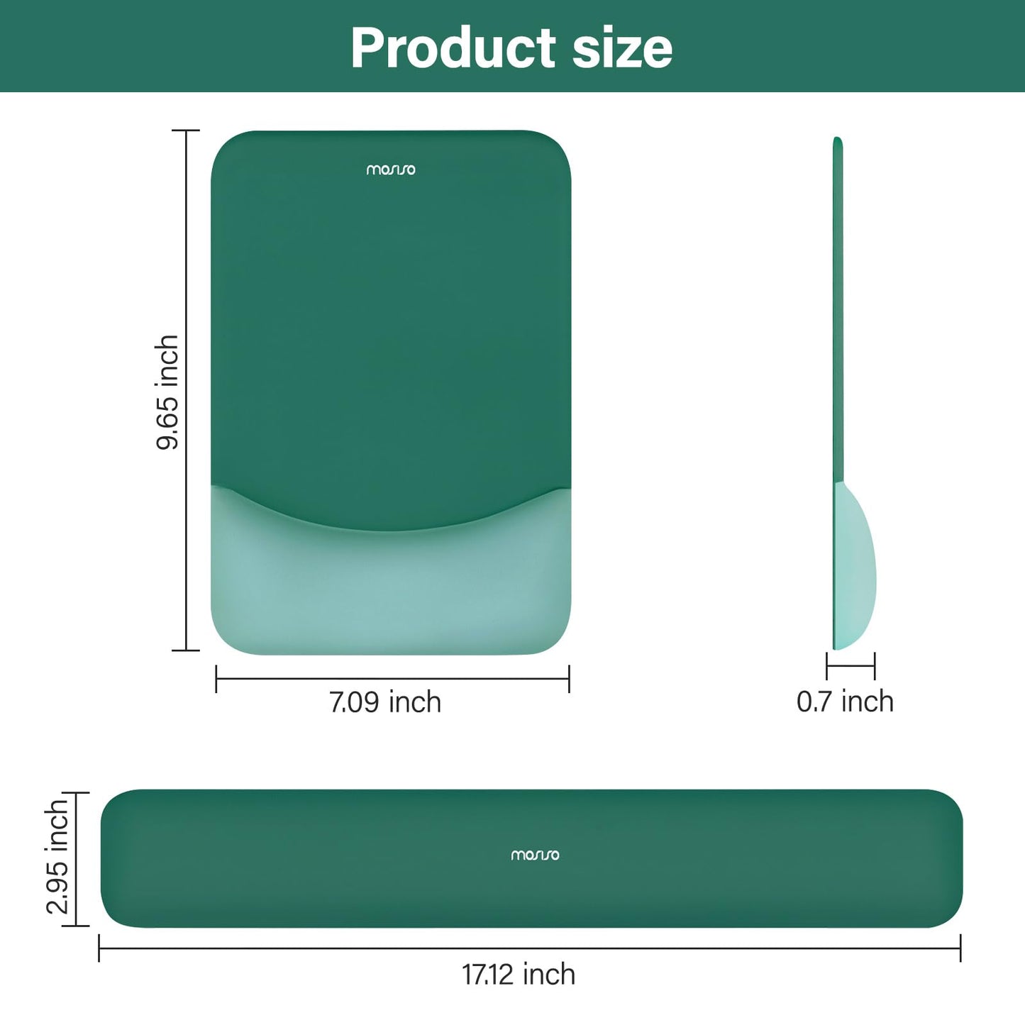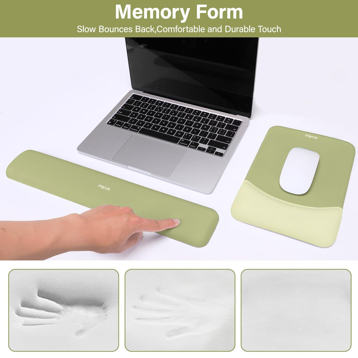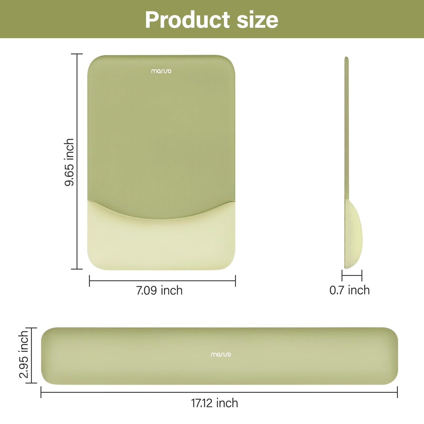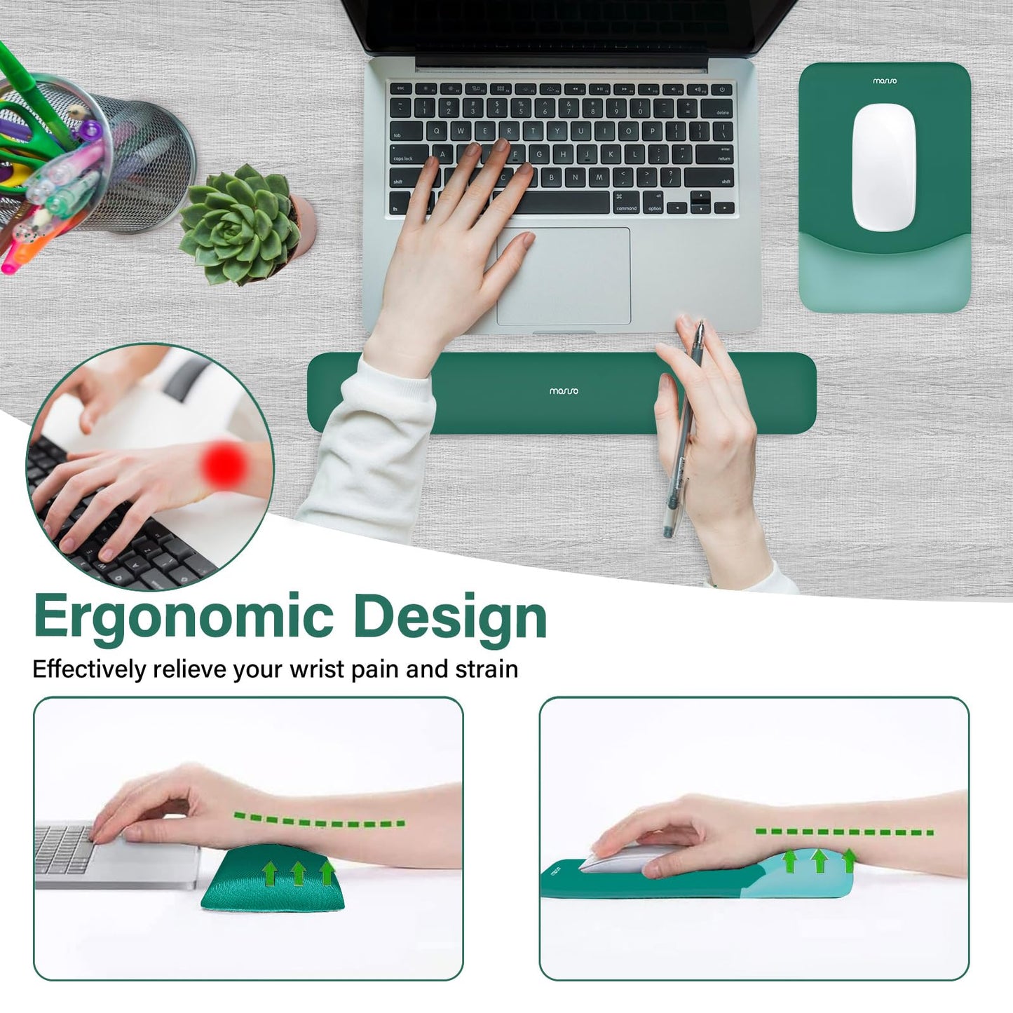 MOSISO Handgelenkstütze für Mauspad&Tastatur Set, Rechteckig Ergonomisch Mauspad Rutschfest Basis Home/Büro Schmerzlinderung&Typing Kissen mit Neopren Cloth&Erhöht Gebogen Memory Schaum,Grün