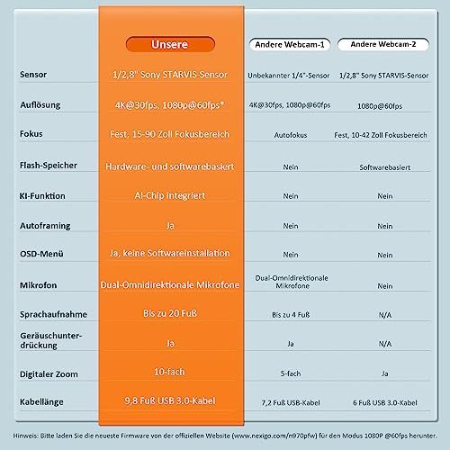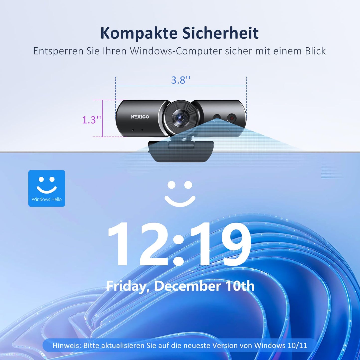 - 【Full HD 1080P Webcam】Die NexiGo N60 Webcam wird von einem 1080p FHD CMOS mit zwei MP angetrieben und daher werden scharfe und klare Videos mit Auflösungen von bis zu 1920 x 1080 mit 30 fps aufgenommen. Die 3,6-mm-Glaslinse liefert ein gestochen scharfes Bild bei festen Entfernungen und ist zwischen 19,6 Zoll und 13 Fuß optimiert, wodurch sie sich ideal für fast jeden Einsatz in Innenräumen eignet.