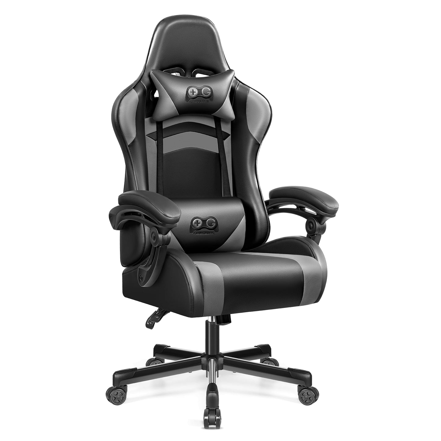 OneGame Ergonomischer Gaming Stuhl, hoher Rücken Computer Gamer Stuhl, höhenverstellbarer Game Stuhl, Racing Style Gaming Bürostuhl mit Kopfstütze und Lendenwirbelstütze, Schwarzweiß