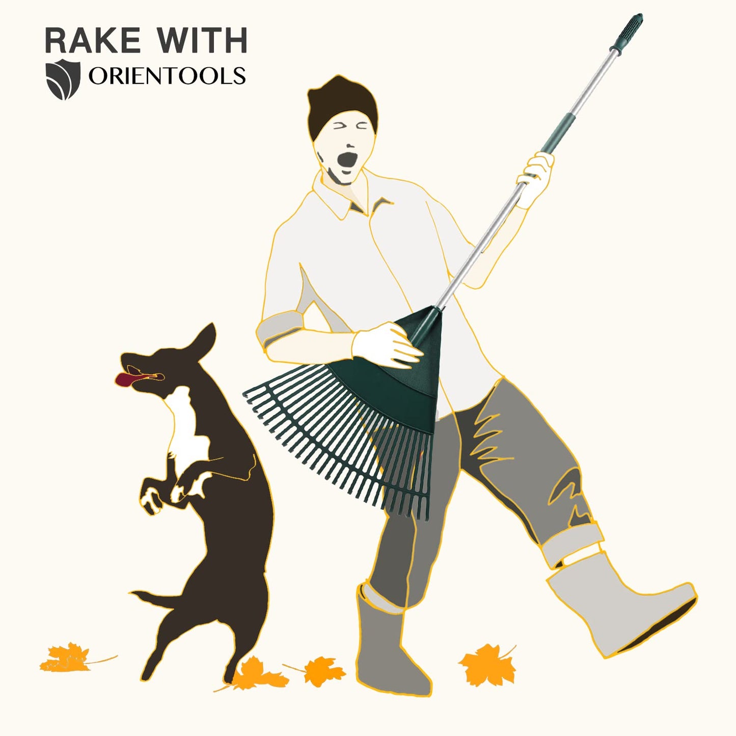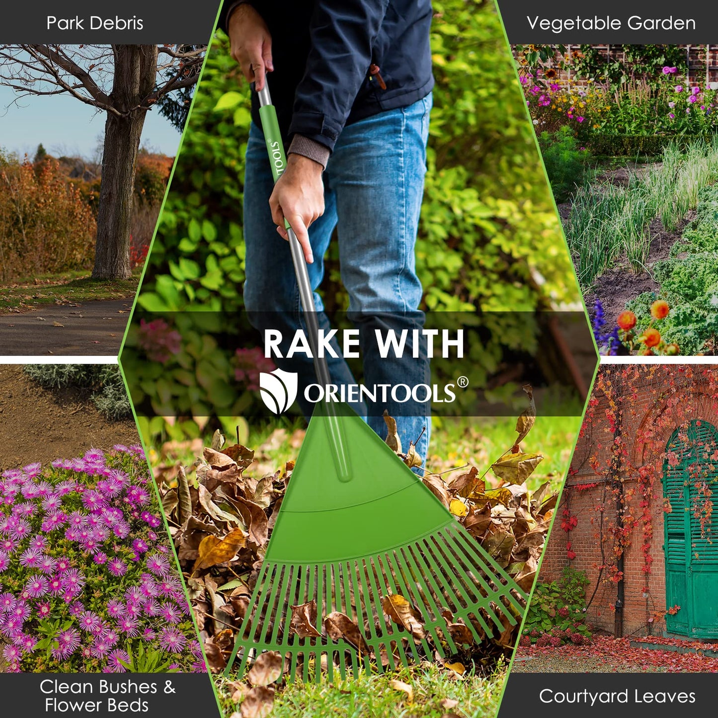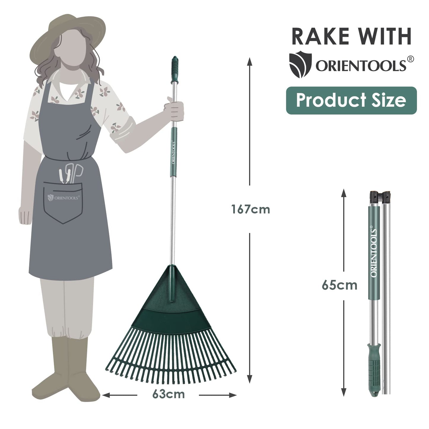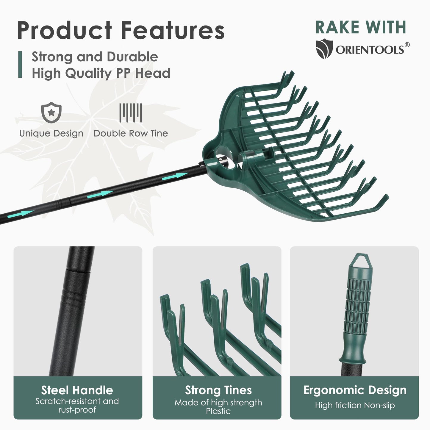 ORIENTOOLS Garten Laubrechen, Garten Rechen für Rasen Laub mit verstellbarem Griff 107 bis 156 cm Rechen, 22 Starke Zinken Kunststoff Kopf Strauch Rechen, Landschaftsbesen für Rasen und Blätter