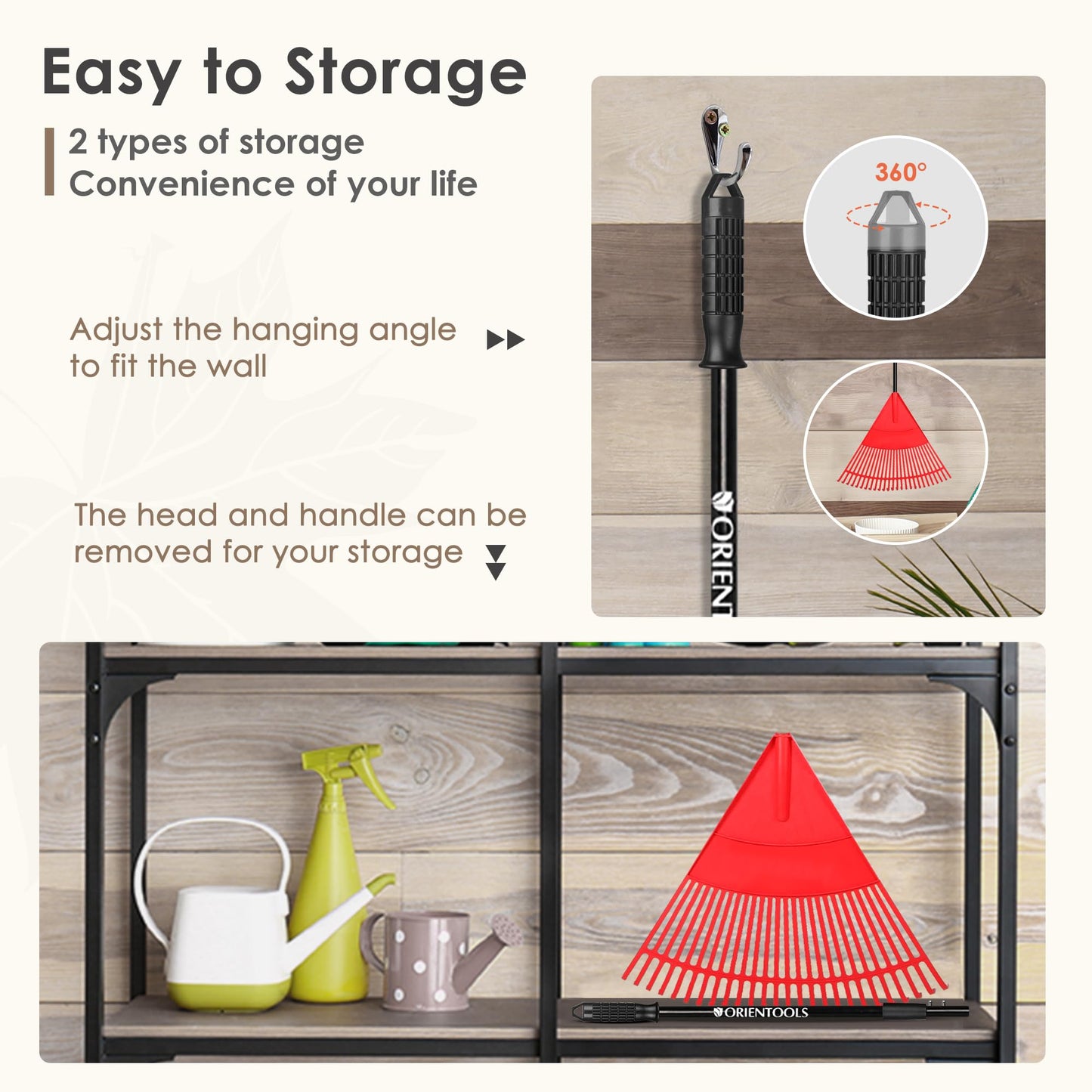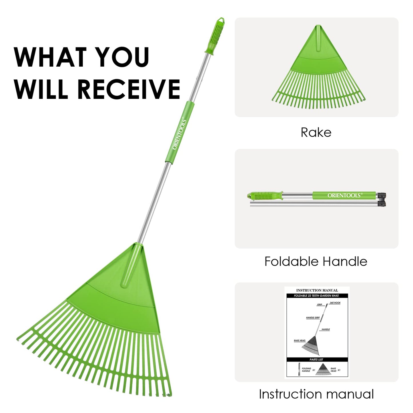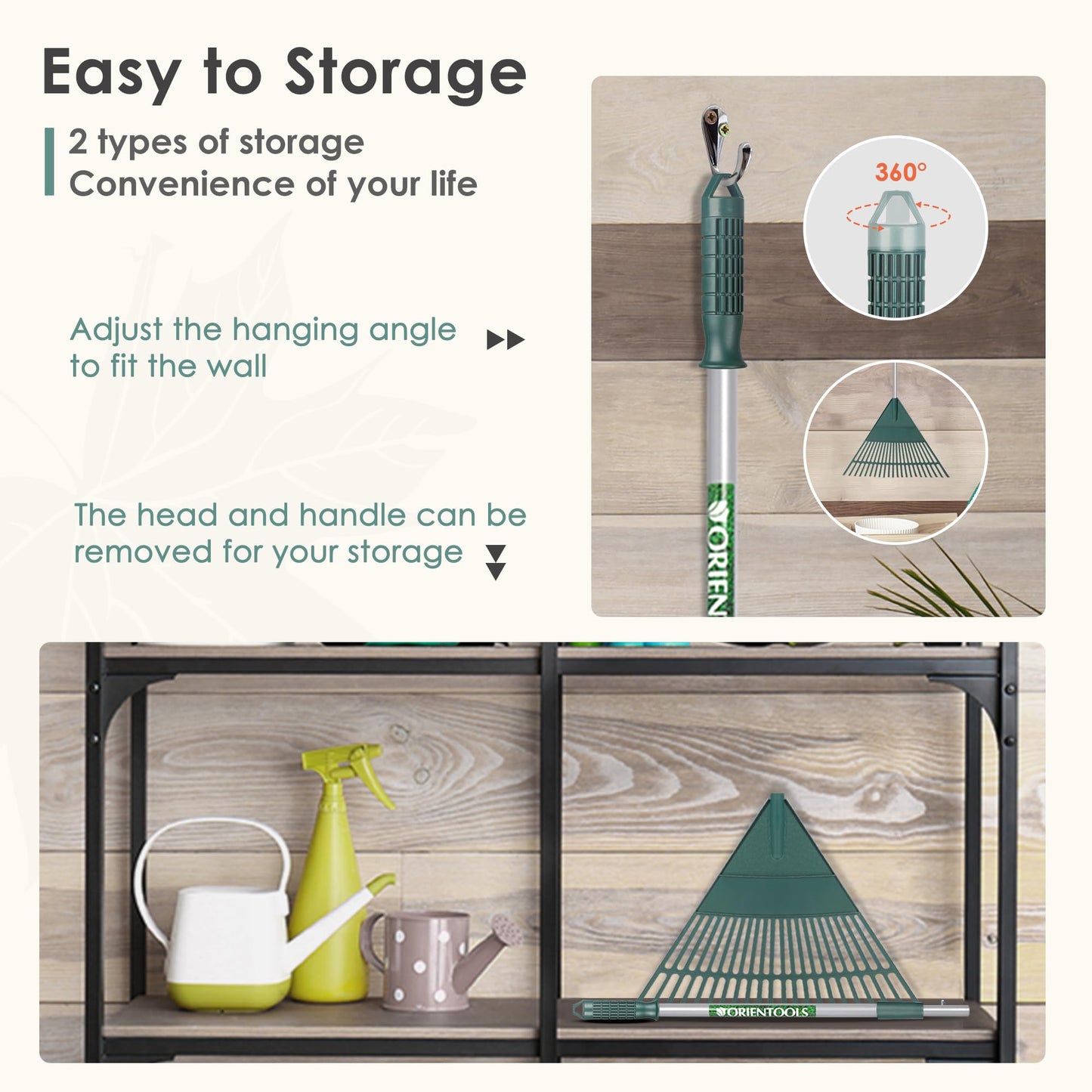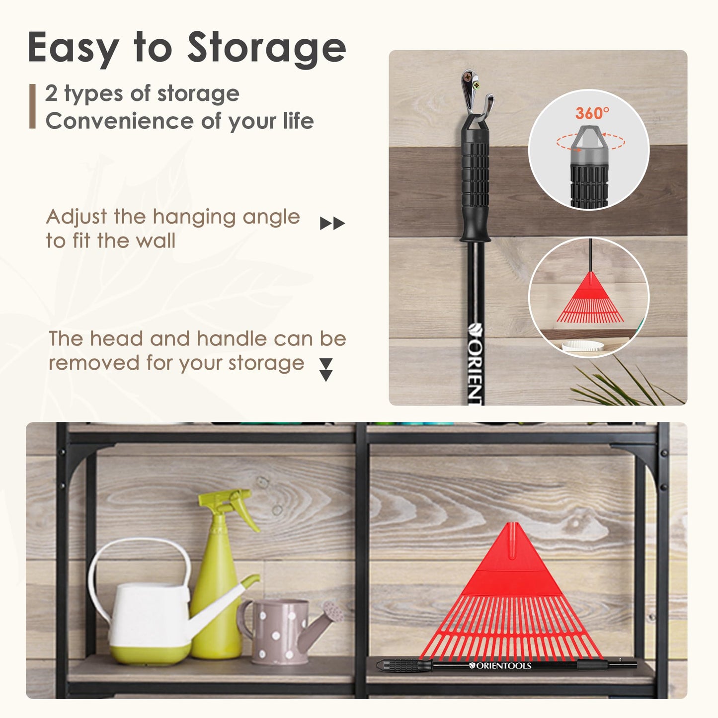 ORIENTOOLS Garten Laubrechen, Garten Rechen für Rasen Laub mit verstellbarem Griff 107 bis 156 cm Rechen, 22 Starke Zinken Kunststoff Kopf Strauch Rechen, Landschaftsbesen für Rasen und Blätter