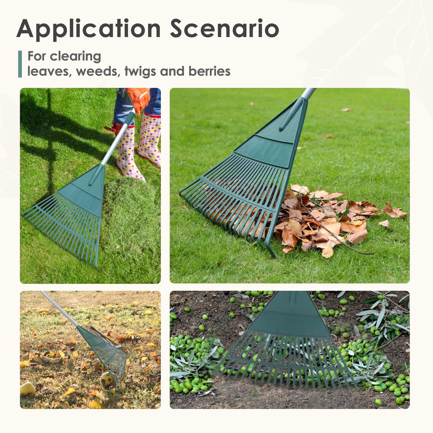 - EFFIZIENTES REINIGEN: Unser Laubrechen für den Garten kann Schnittgut, Blätter und andere lose Rasen- und Gartenabfälle leicht zusammenharken, ohne die Pflanzen zu beschädigen. Gartenharken für Rasen ist ein perfekter Helfer für Ihren Garten, Bauernhof, Hof und andere Orte. Unsere Gartenharke wird eine große Bereicherung für Ihre Gartenarbeit sein.