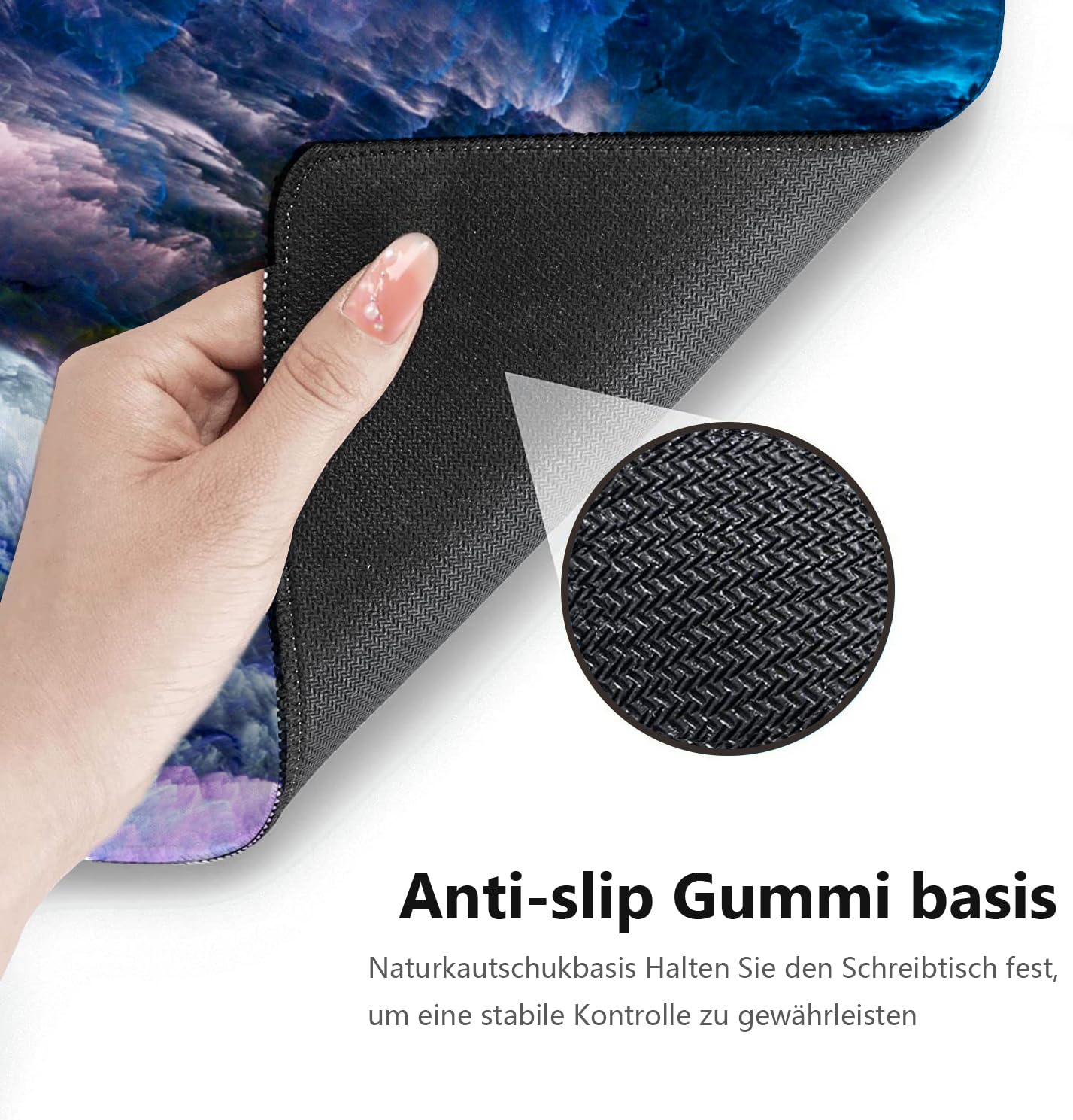 - 【Rutschfeste Unterseite】: Die Unterseite des Mauspads besteht aus rutschfestem Naturkautschukmaterial. Sie können fest auf dem Schreibtisch befestigt werden, um ein Verrutschen zu verhindern. Genießen Sie eine stabile Maus- oder Tastaturbedienung bei der Arbeit oder im Spiel.