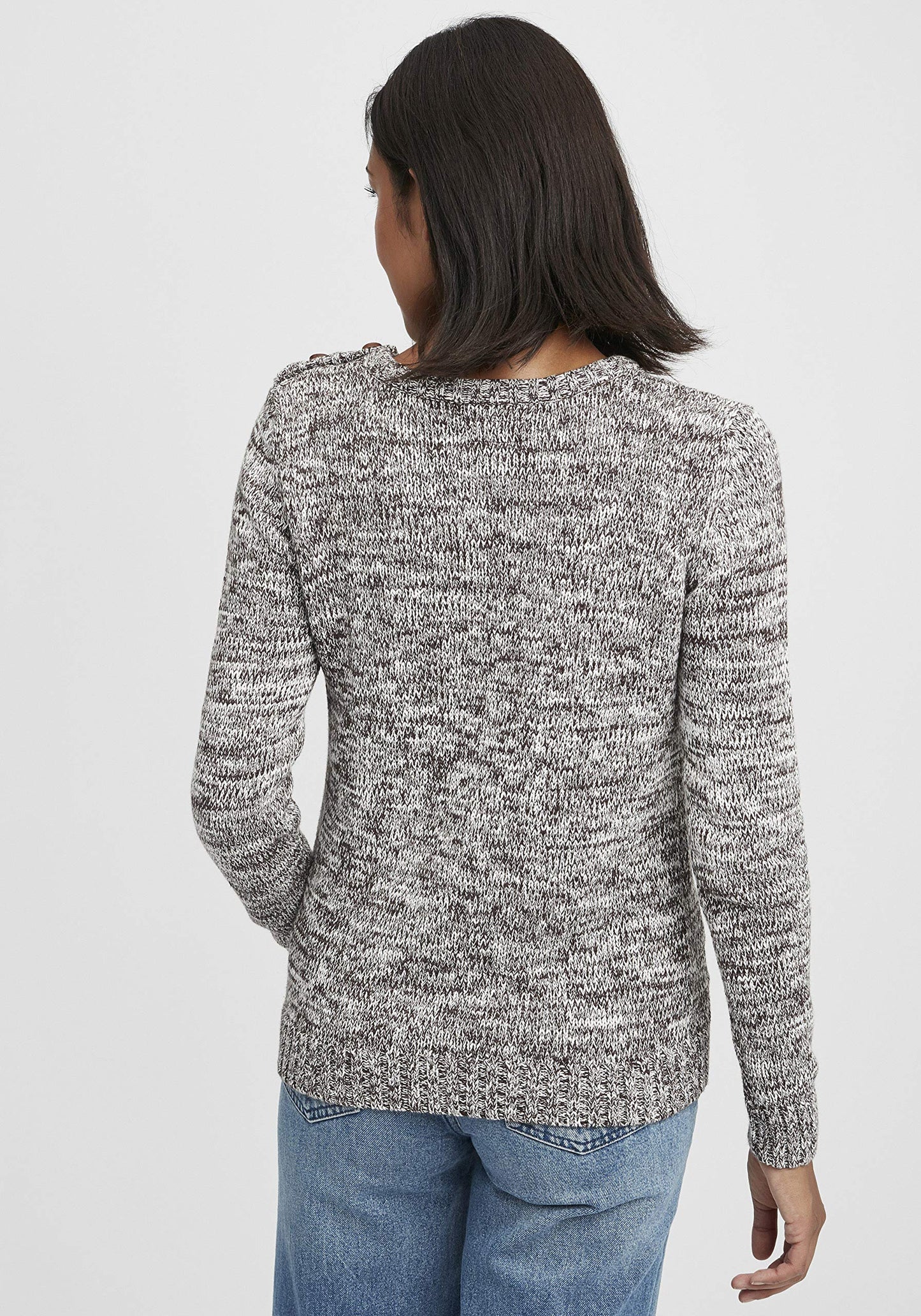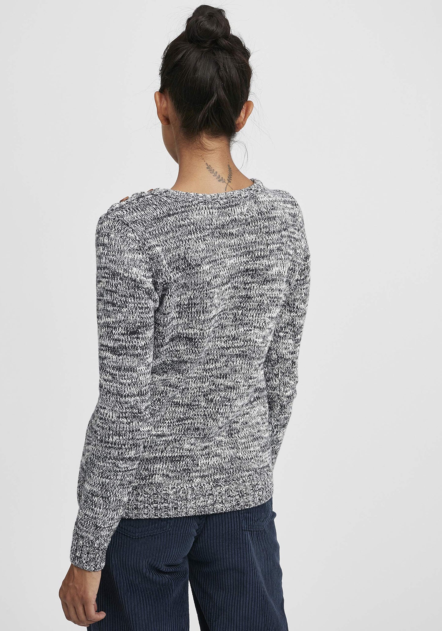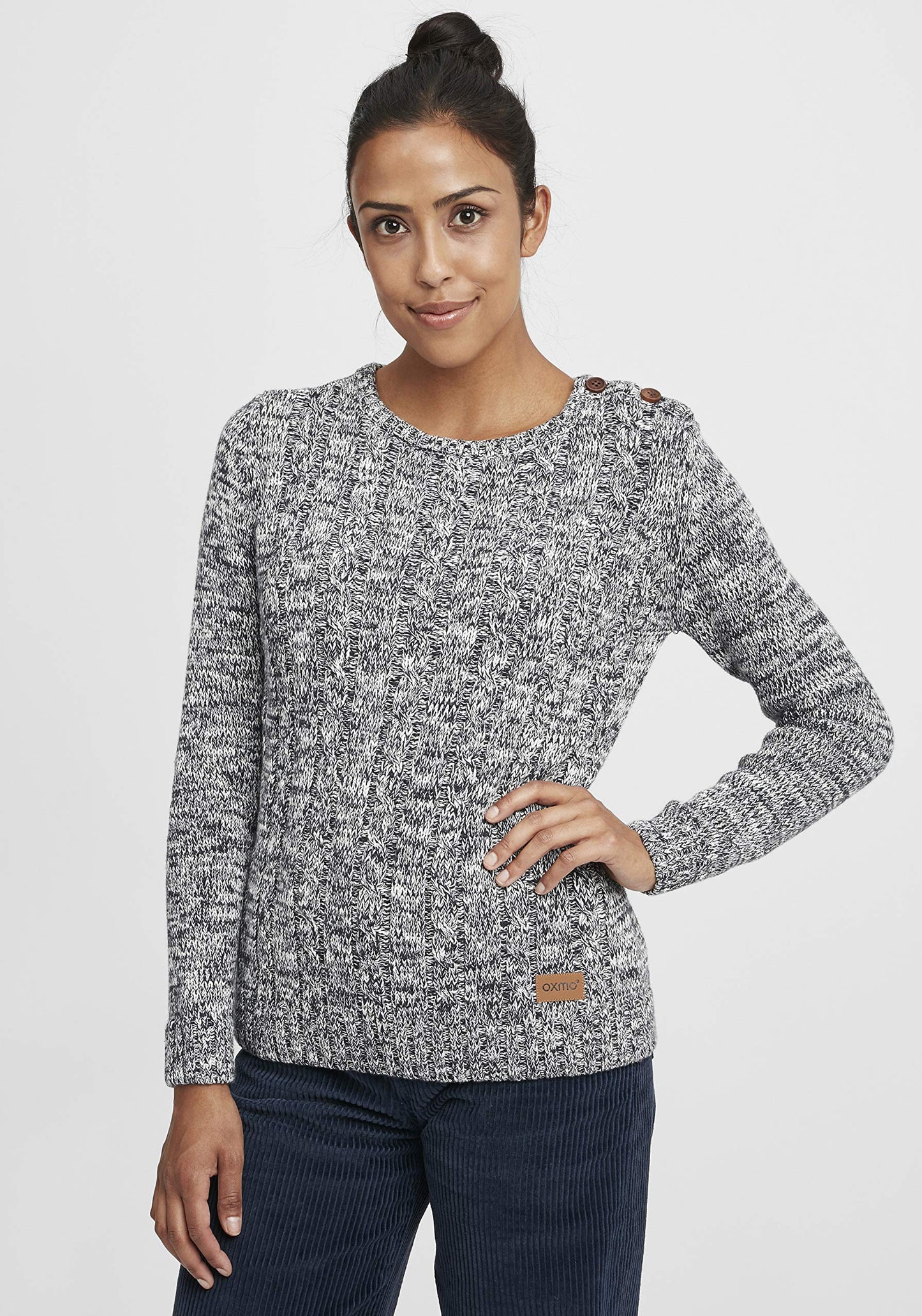 Wrap up in cozy, everyday elegance with the OXMO OXPhia cable knit sweater. Crafted from 100% pure cotton, this chunky knit pullover combines comfort, warmth, and timeless design. A melange look, side wood-button shoulder detail, and classic cable stitching on the chest make this sweater a standout piece for work or casual wear. Sustainably produced under the Better Cotton Initiative, it’s a feel-good choice for your wardrobe and the planet.