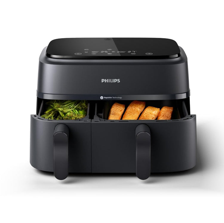 Philips Airfryer Dual Basket 3000 Series, 9L, 2 Körbe, 2 Gerichte gleichzeitig fertig, RapidAir Plus Heißlufttechnologie, 90% weniger Fett, Energieeffizient, HomeID Rezepte-App