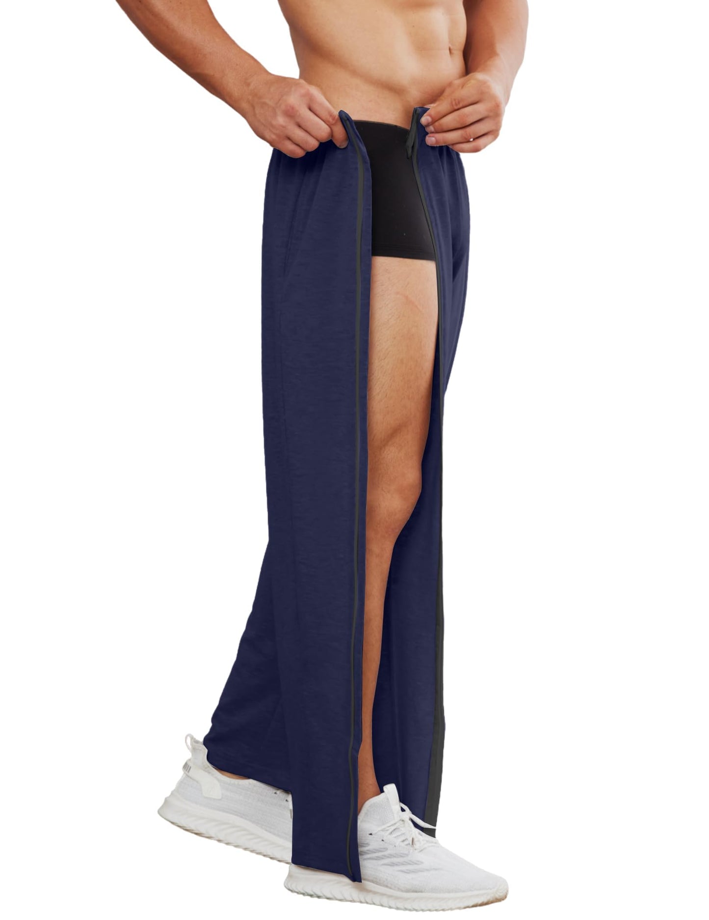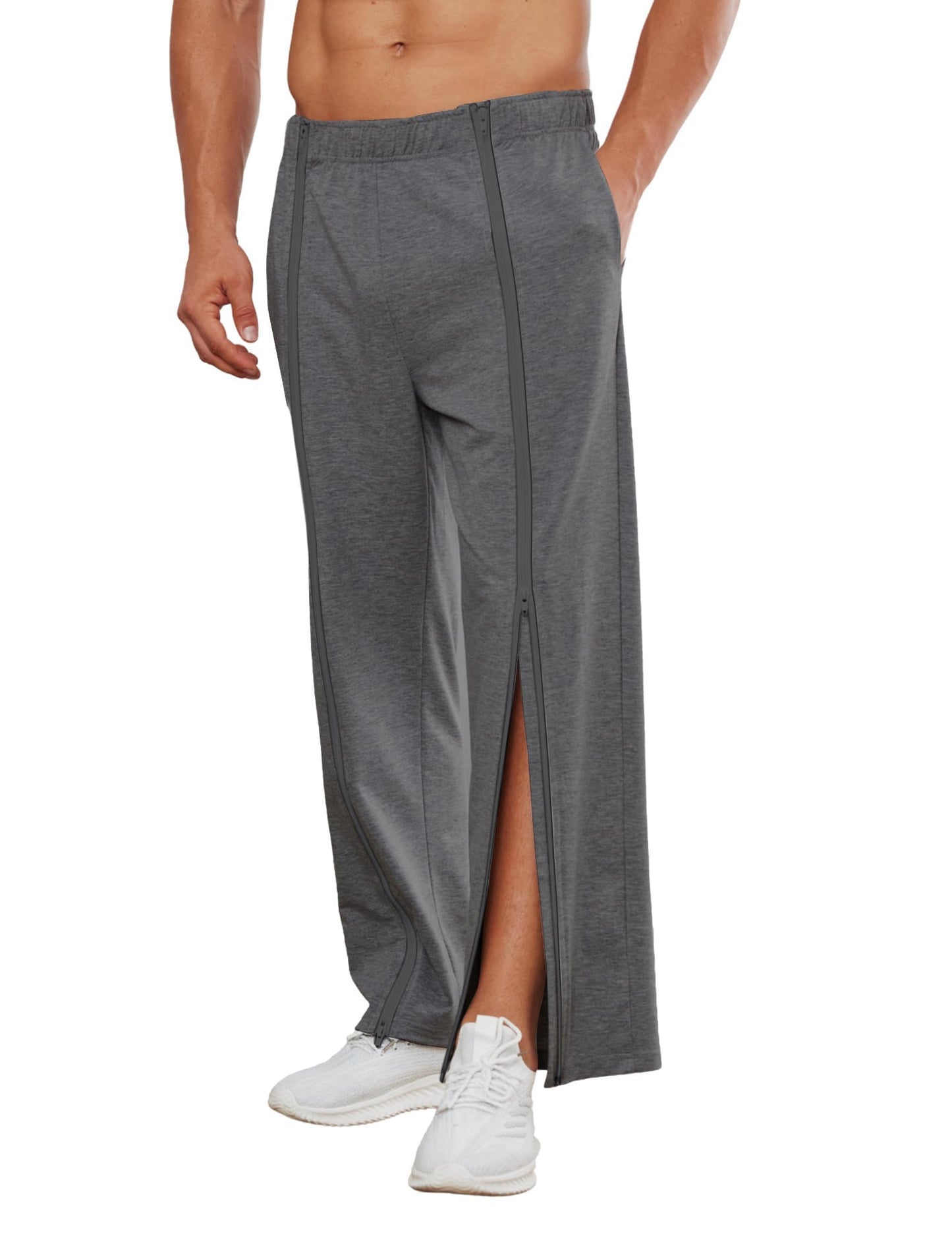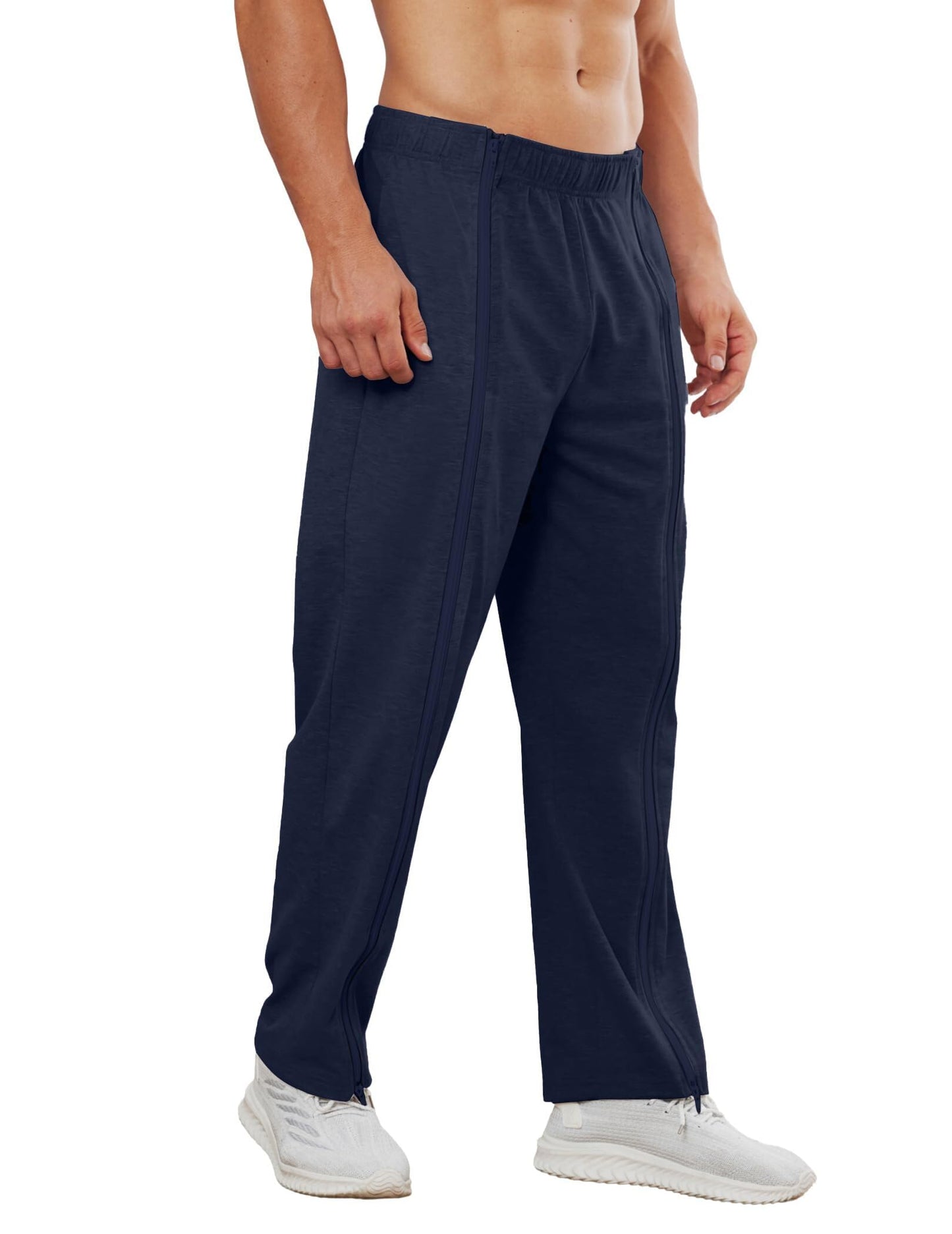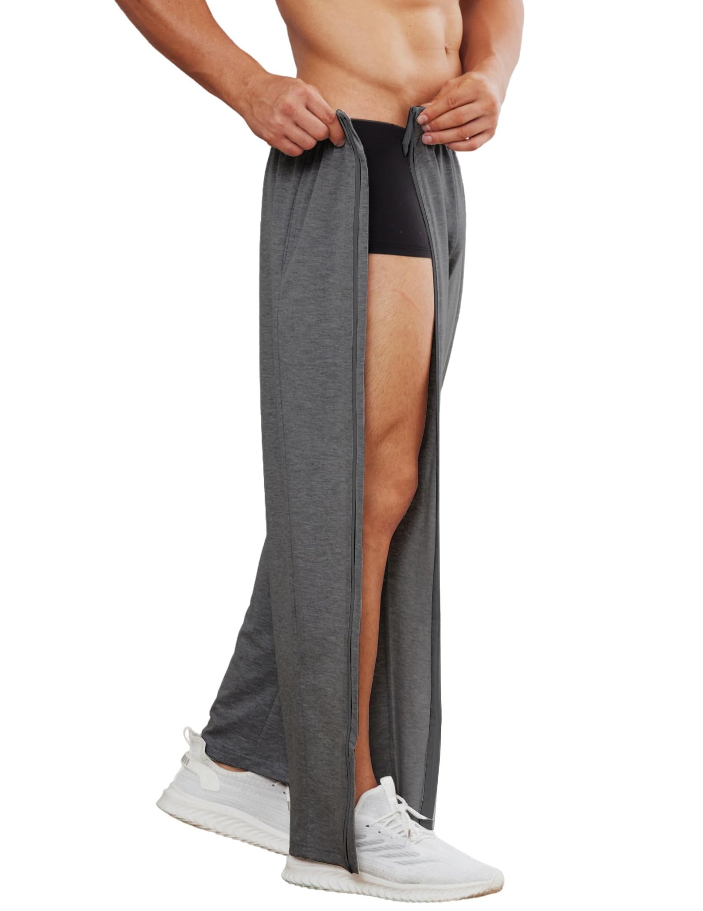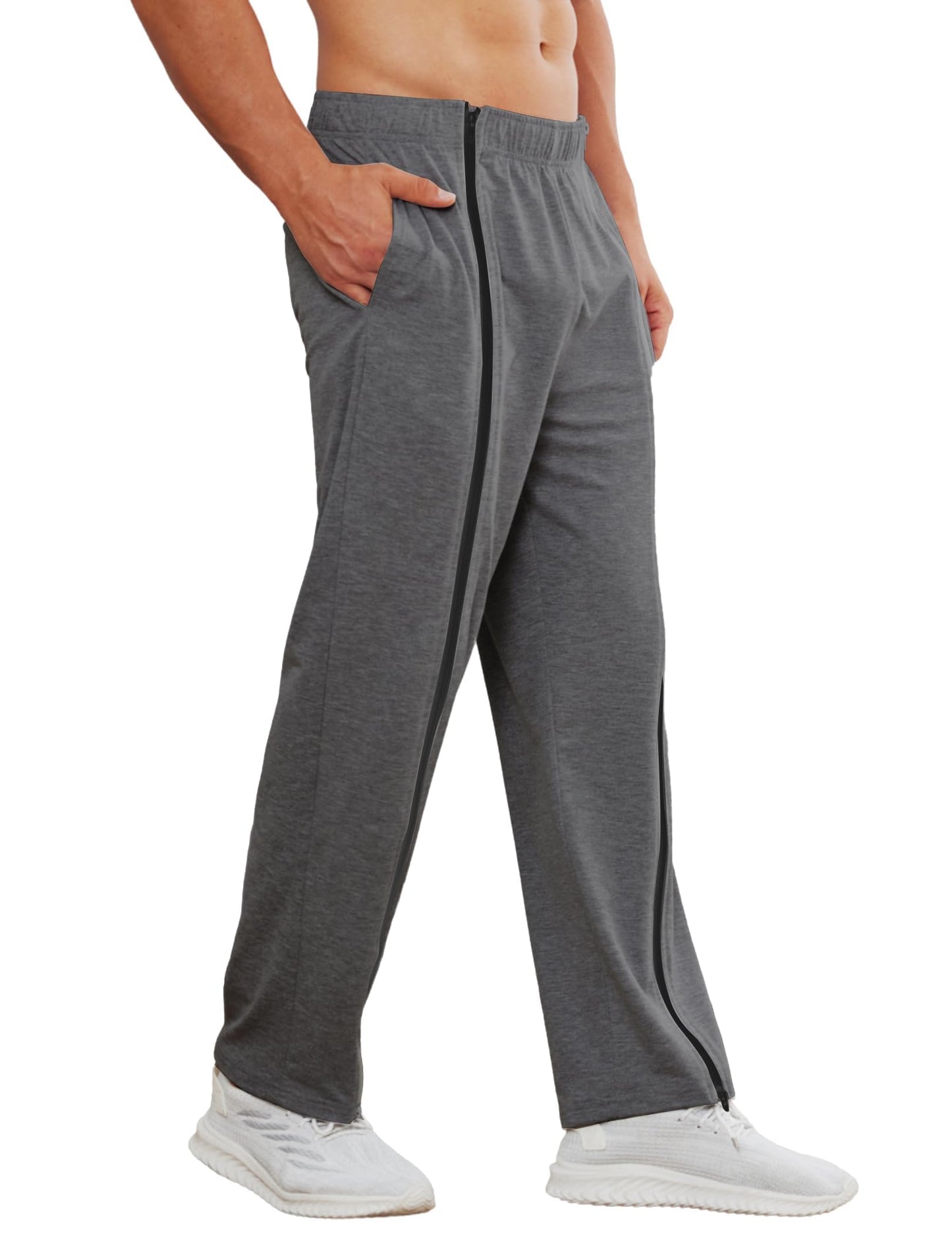 PINSPARK Men's Rehab Joggers with Full-Length Zipper