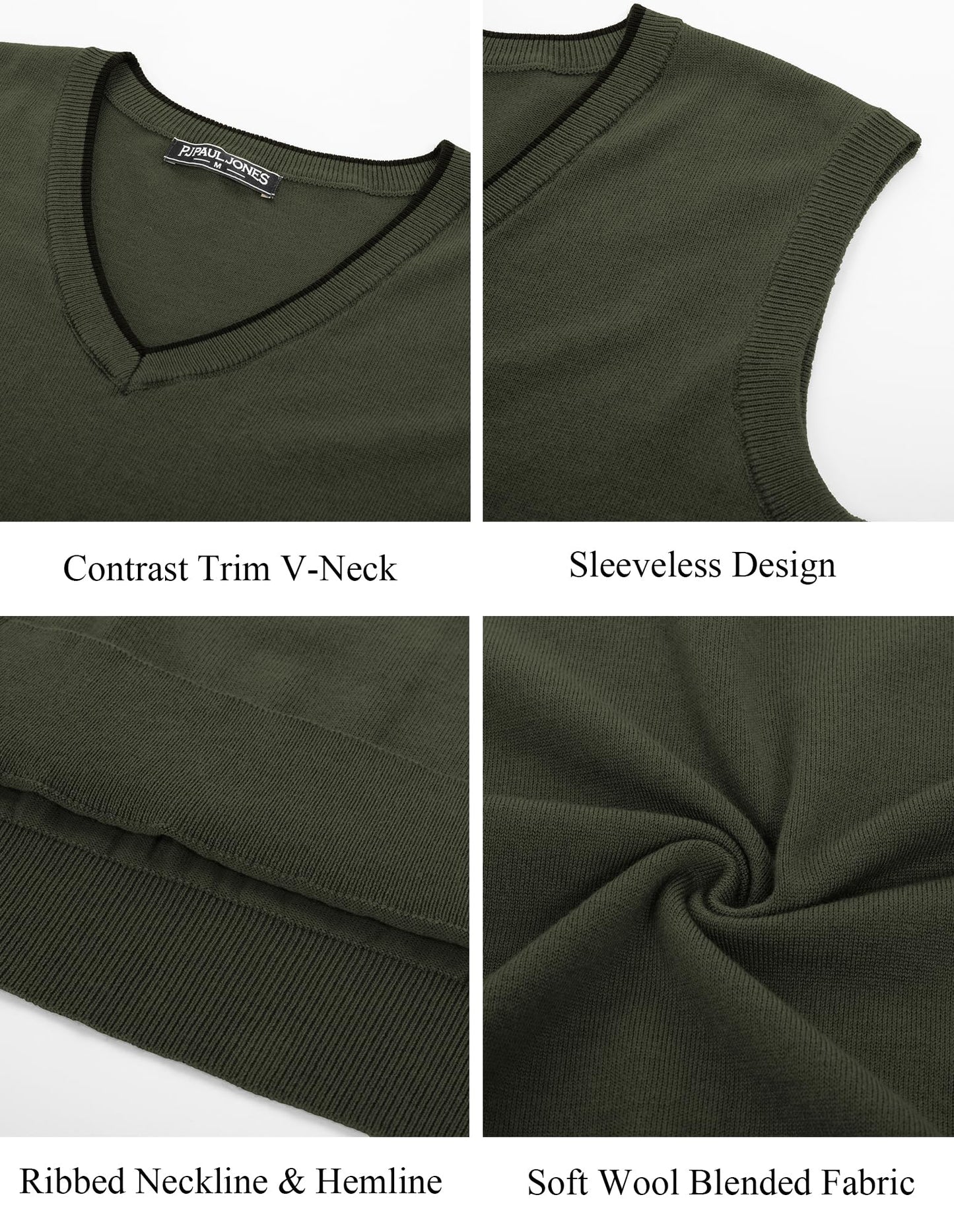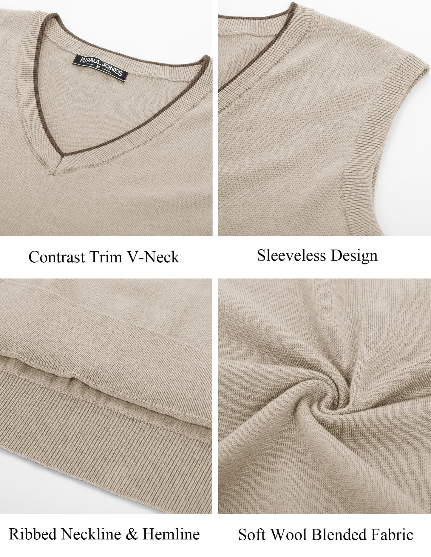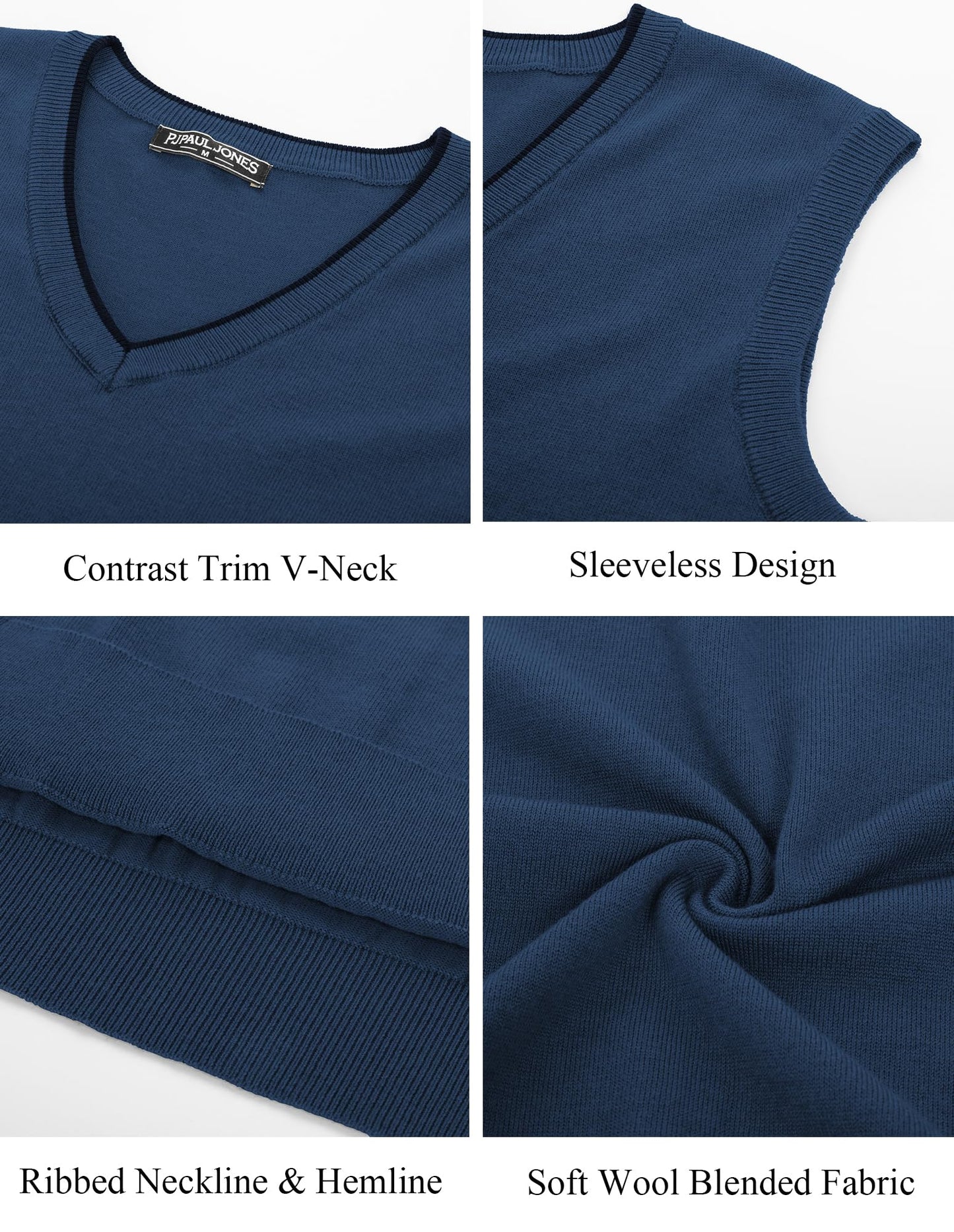Upgrade your layering game with the PJ PAUL JONES men’s wool blend sweater vest. This sleeveless pullover features a V-neck design with contrast trim and ribbed detailing for a classic look. Made from a cozy and lightweight knit fabric with wool content, it offers warmth, softness, and versatility for both casual and formal outfits. Ideal for business, leisure, and cool-weather styling.