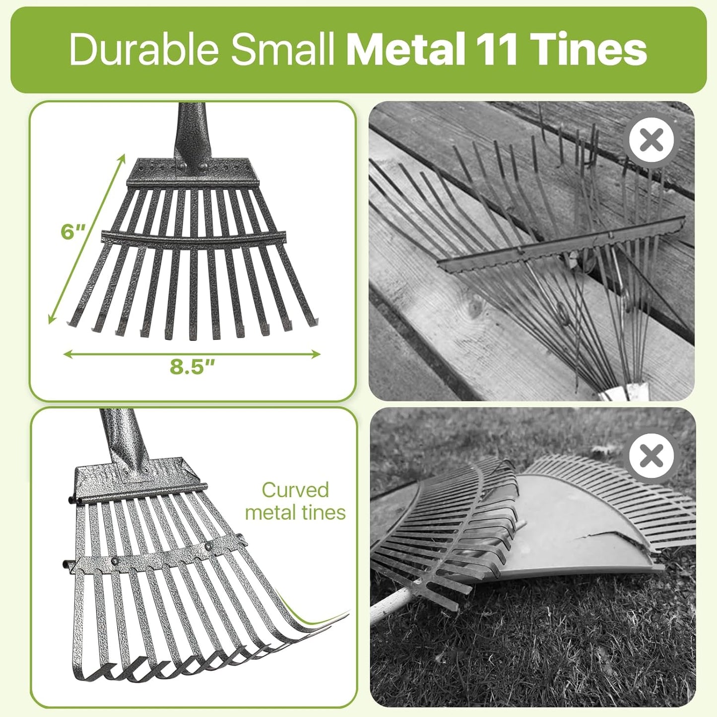 - Gartenrechen: Dieser Metallrechen (21,6 cm breiter Rechenkopf) ist ein großartiges Gartengerät zum Harken an schwer erreichbaren Stellen. Entfernen Sie Blätter und Abfall unter Sträuchern, Zäunen und um Pflanzen herum, ohne Schäden zu verursachen. Ideal für Ihren Garten und Hof, auch für Kinder geeignet.