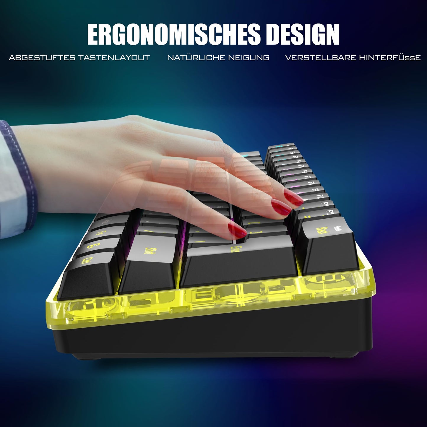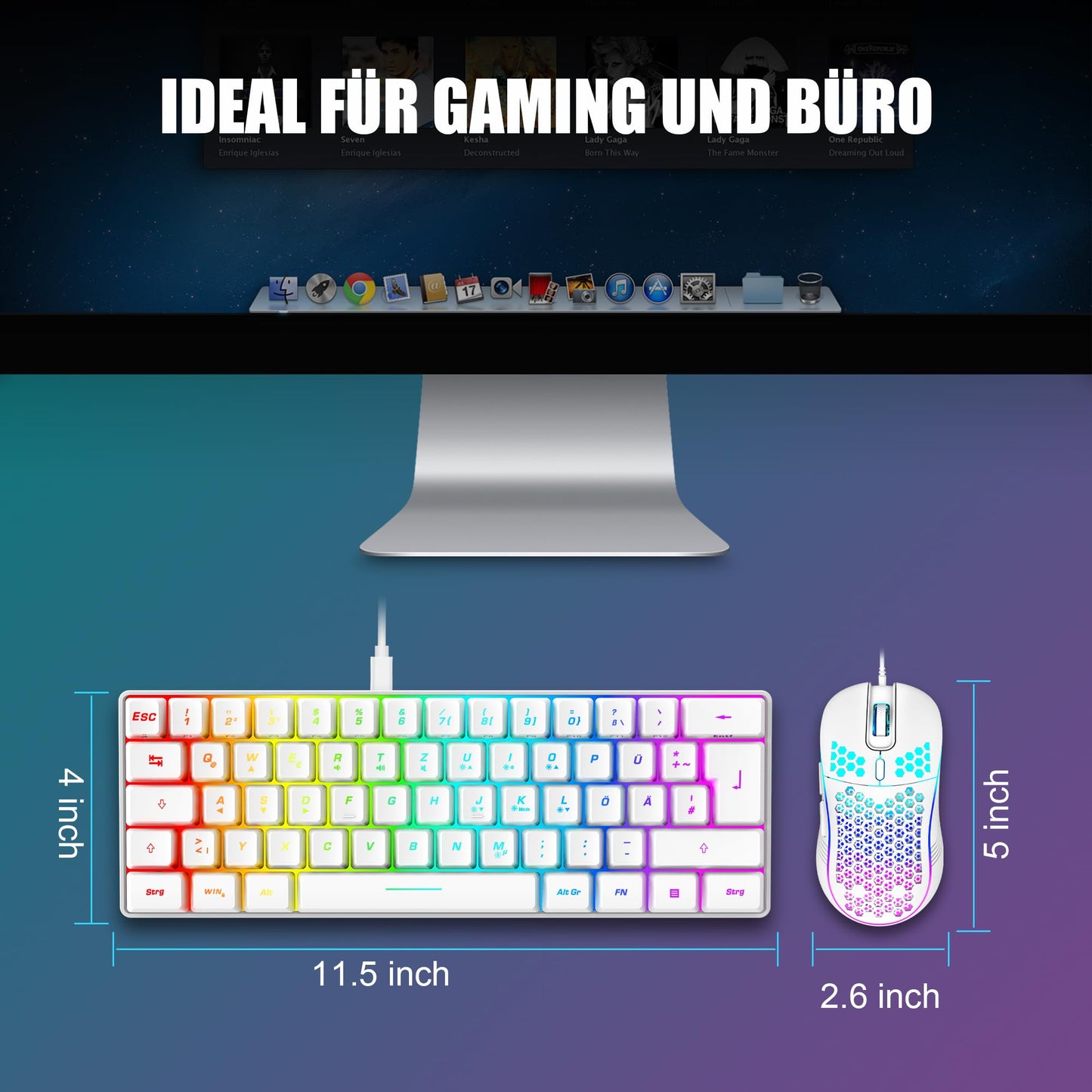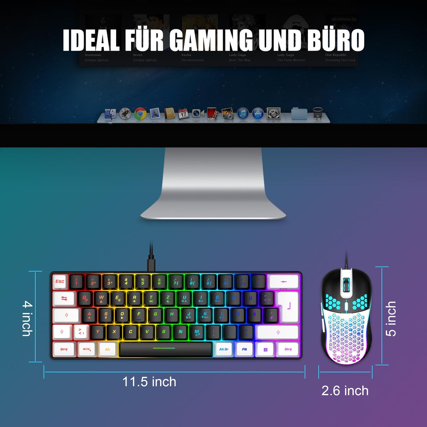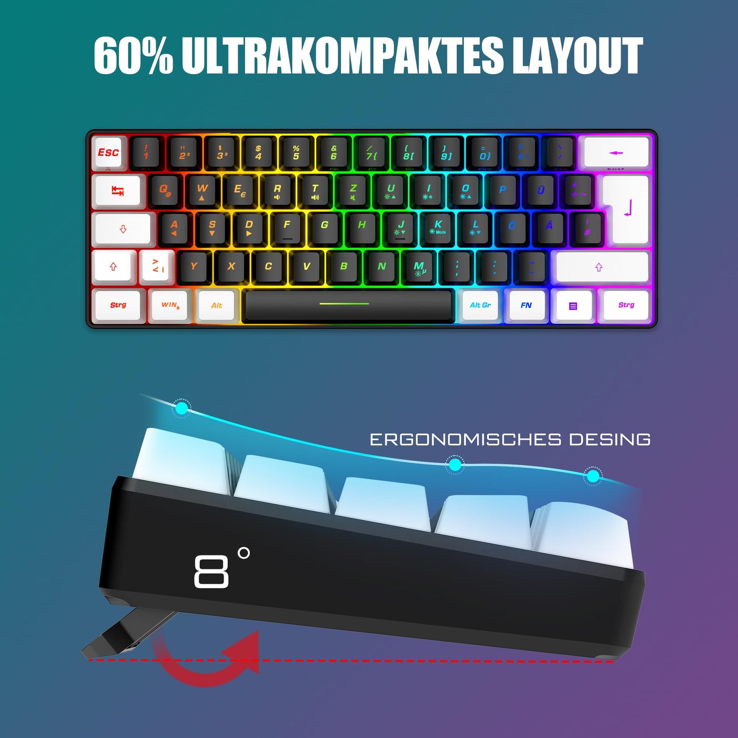 - 【60 % Kompakte Layout-Tastatur Gaming】 Das ultrakompakte Layout macht Sie zu einem ordentlichen Desktop mit Ihren organisierten Geräten, selbst Leute, die nichts mit Minimalist zu tun haben, werden in sein winziges, praktisches Design eintauchen. Tipps, die Sie vielleicht wissen möchten, sind, dass die Tastatur ohne Nummernblock die Wahl der meisten FPS-Gamer ist, mehr Platz für Mausbewegungen.