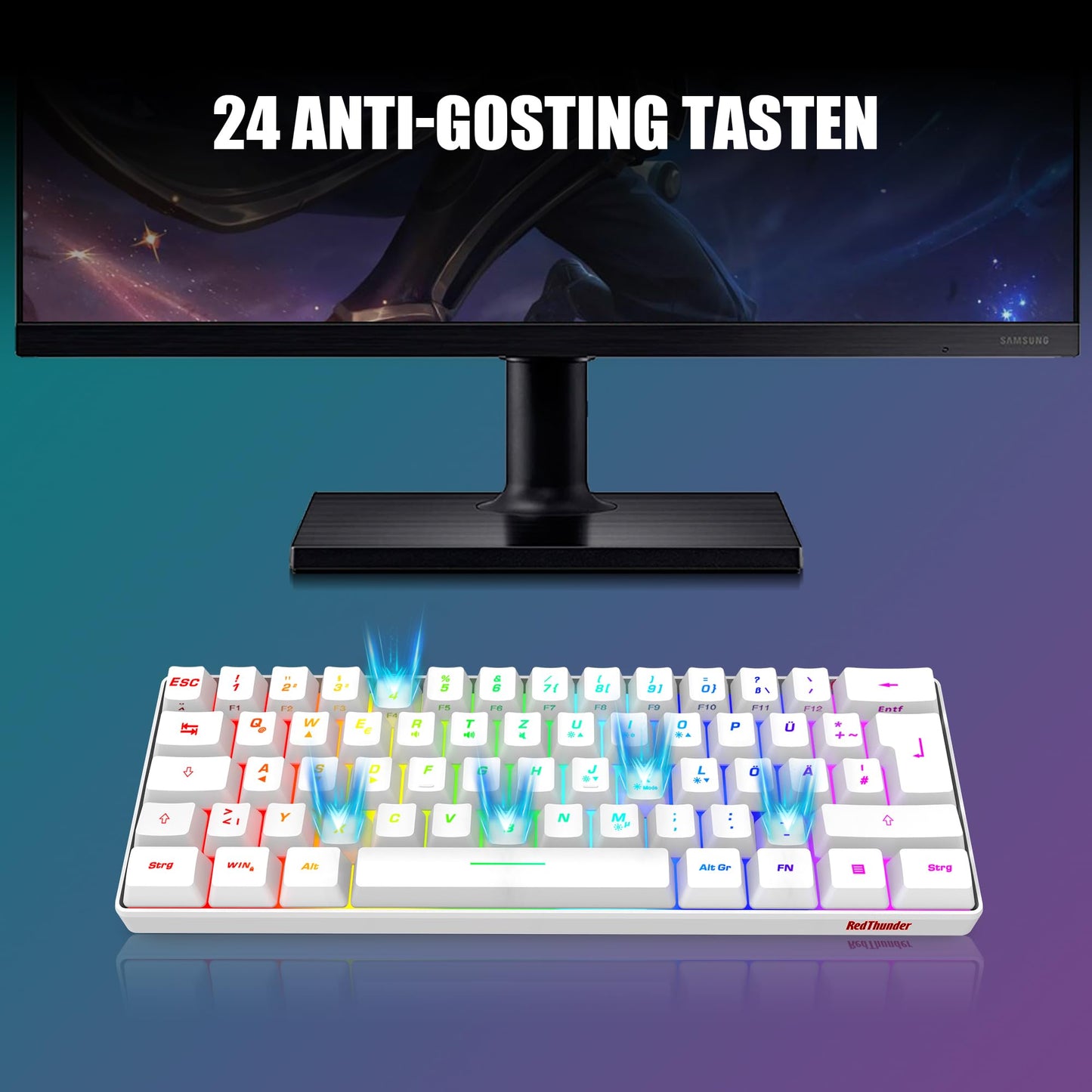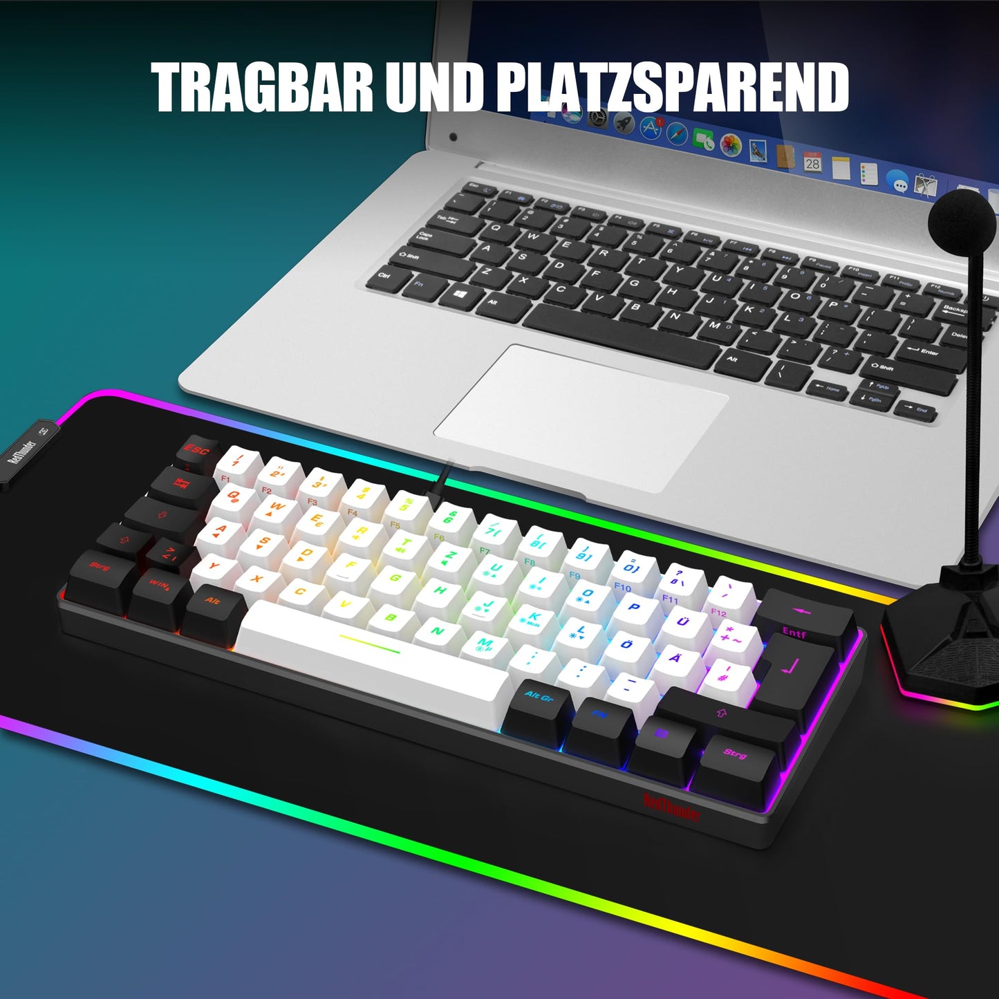 RedThunder 60% RGB Verkabelte Gaming Tastatur und Maus Set, Mini Gaming Tastatur, 62 Tastatur, DE Layout, Ultraleichte 7200 DPI Maus mit Wabenkonstruktion für PC MAC PS5 Xbox Gamer (Schwarz-Weiß)