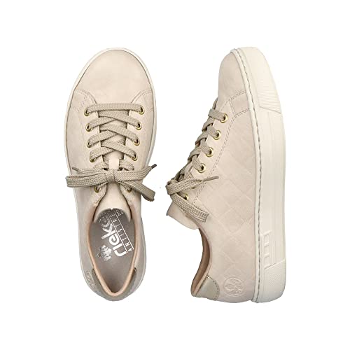 Discover the perfect blend of comfort, function, and style with Rieker Women's Sneaker L9800. These light beige sneakers offer excellent support and a perfect fit with a lace-up closure. The ultra-light and flexible EVA sole ensures comfort with every step, while the extra-soft insole enhances all-day wearability. Designed for both style and comfort, these sneakers are sure to become your new favorite footwear.