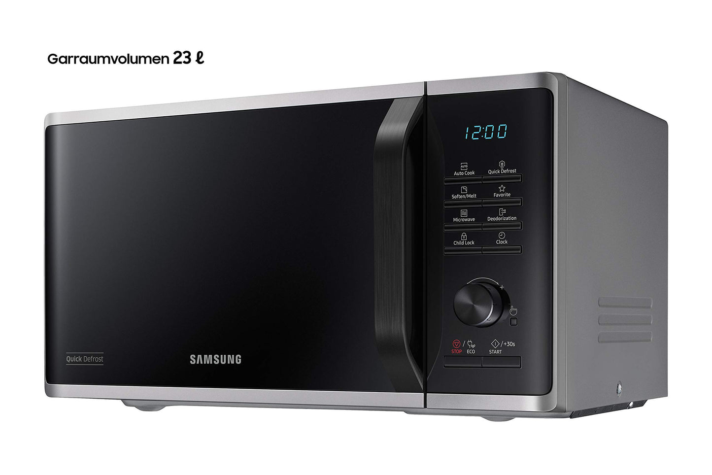 Samsung MS2AK3515AS/EG Mikrowelle, 800 W, 23 ℓ Garraum, 48,9 cm Breite, Kratzfester Keramik-Emaille-Inneraum, QuickDefrost Auftauprogramme, Silber