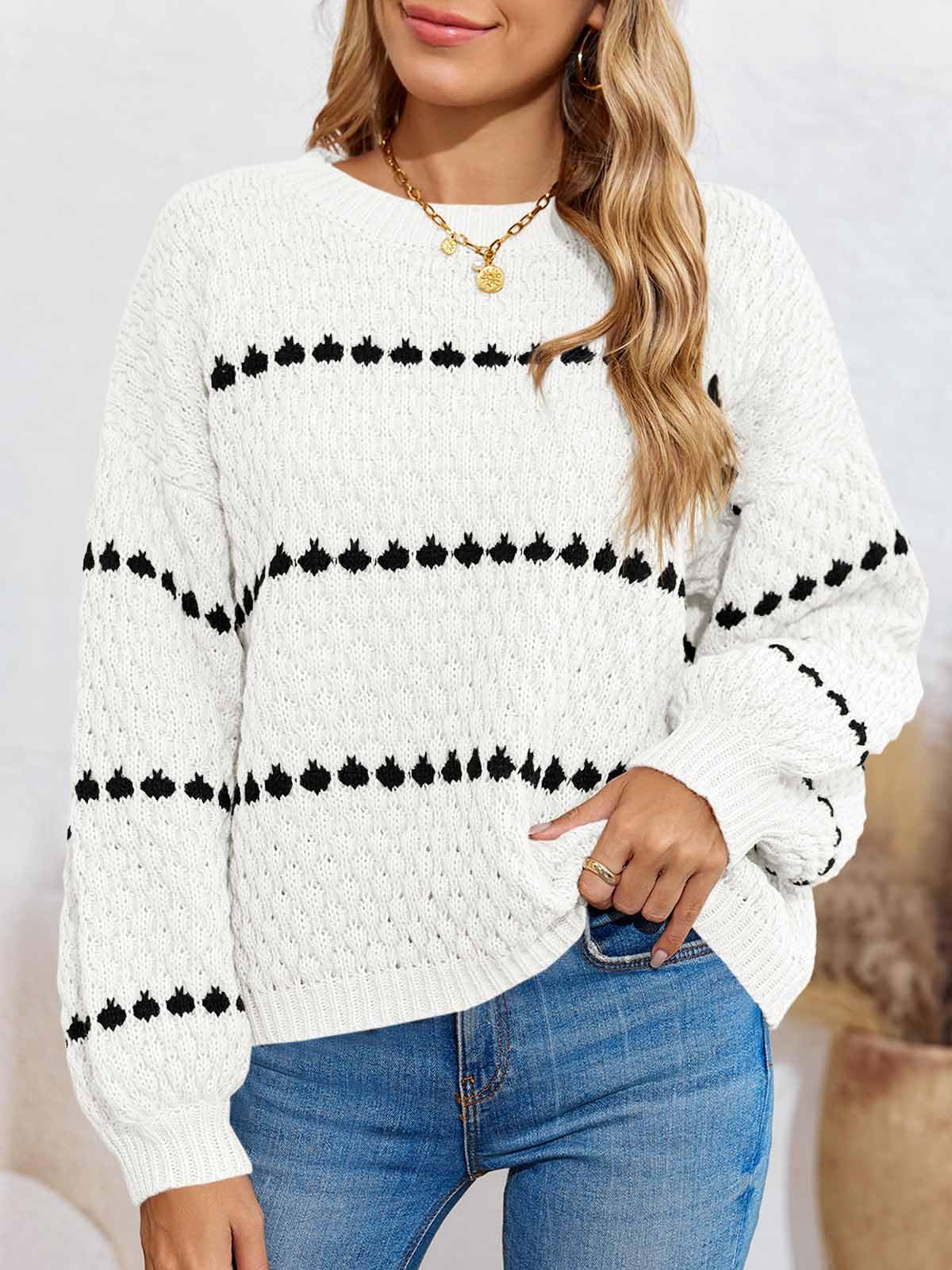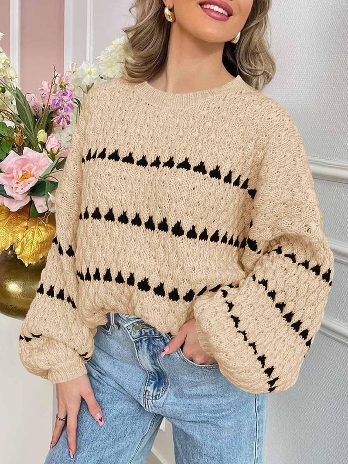 Cozy up in chic comfort with the Saodimallsu oversized striped sweater. Made from soft, breathable knit fabric, this relaxed-fit pullover features trendy puff sleeves, colorblock stripes, and a classic crew neckline. Designed for effortless everyday style, it’s perfect for layering or lounging from fall through winter.