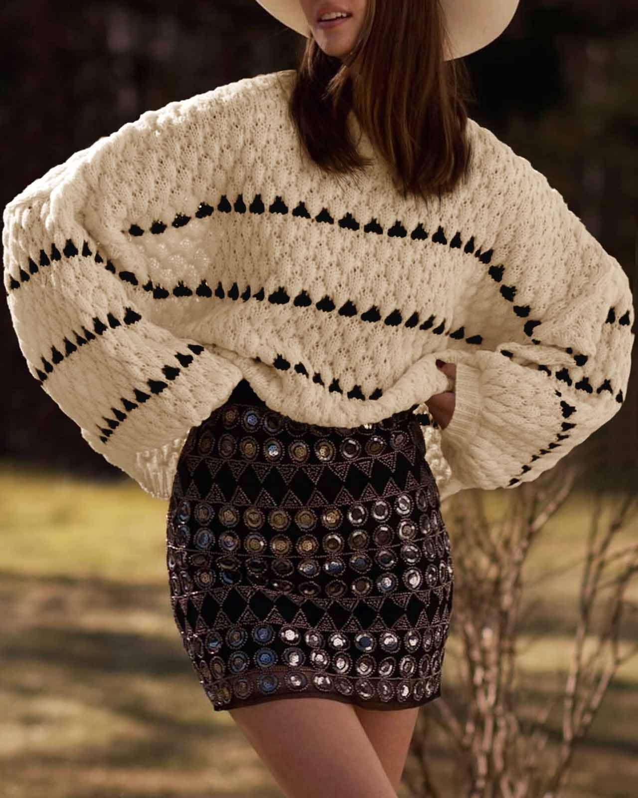 Saodimallsu Women’s Oversized Striped Knit Sweater