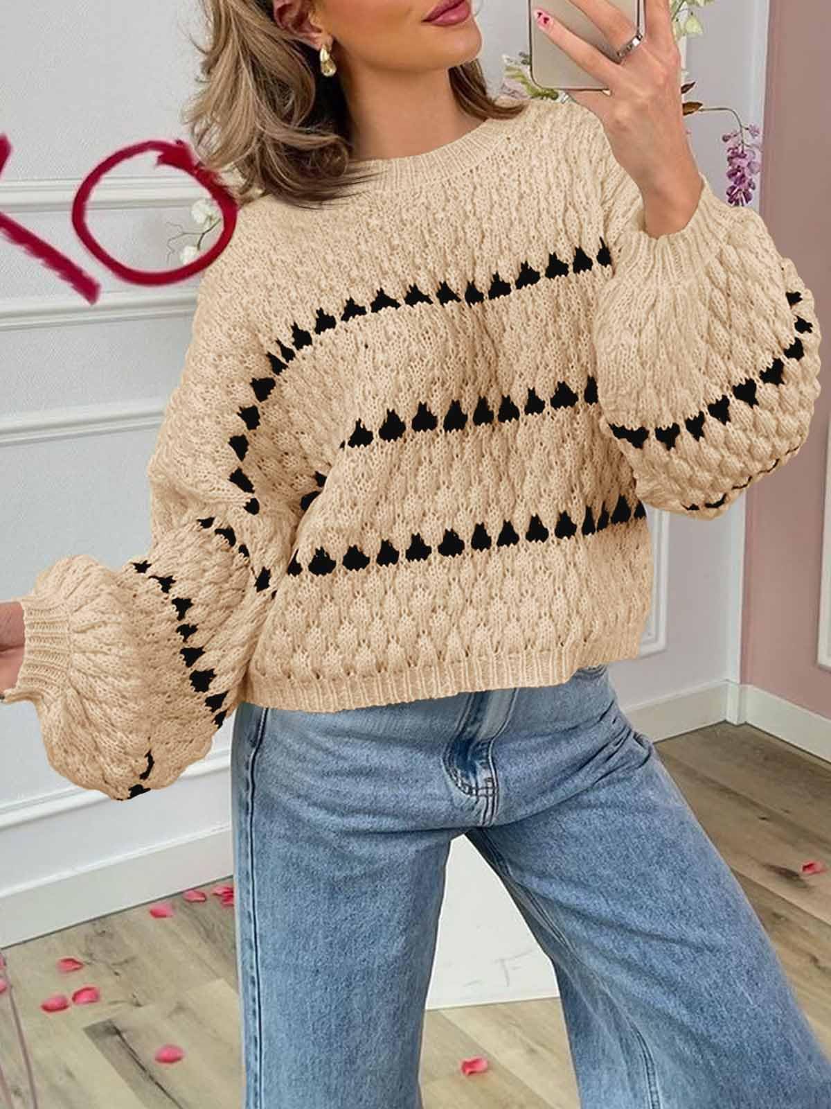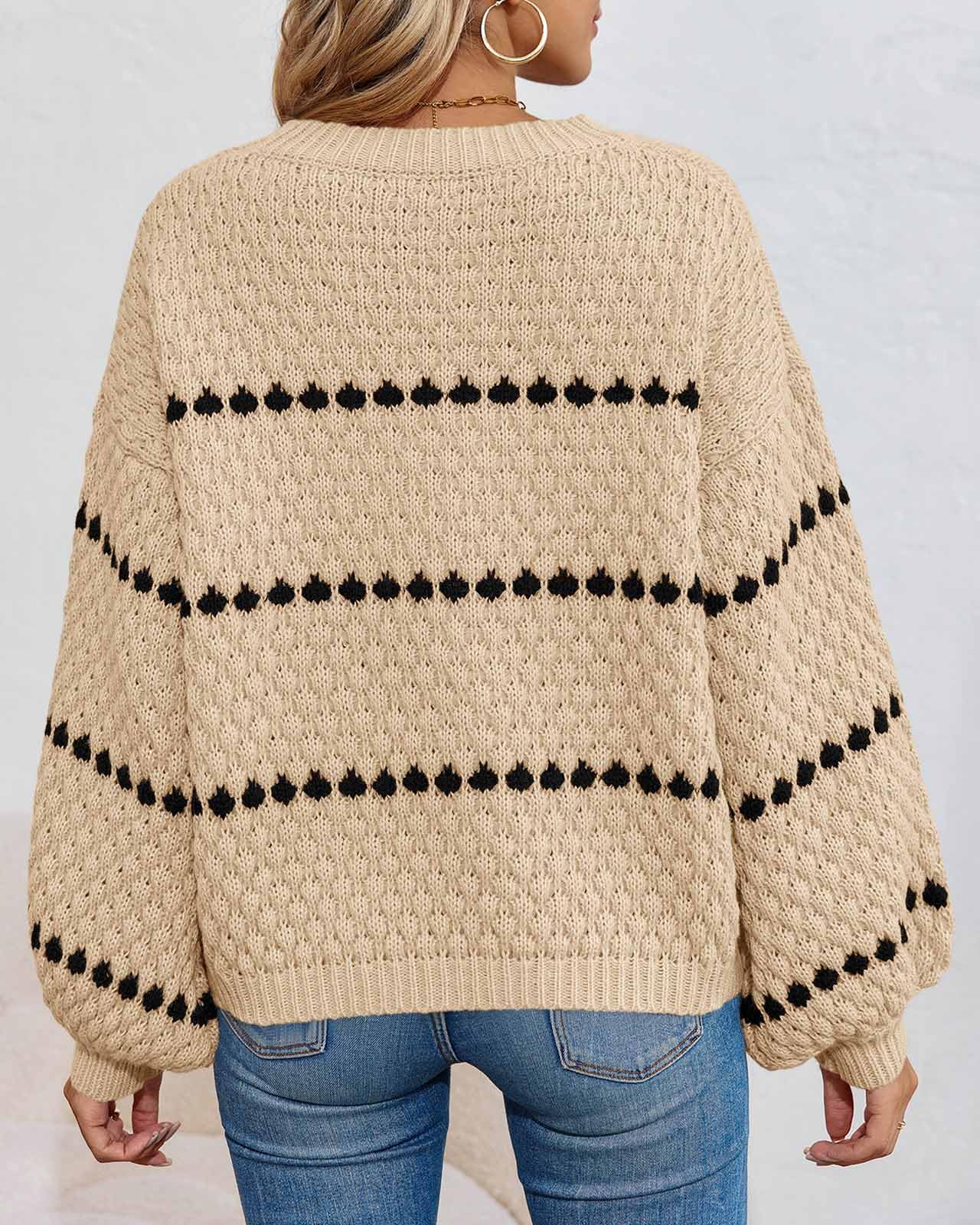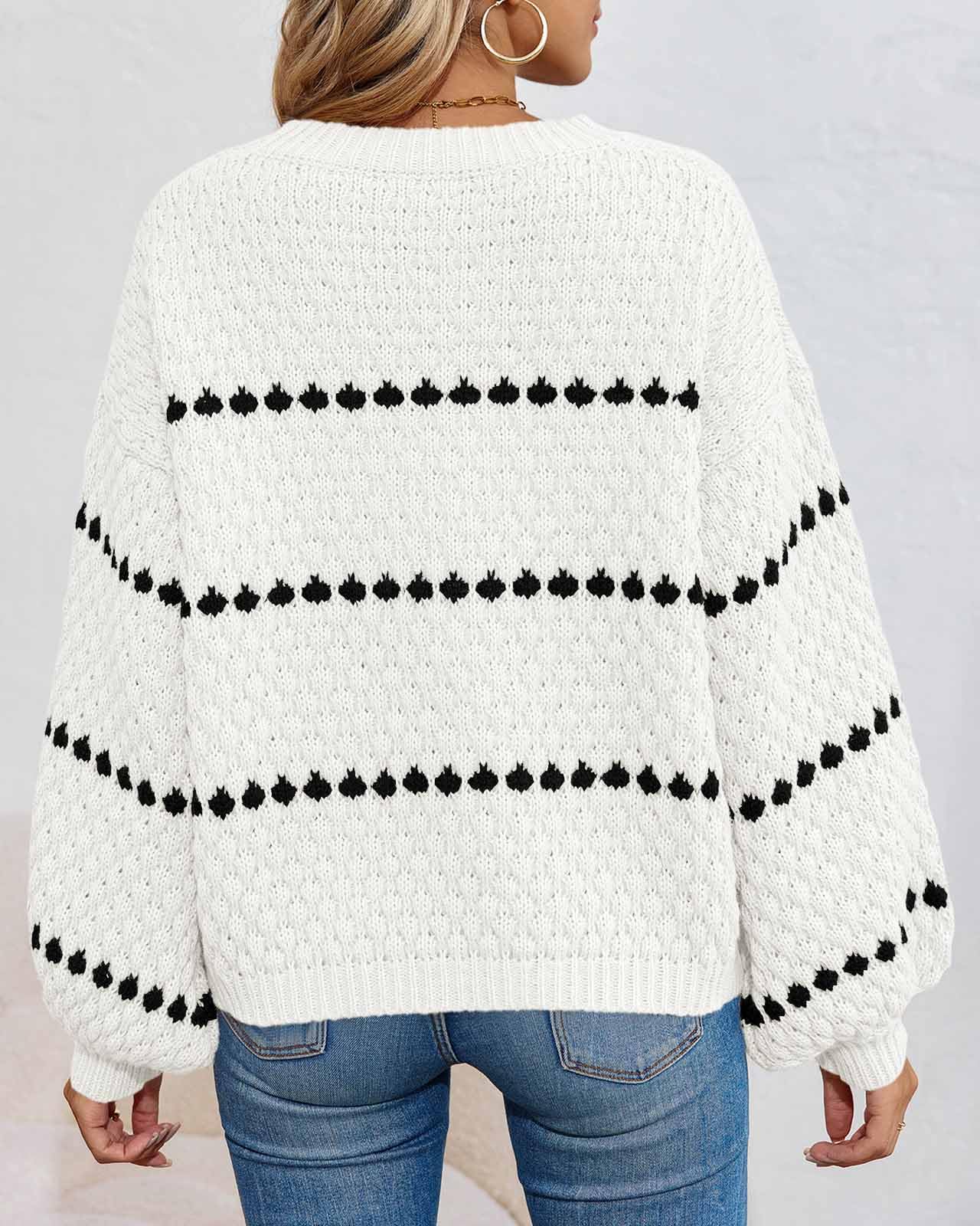- Stylish puff sleeves and colorblock dotted stripe pattern