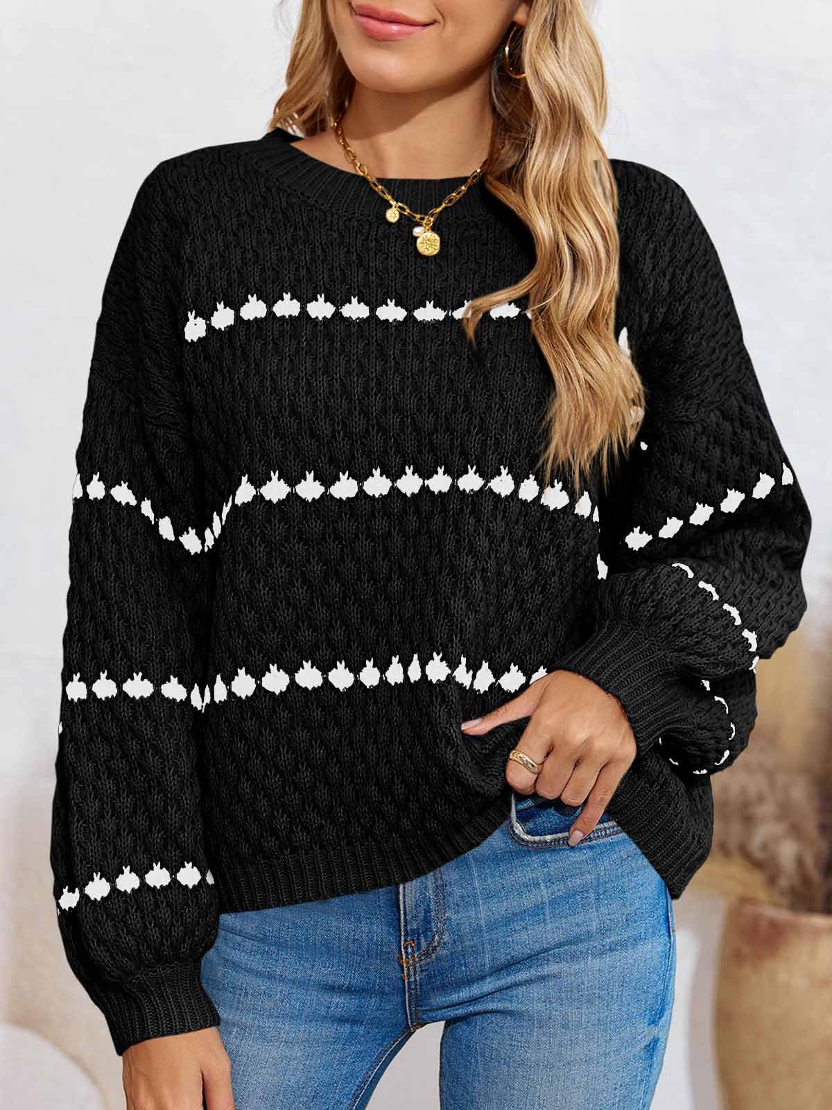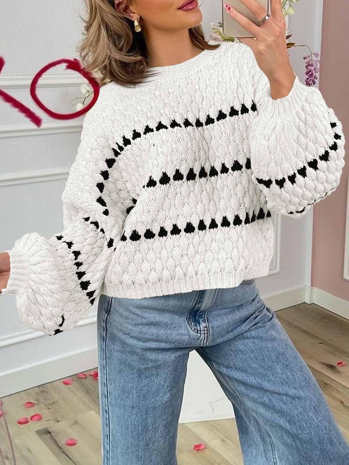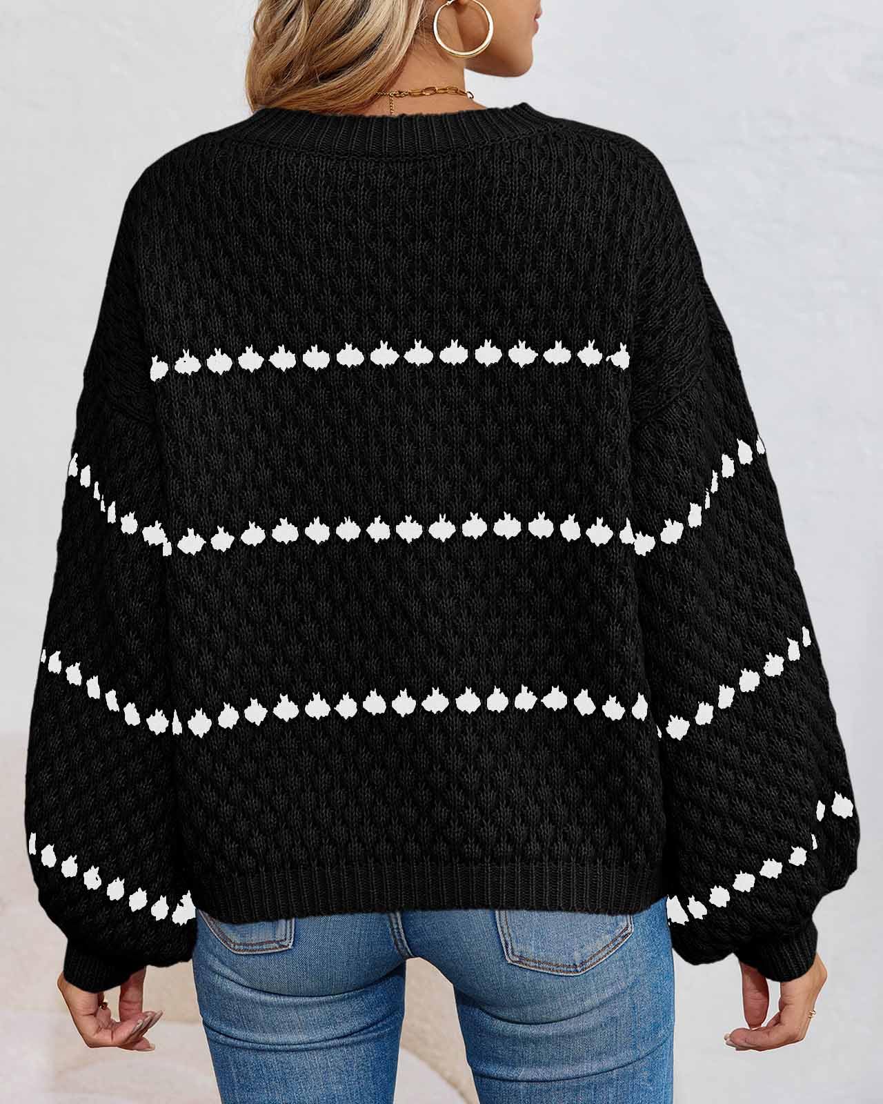 - Stylish puff sleeves and colorblock dotted stripe pattern