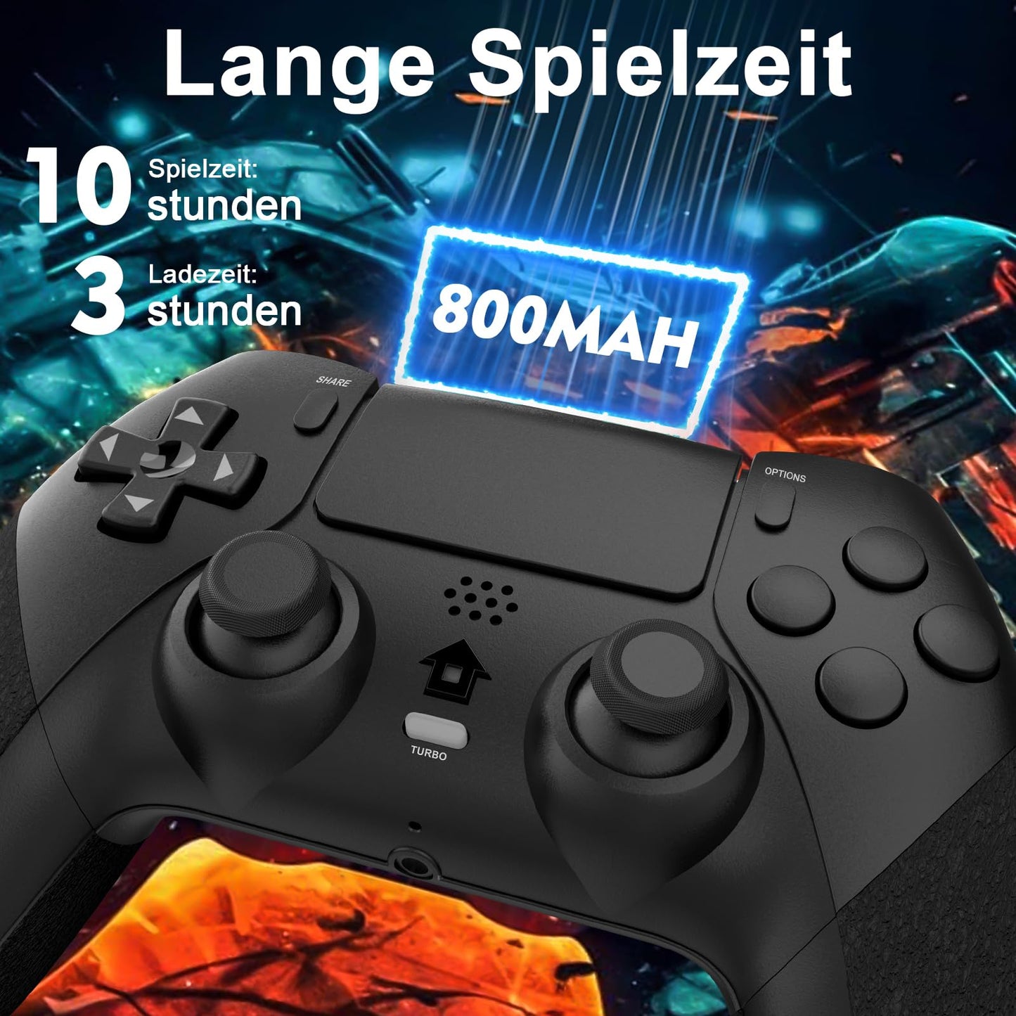- 【Lange Akkulaufzeit】: Mit der zuverlässigen Akkulaufzeit und der integrierten 800-mAh-Leistung können Sie mit einer einzigen Ladung 8–10 Stunden ununterbrochenes Gaming erreichen. Dieser kabellose P4-Controller verfügt über einen reaktionsschnellen Touchscreen und eine 3,5-mm-Stereo-Audiobuchse, um Ihr Spielerlebnis noch reicher zu machen!