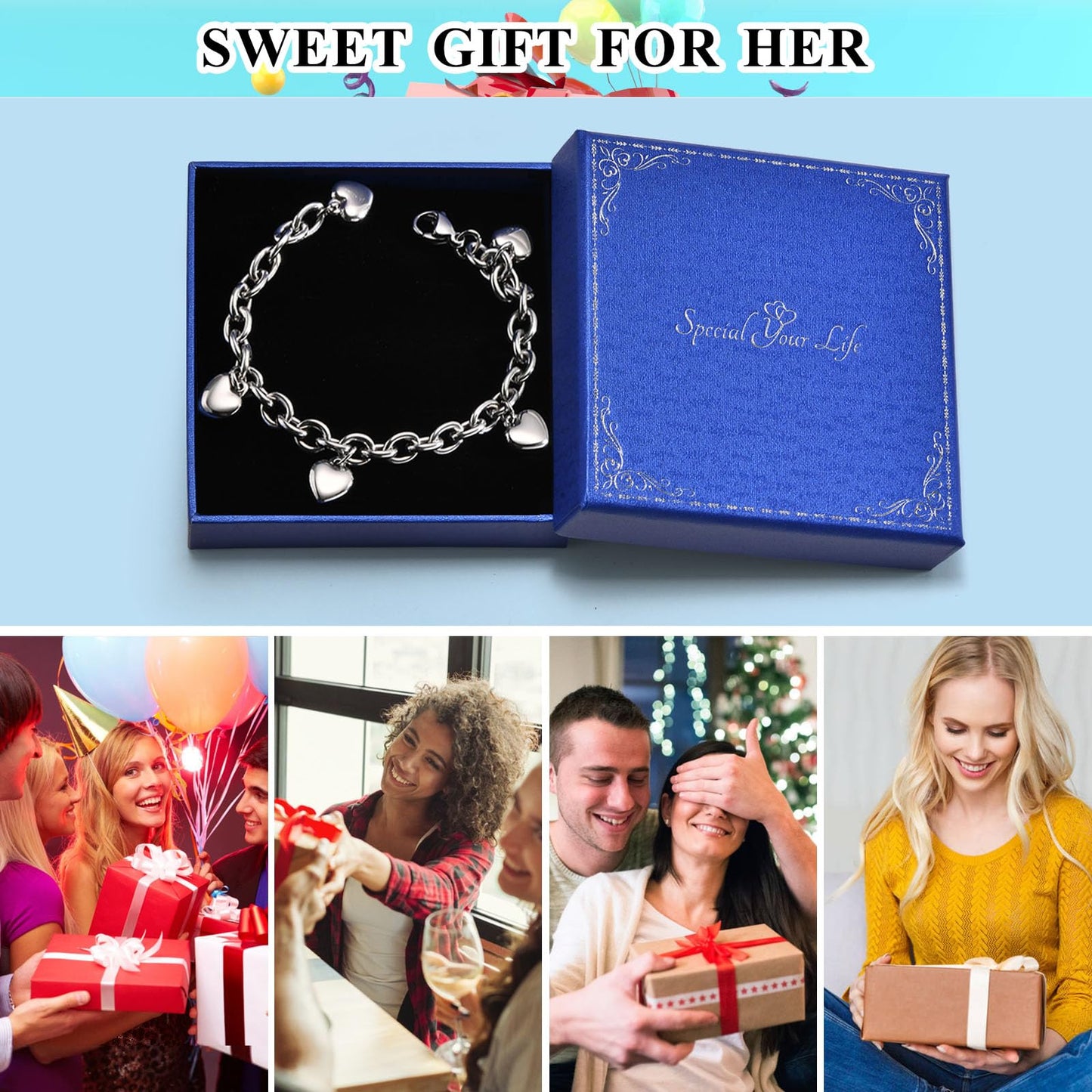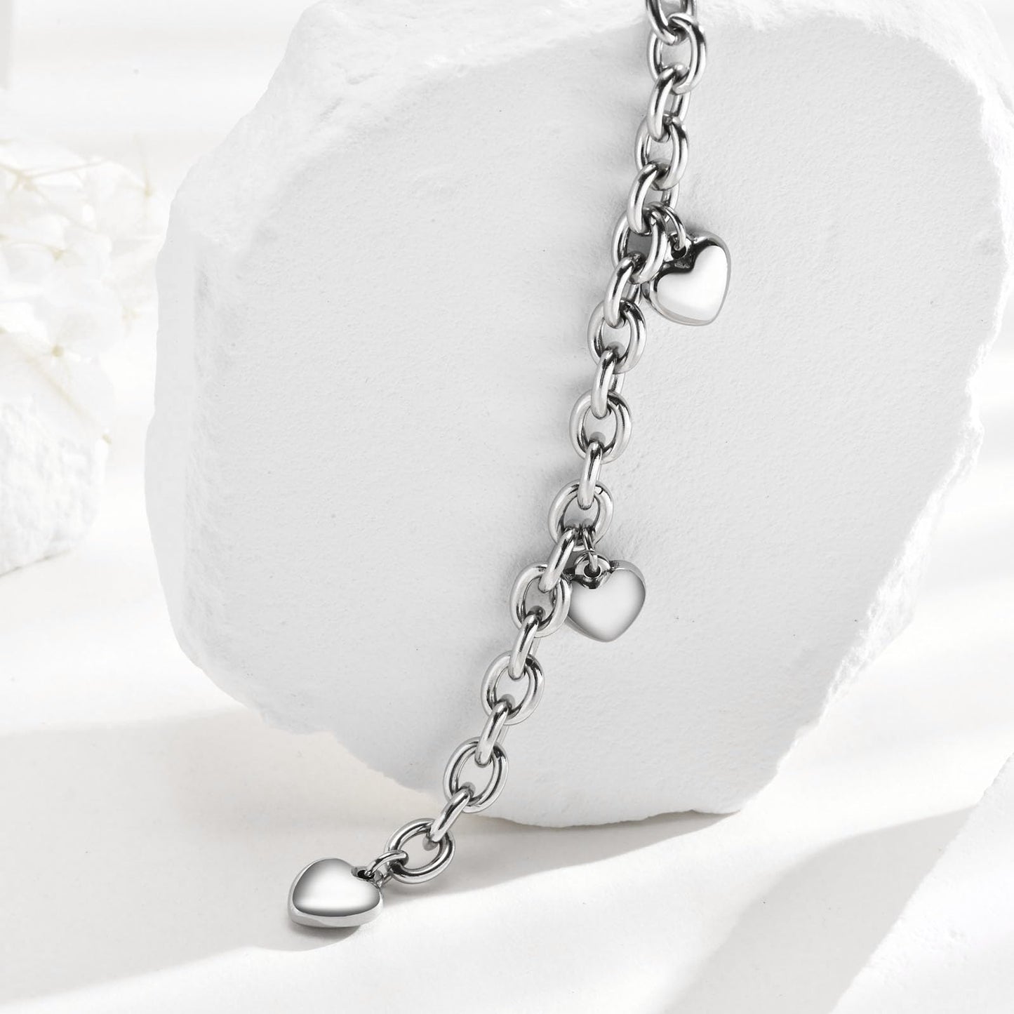 Silver Heart Bracelet for Women – Stainless Steel Chain with Heart Charms
