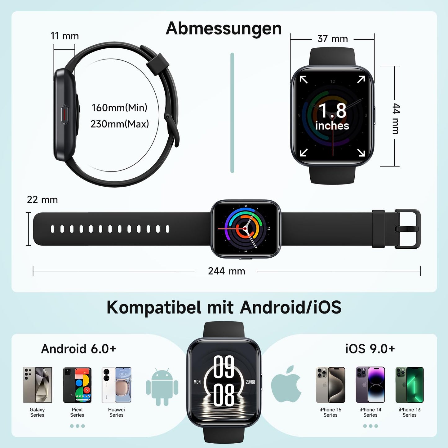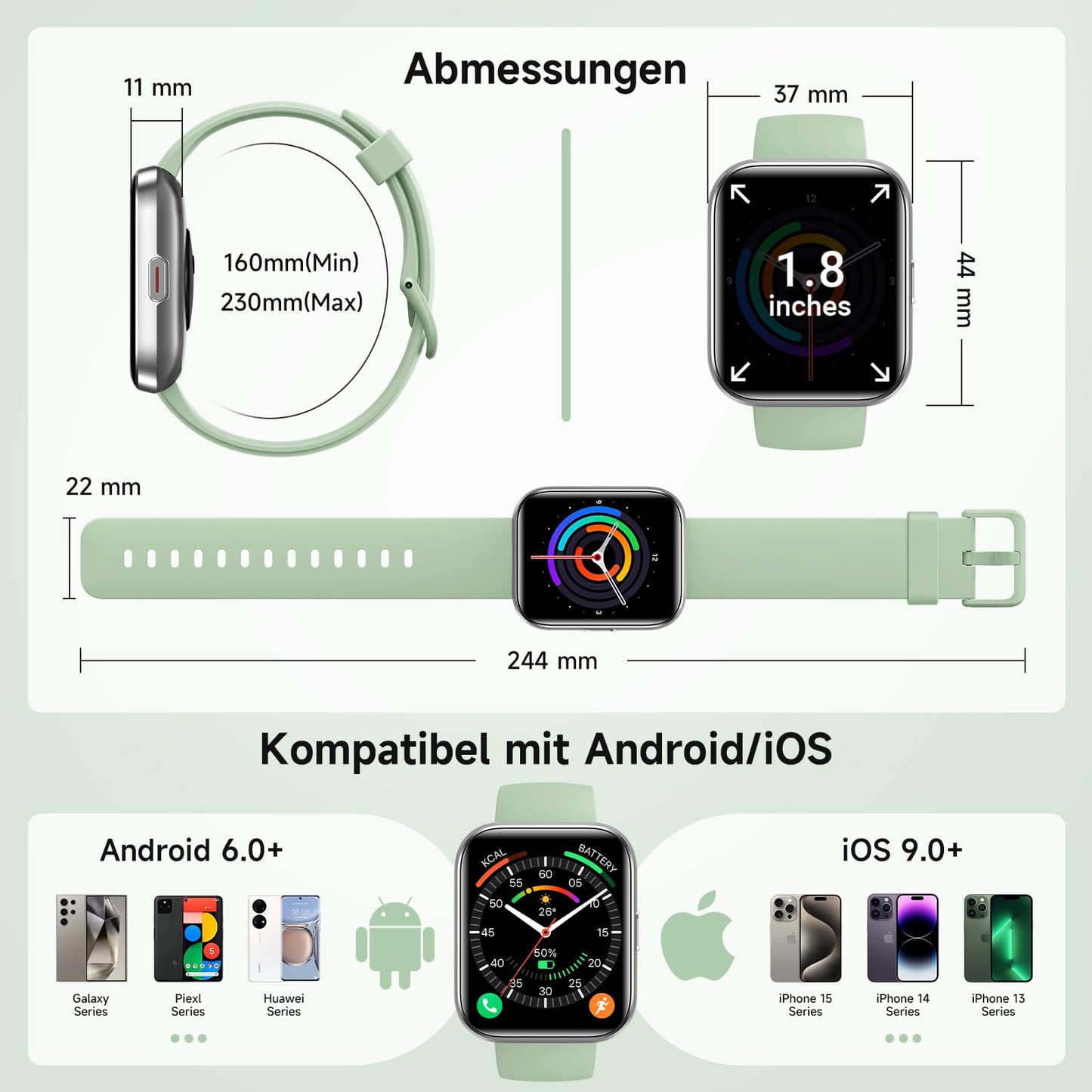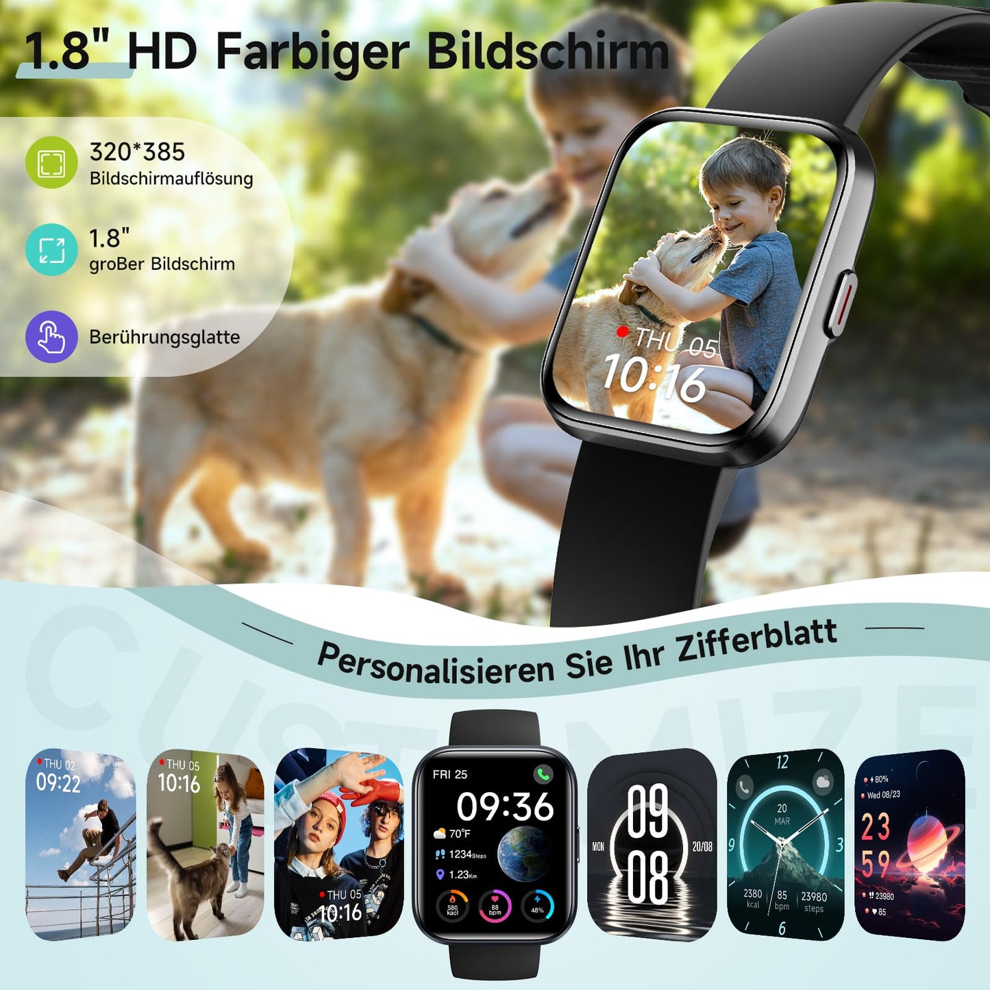 - 【1.8" HD-Bildschirm & Personalisierbare Zifferblätter】Die Armbanduhr Damen verfügt über einen 1.8" HD-Touchscreen mit hoher Empfindlichkeit, der Ihnen ein anderes visuelles Vergnügen bereitet. Drücken Sie Ihre Persönlichkeit mit 100+ kostenlosen Zifferblättern und vollständig anpassbaren Zifferblättern auf Ihre eigene.