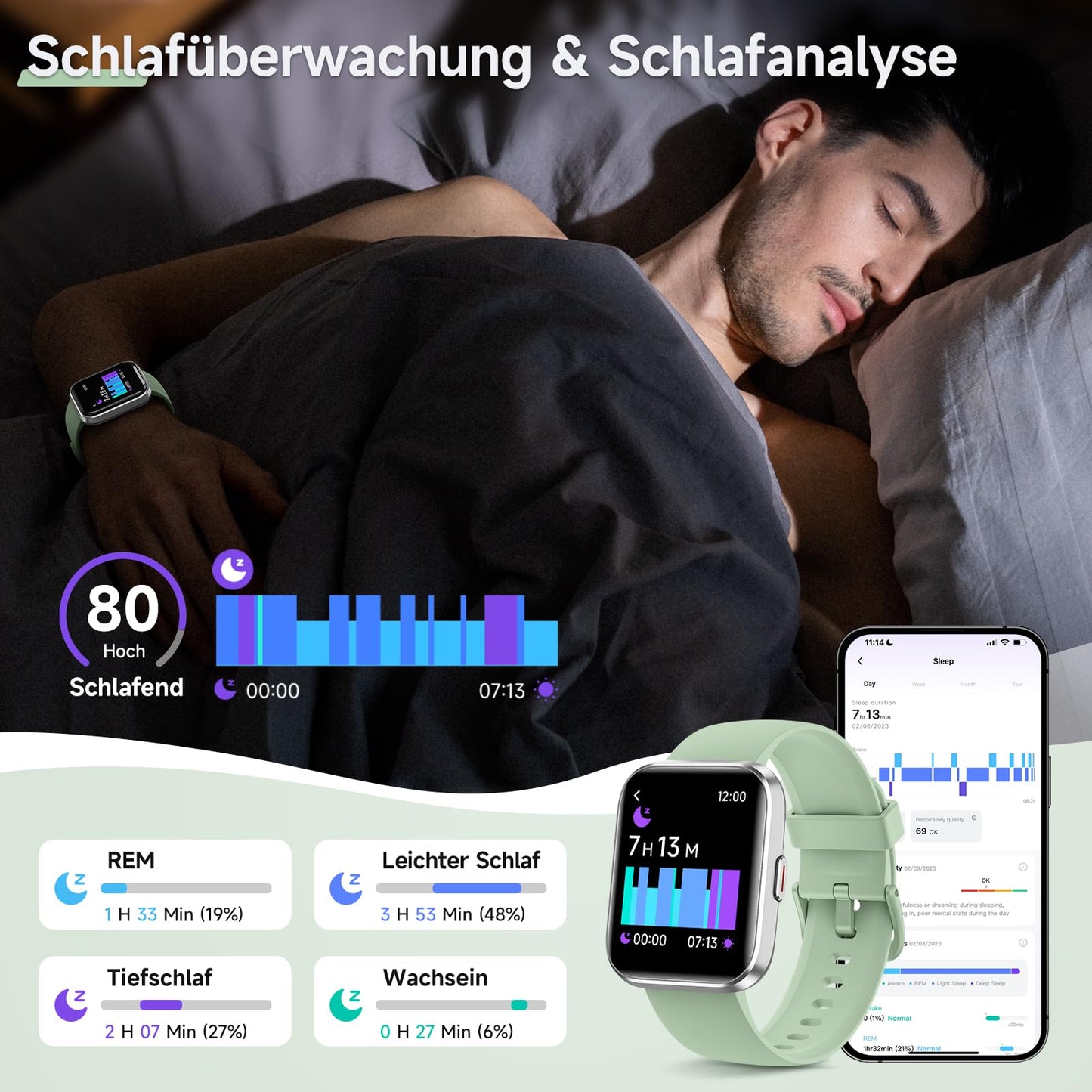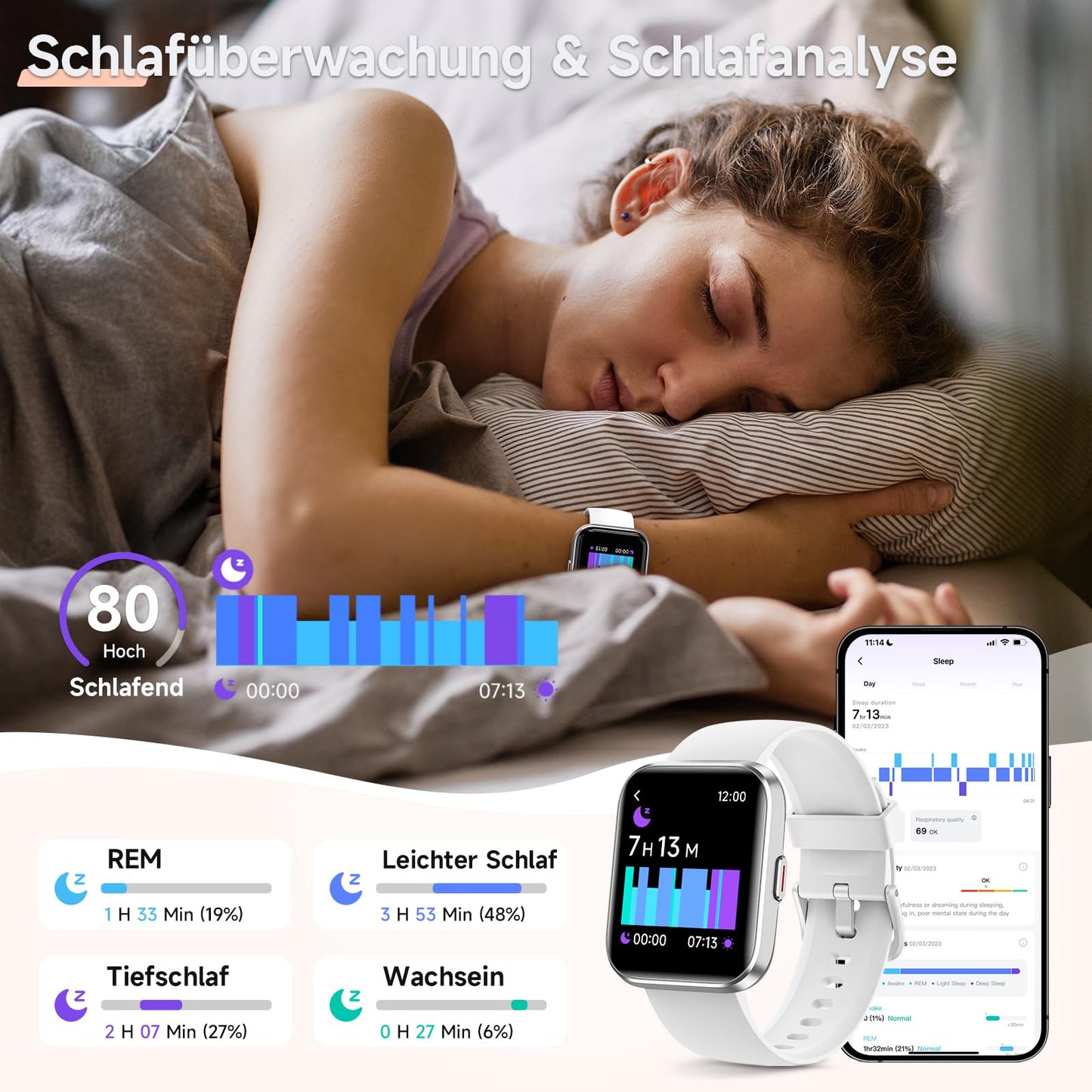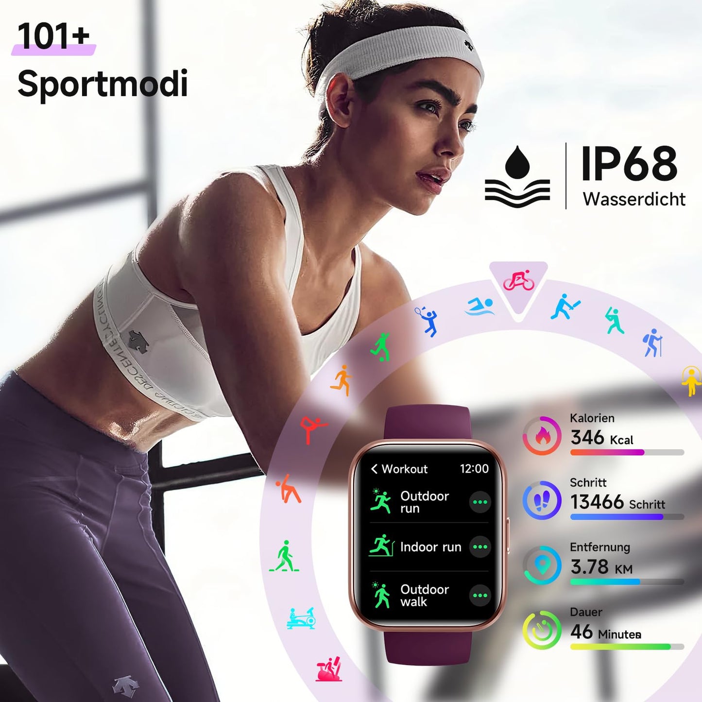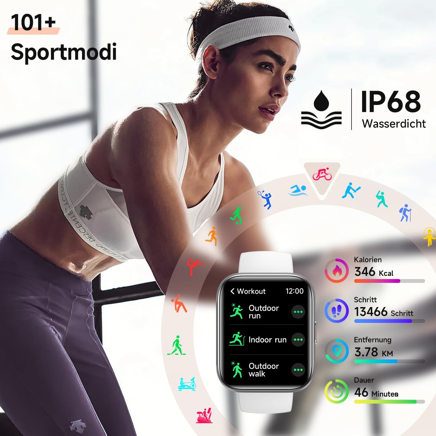 - 【100 Sportmodi & IP68 Wasserdicht】Die 2024 neueste Sportuhr unterstützt über 100+ Sportmodi. Überwachen Sie genau die Trainingszeit und den Kalorienverbrauch, egal ob Sie gehen, laufen, Yoga machen, Rugby spielen oder sogar schwimmen. Ausgestattet mit IP68 Wasserdichtigkeit, verspricht sie problemlosen Gebrauch beim Händewaschen und schweißtreibenden Übungen.
