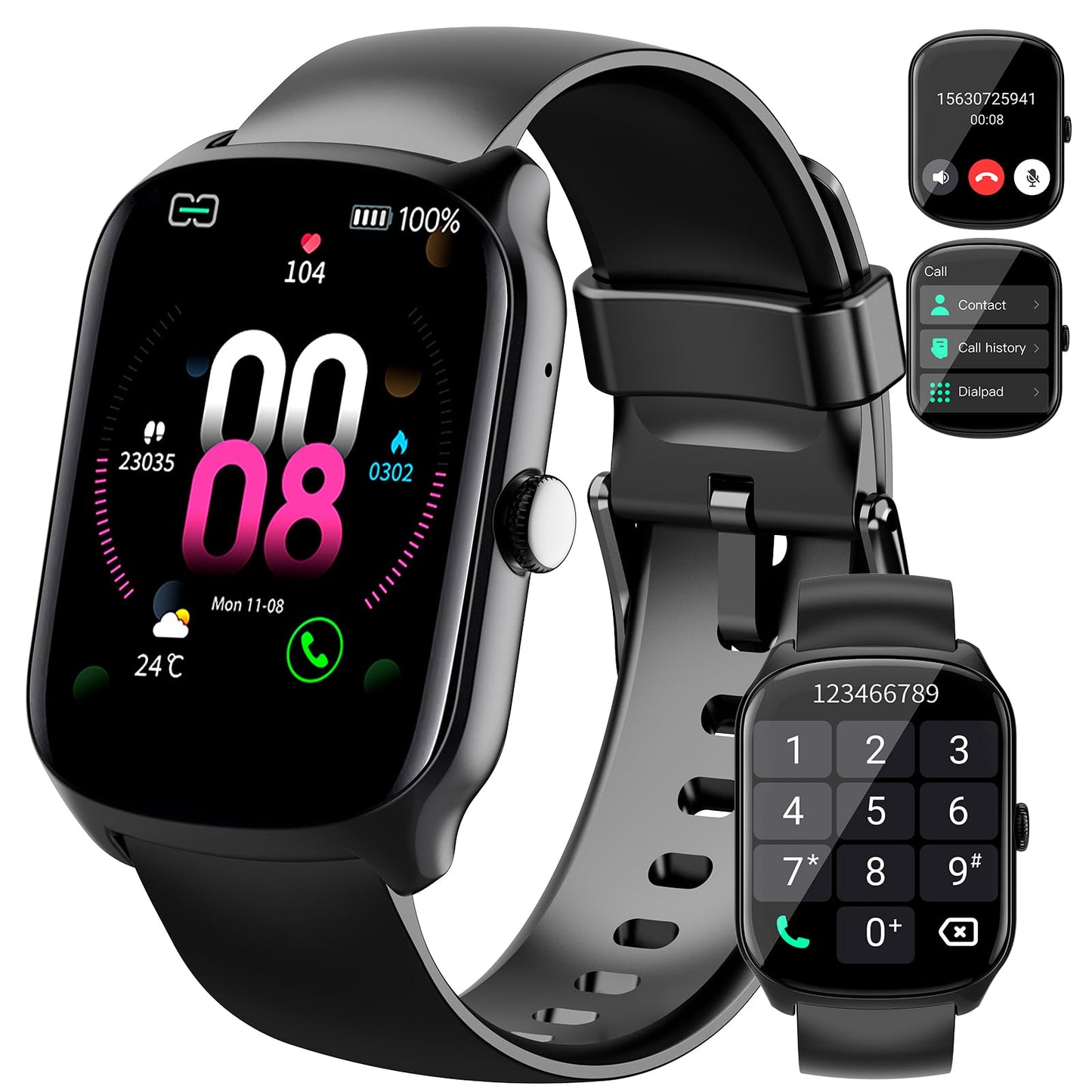 - Anrufe tätigen/annehmen und Intelligente Benachrichtigungen: Diese Smartwatch ermöglicht es Ihnen, Anrufe direkt vom Handgelenk aus über Bluetooth zu tätigen und entgegenzunehmen. Sie unterstützt außerdem Benachrichtigungen und Nachrichten von sozialen Medien wie (Facebook, WhatsApp, Instagram, Twitter und mehr). Dank Vibrationsalarm verpassen Sie auch während eines Spaziergangs oder Trainings keine wichtigen Anrufe oder Nachrichten, selbst wenn Ihr Handy in der Tasche bleibt.