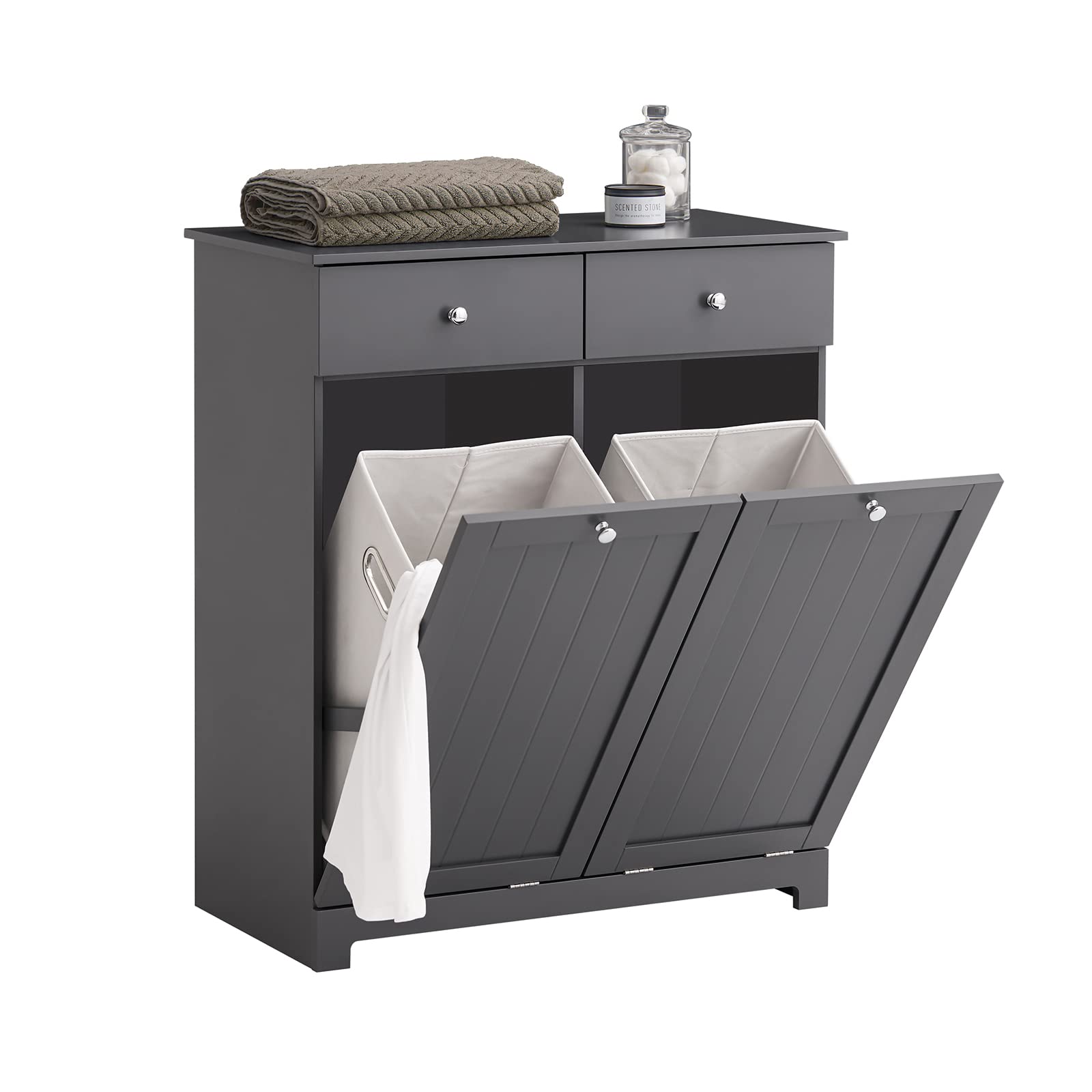 - [Cleveres Aufbewahrungssystem mit Wäschekorb]: Mit 6 Ablagen, 2 Schubladen und einem herausnehmbaren Wäschekorb bietet dieser Wäscheschrank mit Wäschekorb und Badschrank mit Wäschekorb flexible und praktische Aufbewahrungsmöglichkeiten für Handtücher, Pflegeprodukte und schmutzige Wäsche – sorgt für ein aufgeräumtes und modernes Badezimmer