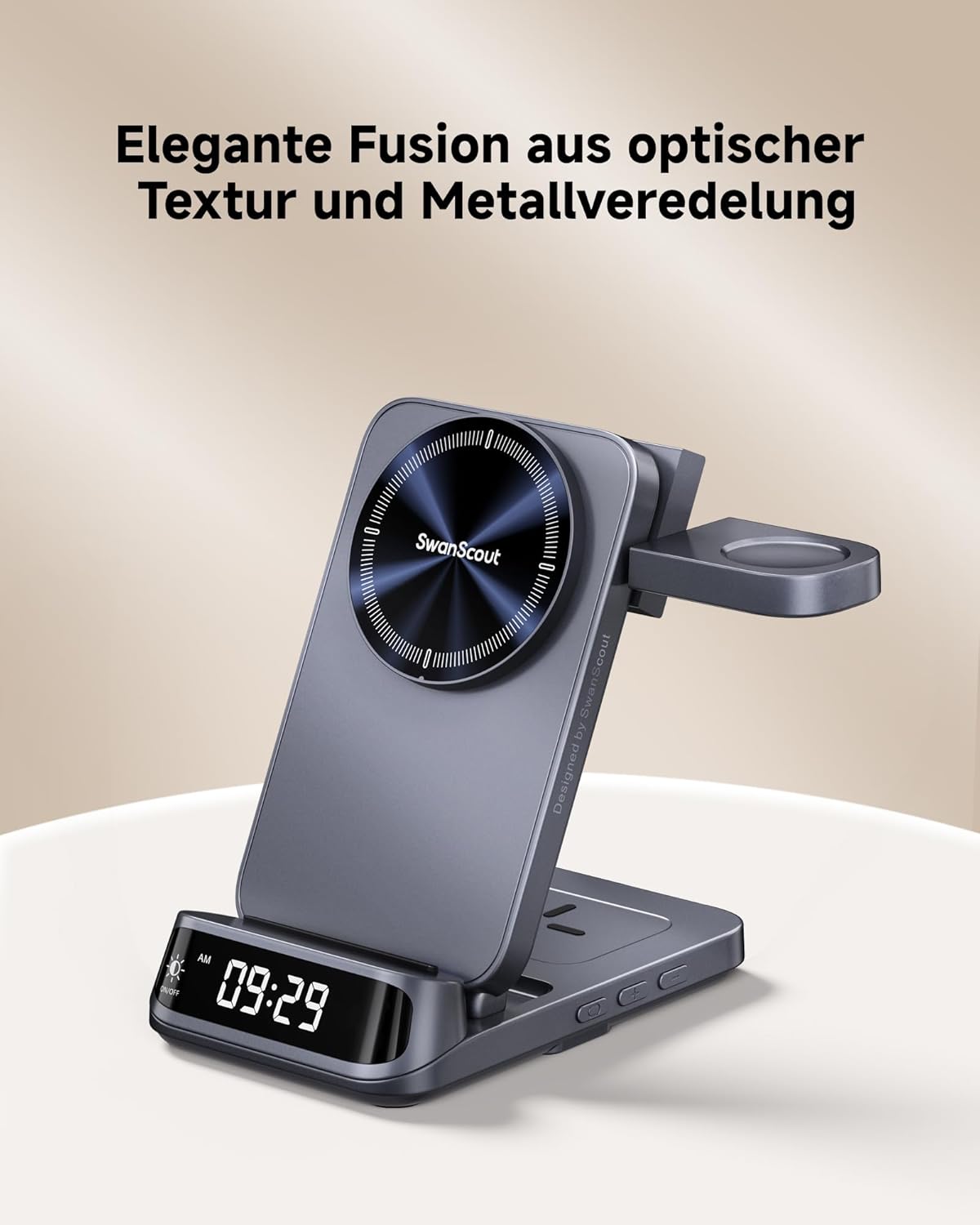 - Elegant & Robust Design: The UV-structured loading area with metallic paint combines scratch-resistant durability with minimalist elegance. A stylish charging station that blends seamlessly into the office, bedroom or when travelling