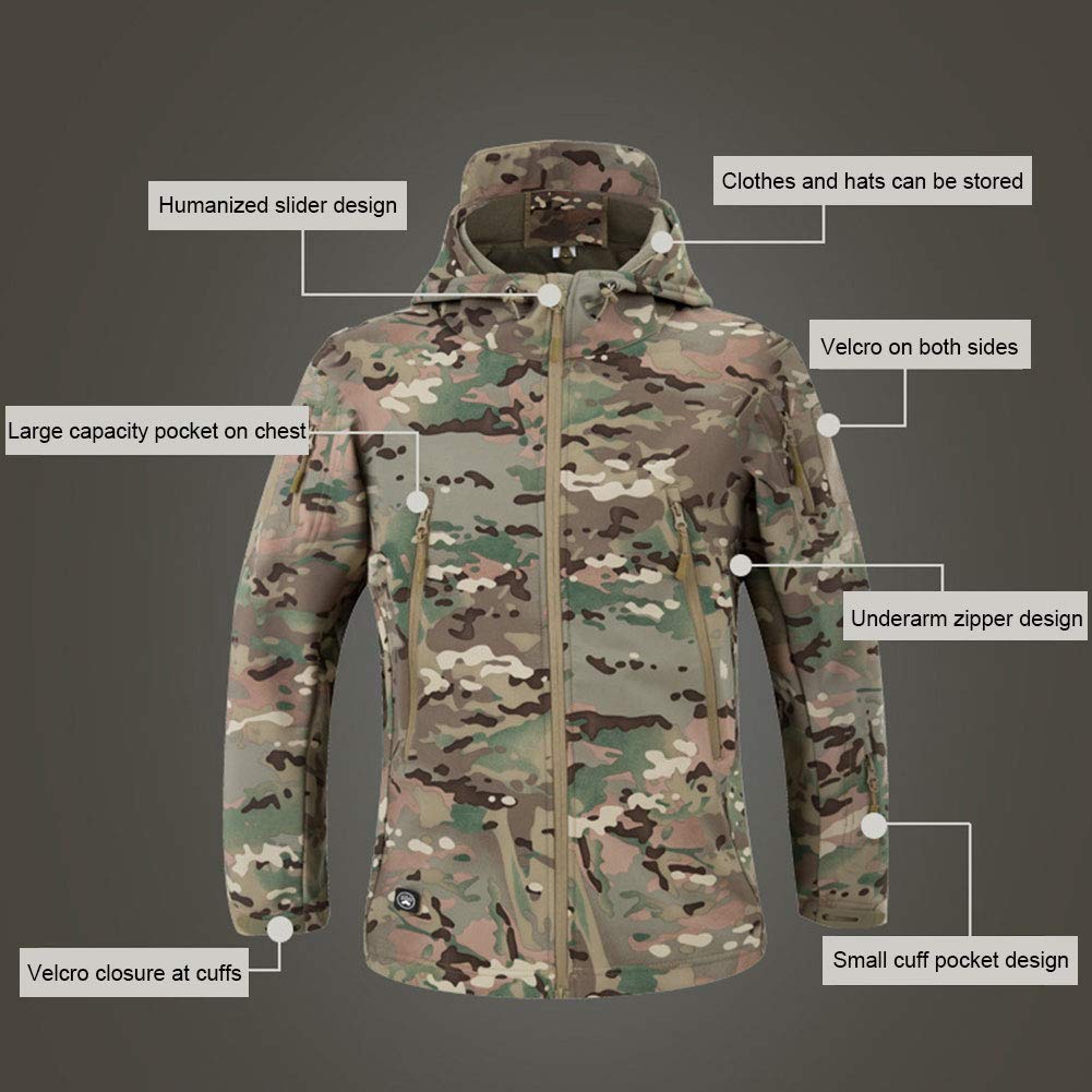 Engineered for performance in the wild, this Tactical Men’s Waterproof Jacket combines rugged style with high functionality. The outer layer is made from durable, water-repellent Shark Skin softshell fabric, while the inner fleece lining ensures warmth and comfort in cold, wet weather. With a breathable underarm ventilation system, multiple tactical pockets, and a stowable hood, this jacket is ideal for hiking, climbing, hunting, camping, and other demanding outdoor pursuits.
