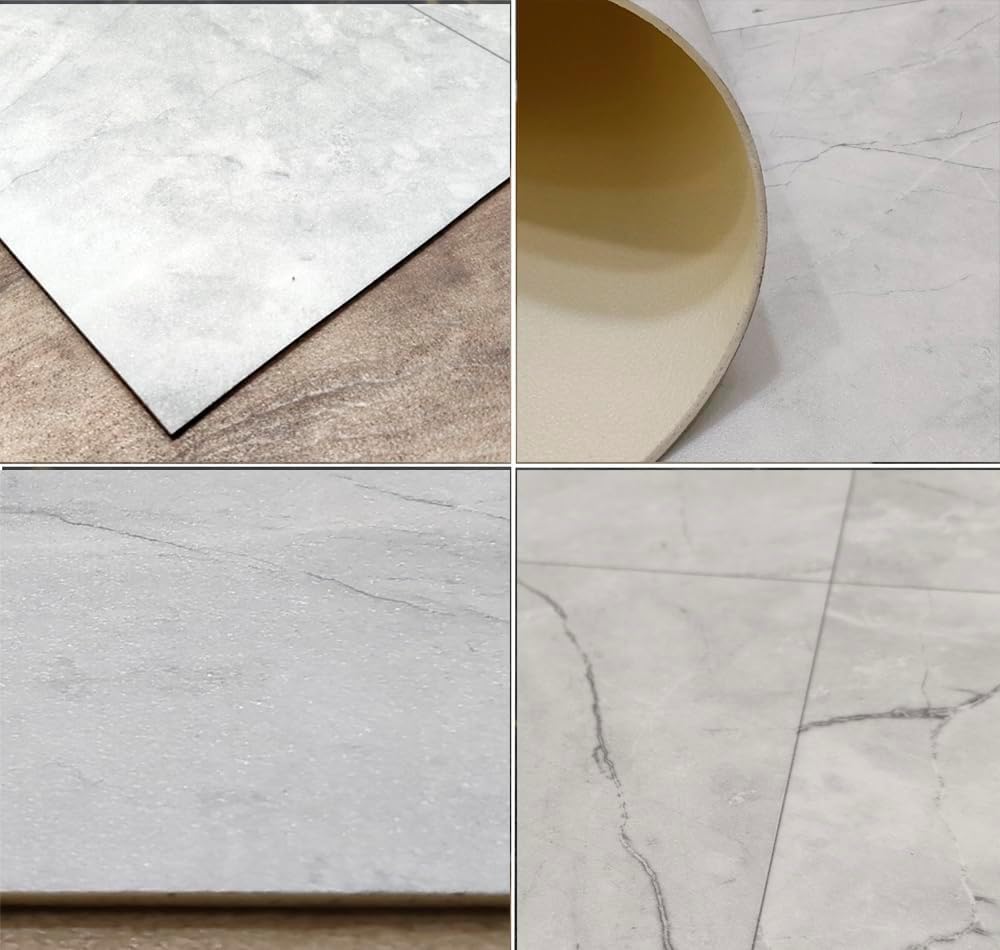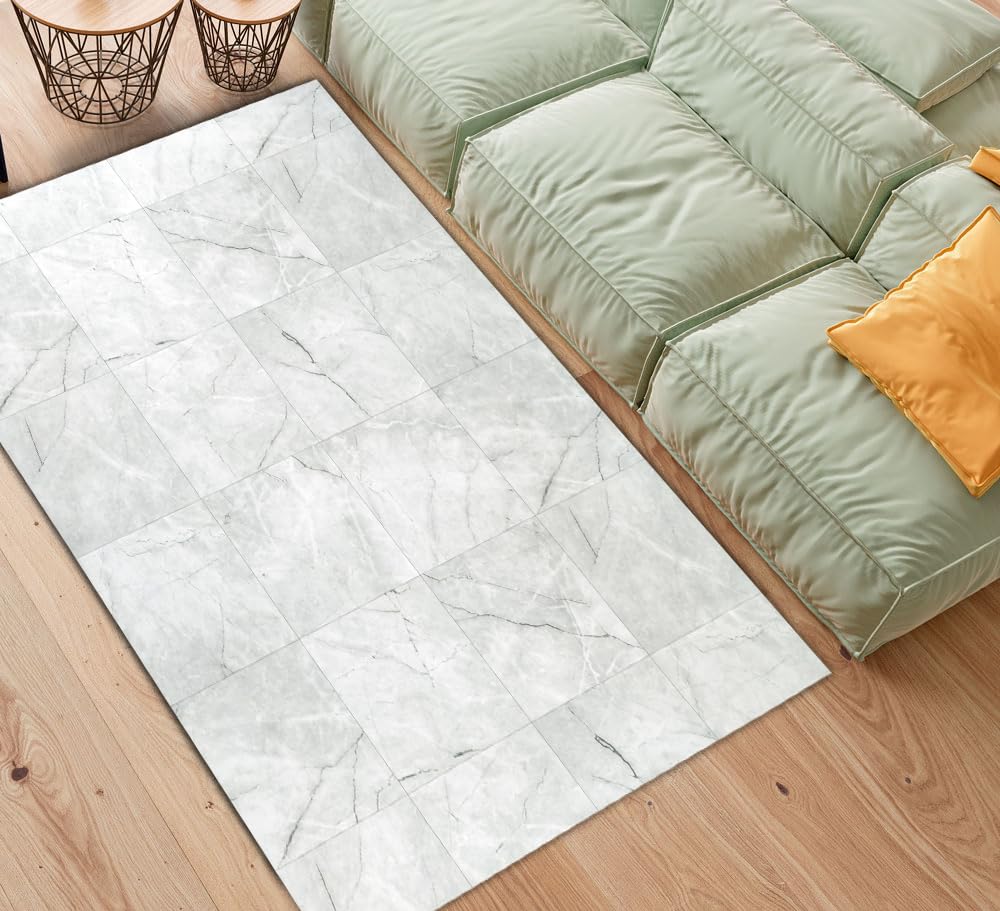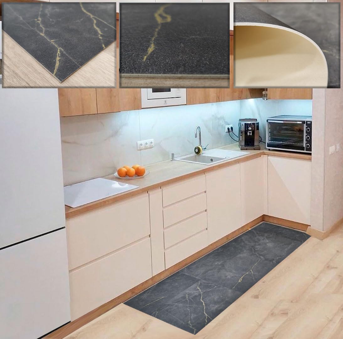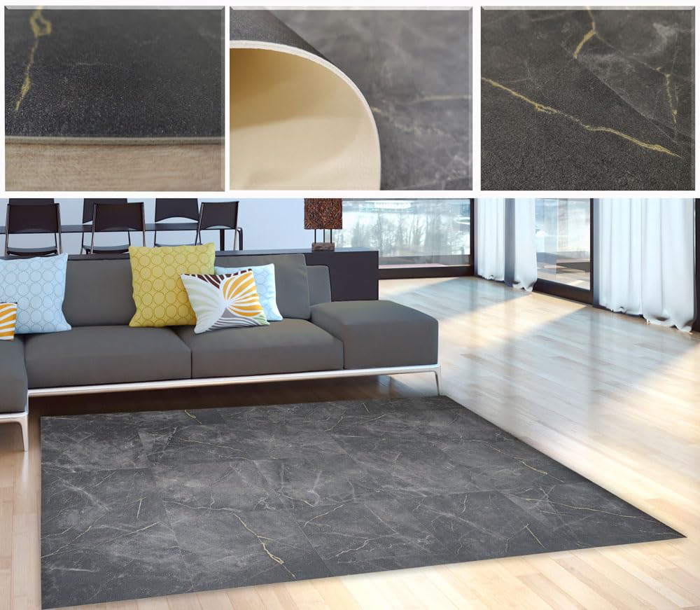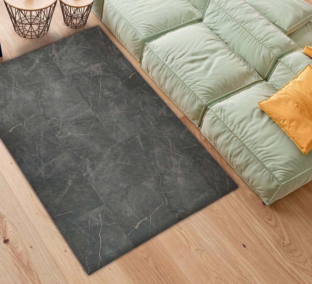 Tadi & Imperio1979 Vinyl-Teppich, Anthrazit, Marmormuster, für Küche, Vinyl-Teppich, Wohnzimmerteppich, rutschhemmend, mit grauen Details.