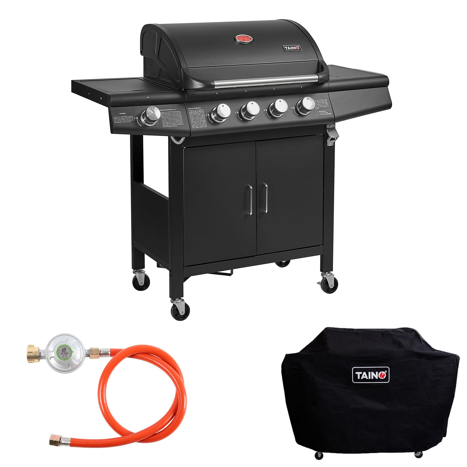 TAINO RED 4+1 Gasgrill Grillwagen BBQ Edelstahl-Brenner Gas-Grill mit Seitenkocher
