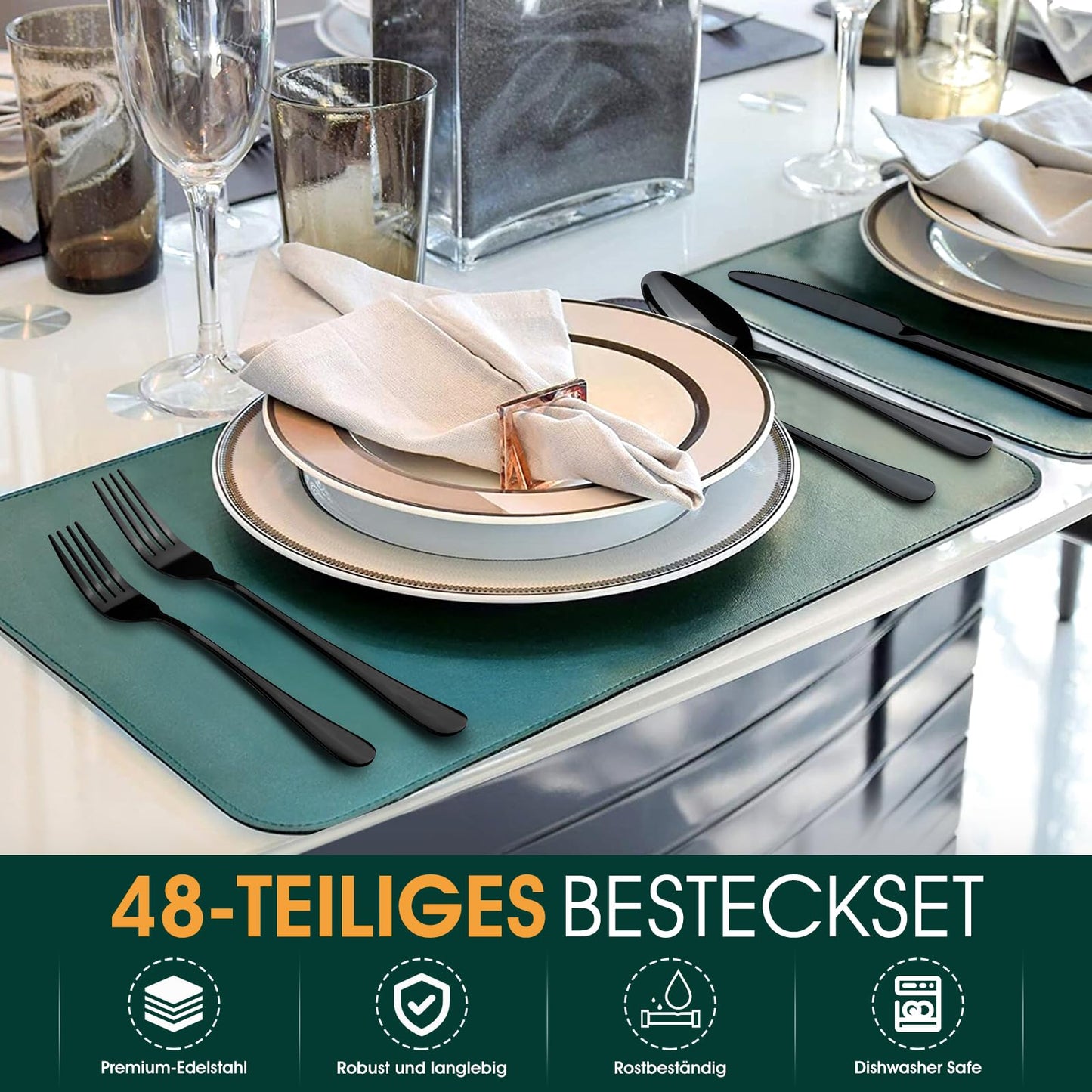 - 【Hochwertiges Material】 Unser besteckset schwarz ist aus hochwertigem Edelstahl gefertigt, robust und langlebig, nicht leicht zu biegen oder zu kratzen, Anti-Oxidation, rostfrei und korrosionsbeständig. Der Rand des Bestecks ist glatt, nicht leicht, Ihre Haut zu verletzen, und kann sicher für eine lange Zeit verwendet werden.