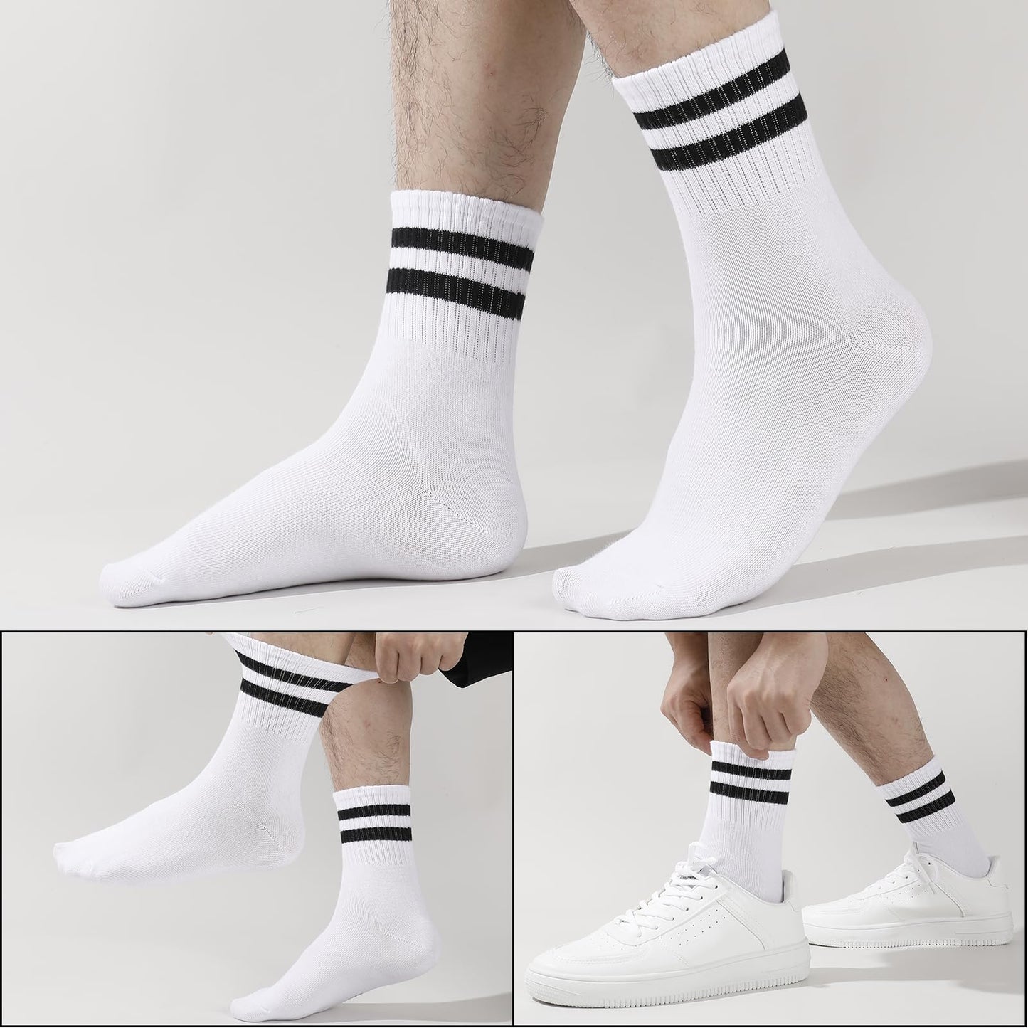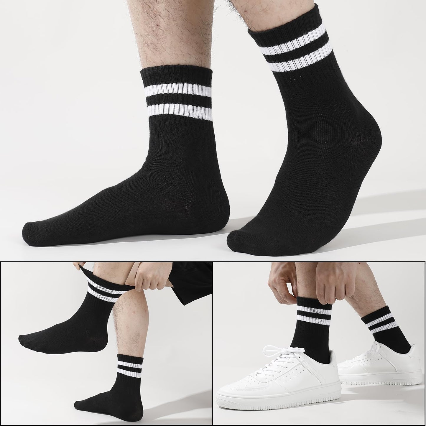 Step up your game with Taonganui’s classic striped tennis socks for men. Made from breathable cotton with excellent elasticity, these socks offer all-day comfort whether you're hitting the court or heading to the office. The retro design adds a stylish touch to both sporty and casual outfits, making them suitable for a variety of occasions. Each pack includes 6 pairs of durable, anti-slip socks designed to reduce friction and keep your feet dry and fresh.