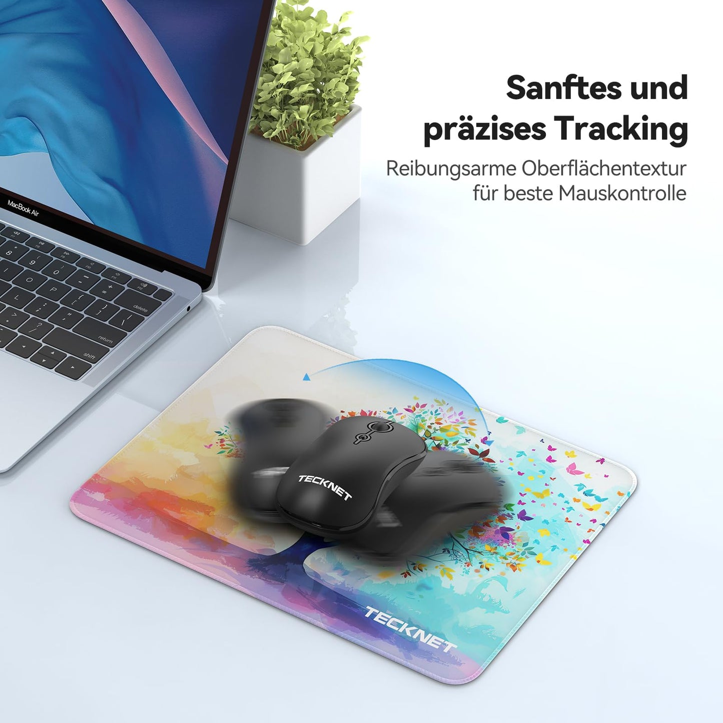 TECKNET Mauspad, 280 x 210 mm Gaming Mousepad mit Wasserdicht und Rutschfester Gummi für PC-Büro, Arbeit, Gaming, Studium, Laptop, Computer, Zuhause-Schwarz