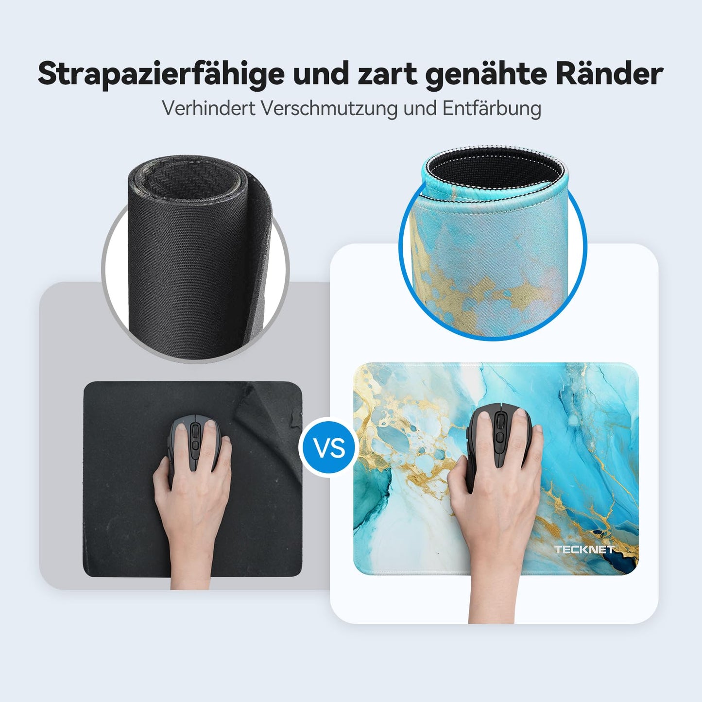 - 【Wasserdichte Oberflächenbeschichtung】 Schützt wirksam vor Schäden durch von außen eindringendes Wasser. Wenn Flüssigkeiten auf die beschichtete Oberfläche verschüttet werden, bilden sie Tröpfchen und dringen nicht nach unten durch. Hinweis: Reiben Sie beim Reinigen nicht Mousepad mit den Händen, da dies die wasserfeste Beschichtung vorübergehend beschädigen kann