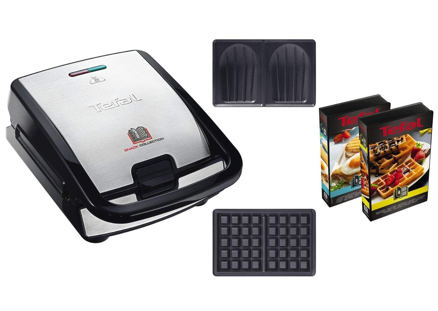 Tefal SW852D Snack Collection|Sandwich|Waffelmaker|Kombigerät|Antihaftbeschichte Platten|Spülmaschinengeeignet|mit vielfältigen Funktionen erweiterbar|700W|5.3Tons|37.01x29.01x21.01cm,Schwarz/Silber