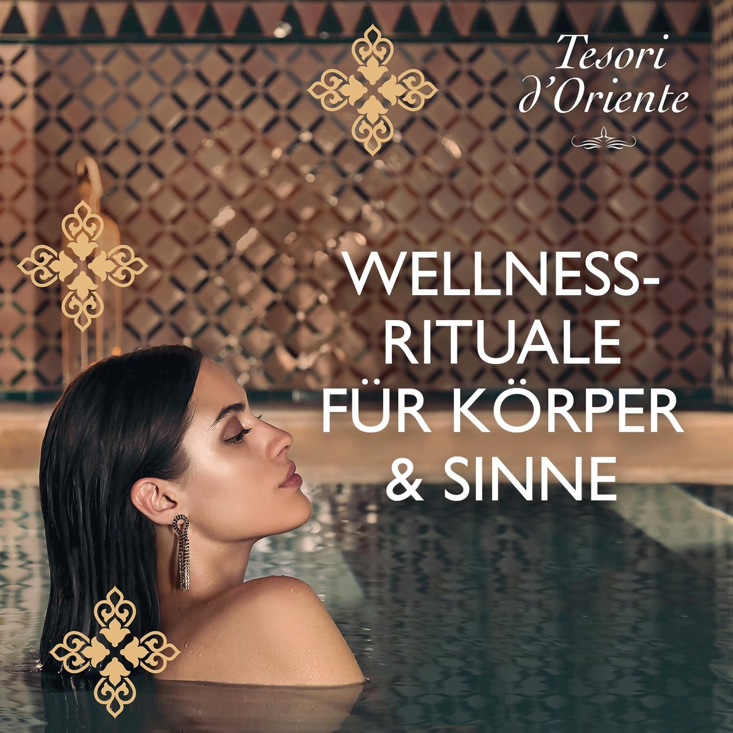 Tesori d'Oriente bringt die Wellness-Rituale östlicher und antiker Welten ins heimische Badezimmer und eröffnet damit magische Auszeiten für jeden Tag. Ob Cremeduschen und -bäder, Flüssigseifen, Eau de Toilettes, Feste Seifen oder Handcremes, die reichhaltigen Rezepturen verwöhnen die Haut und sorgen mit harmonischen Duft-Kompositionen für einen Einklang von Körper und Geist. Die verschiedenen Linien laden dazu ein, neue Orte und Düfte zu entdecken und in die fabelhafte Welt des Orients einzutauchen.