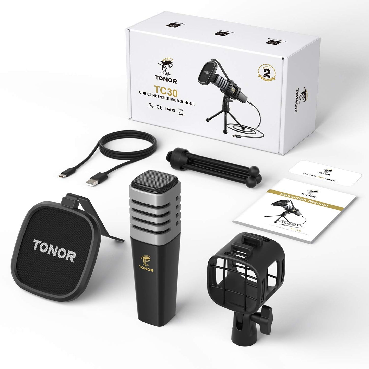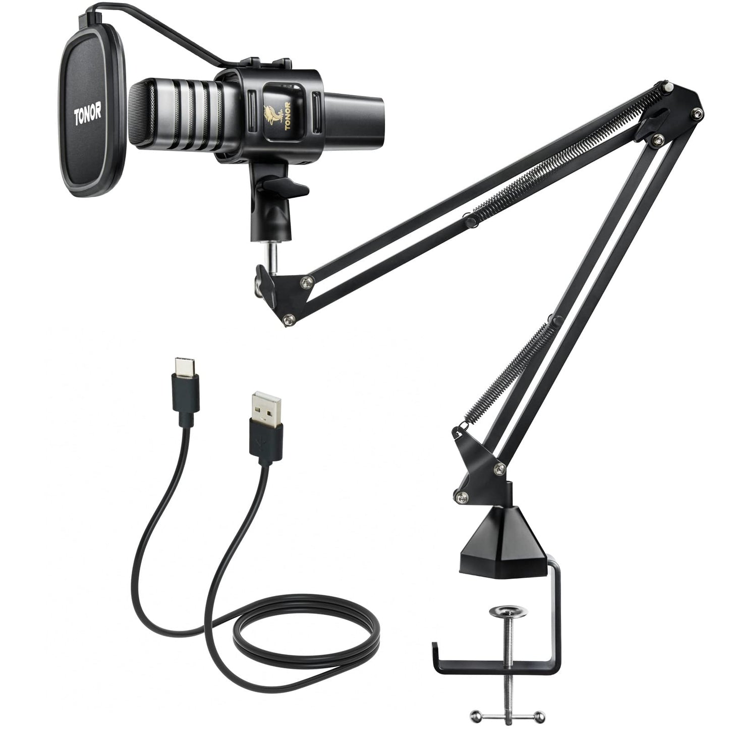 TONOR USB Mikrofon Nierencharakteristik Kondensator Computer PC Mikrofon mit Ständer, Popfilter, Mikrofonspinne für Streaming, Podcasting, Voice-Over, Twitch, kompatibel mit Laptop Desktop, TC30