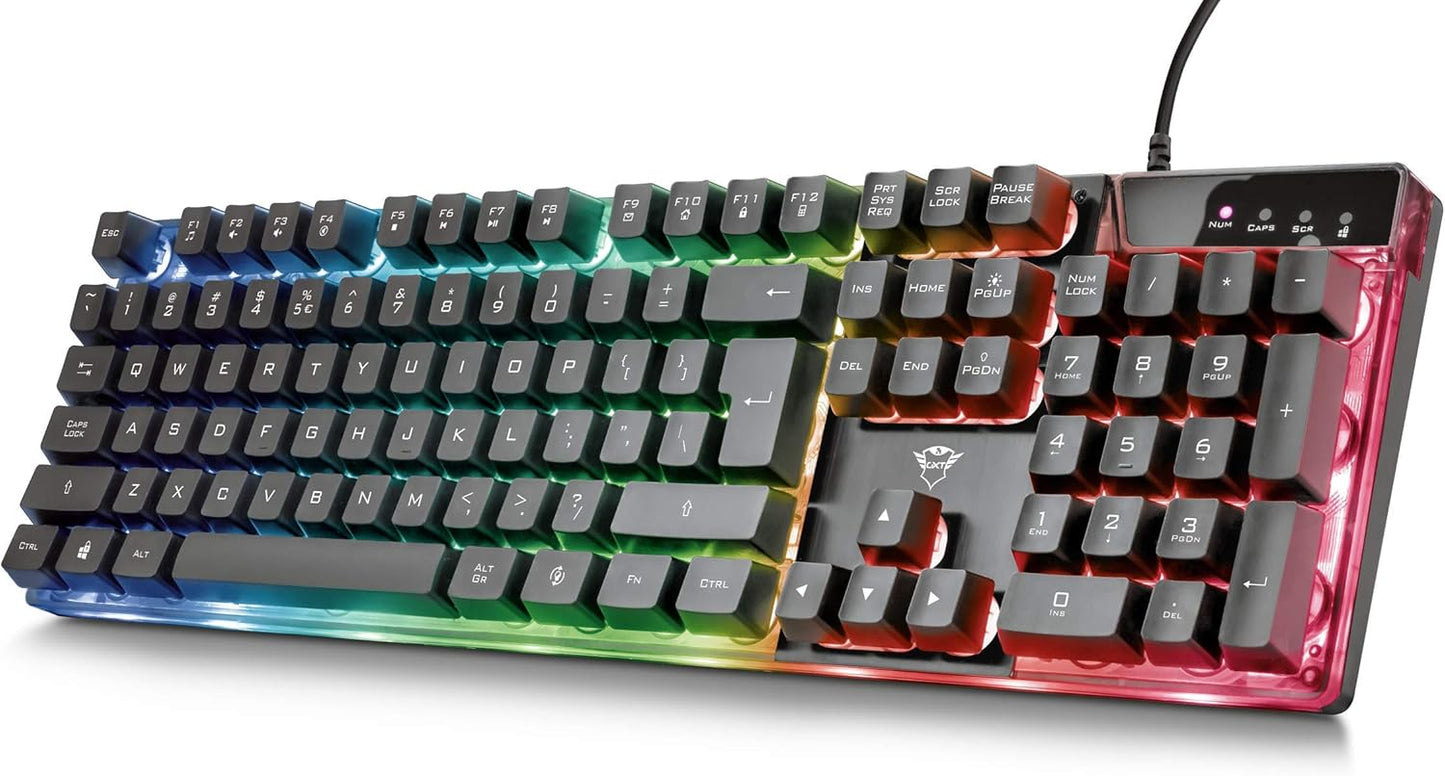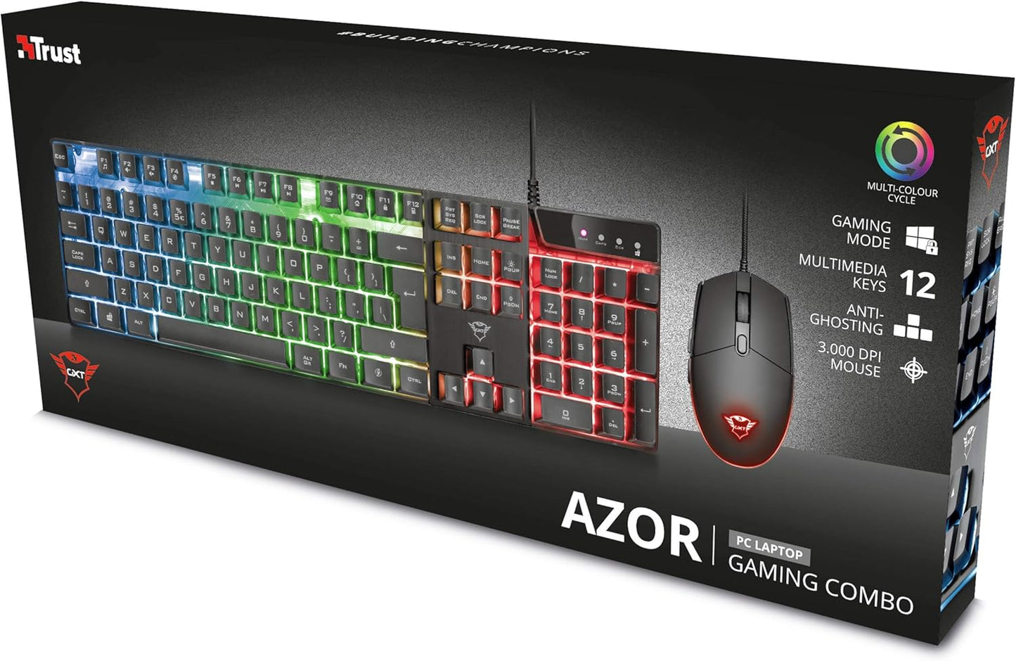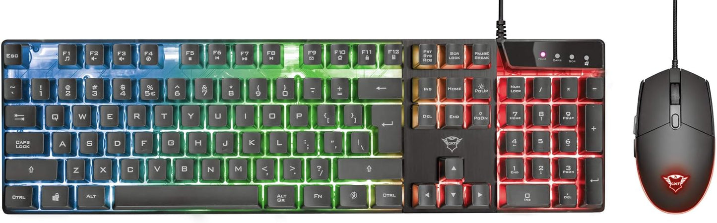 Trust Gaming GXT 838 Azor Gaming-Maus und Tastatur, italienisches Layout QWERTY, USB, Anti-Ghosting, Tastatur mit Hintergrundbeleuchtung LED RGB, Gaming-Maus 800-3000 DPI – Schwarz