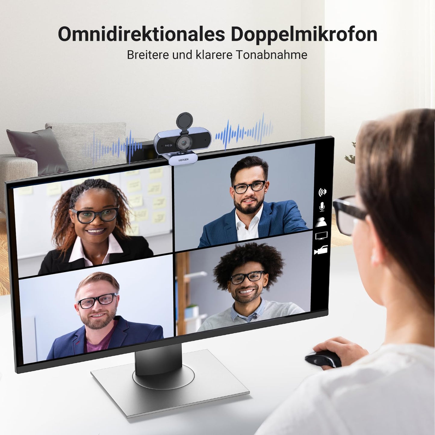 - 1080P Full HD Videoanrufe: Egal, ob Sie Ihr Videospiel live auf YouTube übertragen oder eine Videokonferenz mit Ihren Kollegen über Skype abhalten möchten, diese UGREEN PC Kamera unterstützt Sie bei hochauflösenden Videoanrufen in 1080P mit 30 Bildern pro Sekunde.