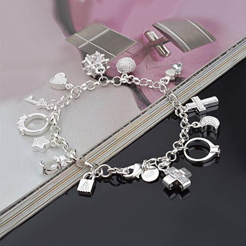 UU19EE Sterling Silver Charm Bracelet – Multi-Pendant Zircon Bracelet