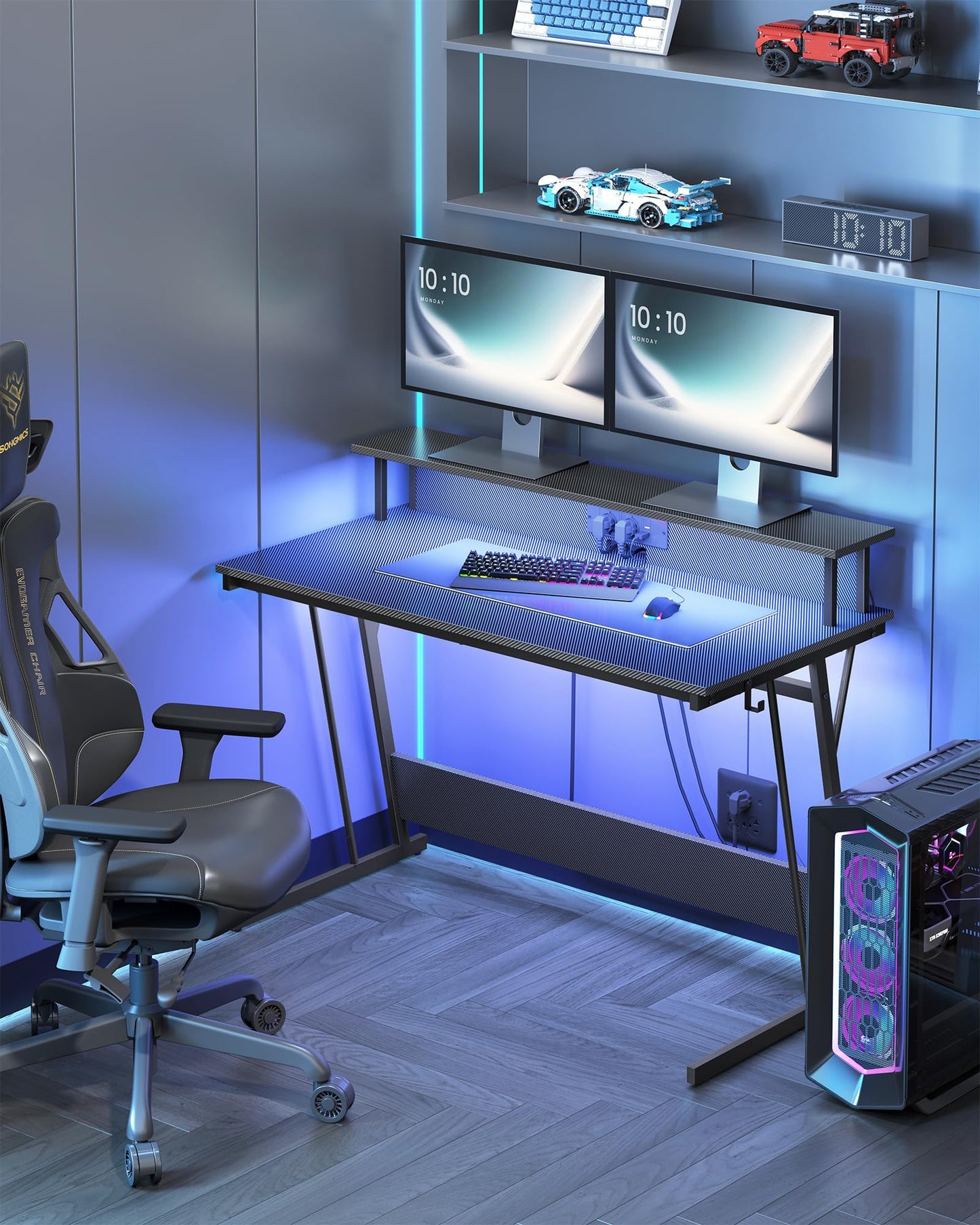 - [Stimmungsvolle LED-Lichter] Dieser Schreibtisch ist mit LED-Beleuchtung in 20 Farben, 6 Modi und 5 Blinkfrequenzen ausgestattet, deren Helligkeit 5-stufig einstellbar ist, um eine perfekte Gaming Atmosphäre zu schaffen