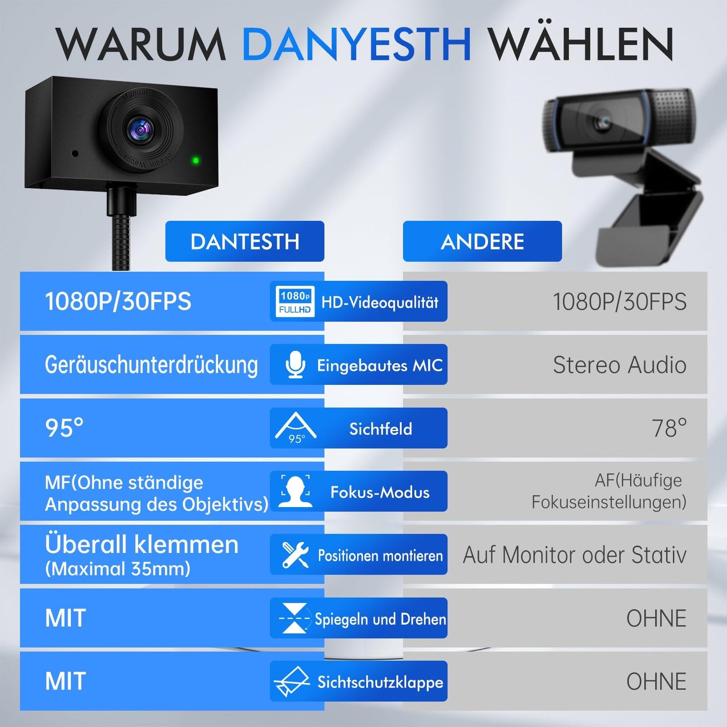 - 【Webcam mit integriertem Rauschunterdrückungsmikrofon】 Die Webcam mit Mikrofon verfügt über ein eingebautes Mikrofon mit Rauschunterdrückung, das Ihre Stimme bis zu einer Entfernung von 8m klar aufnimmt. Perfekt für Video-Streaming, Chats und virtuelle Meetings, selbst in geräuschvollen Umgebungen. Diese USB-Webcam sorgt für überragende Audioqualität und ermöglicht eine problemlose Freisprechkommunikation.
